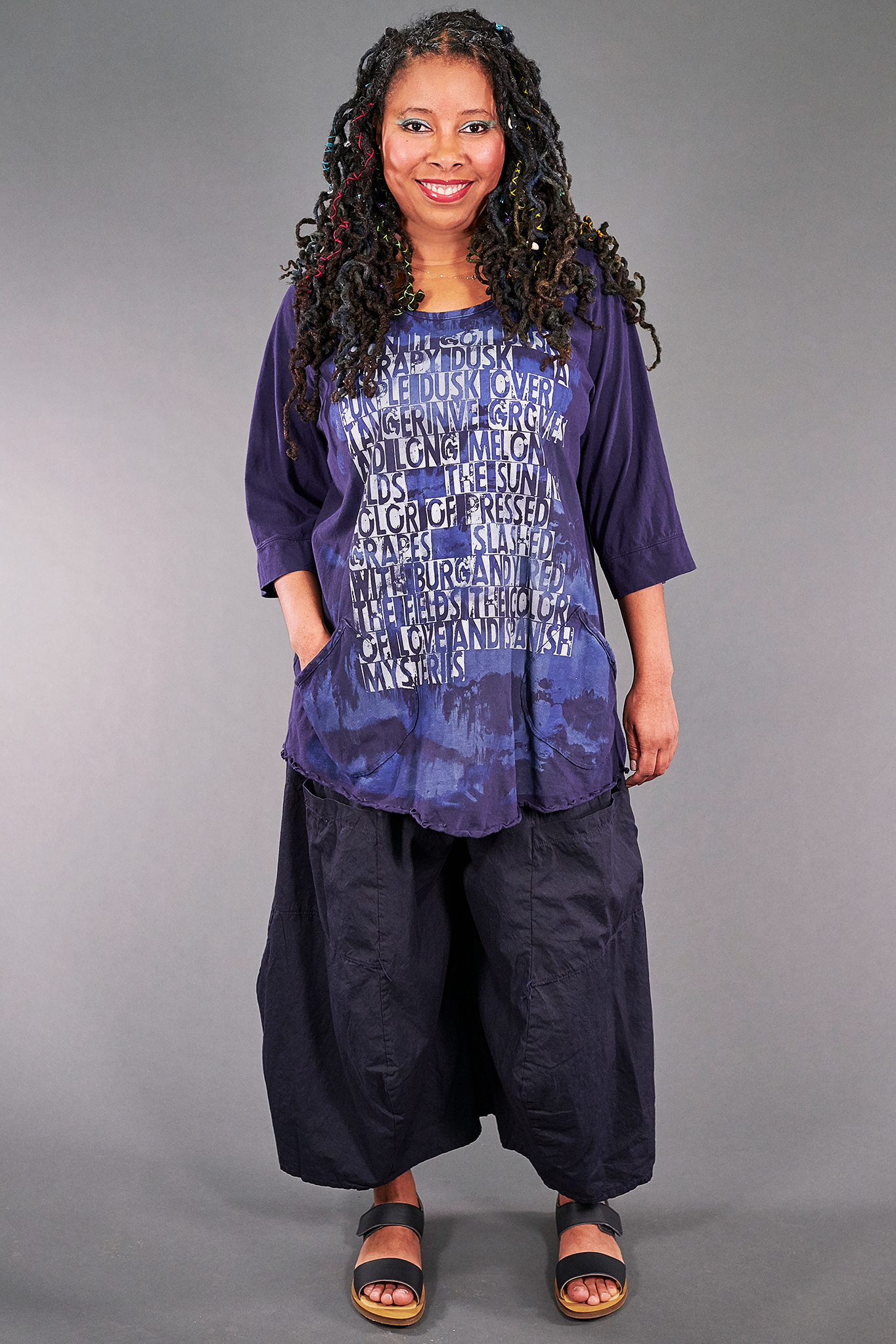 We adore this sweet top: It is the perfect blend of elegance, artistry, & practicality. Imagine wearing this to lunch at a cafe, on a stroll through town on a picturesque spring day, or even gardening or painting (hello, pockets!). Printing on the front from our Iowa studio is so dreamy that you’ll want to wear this every day.