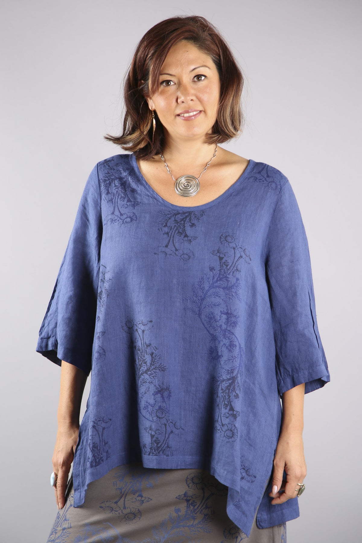 A favorite among many, ( formerly known as the Marigold Top) this linen top has an A-line shape that is flattering on everyone. With a rounded v-neck and 3 pinches detailing each sleeve, it's a style you could wear every day of the season. Wear it with a linen pant or legging simply, or add another layer of print with the Layering Skirt.
