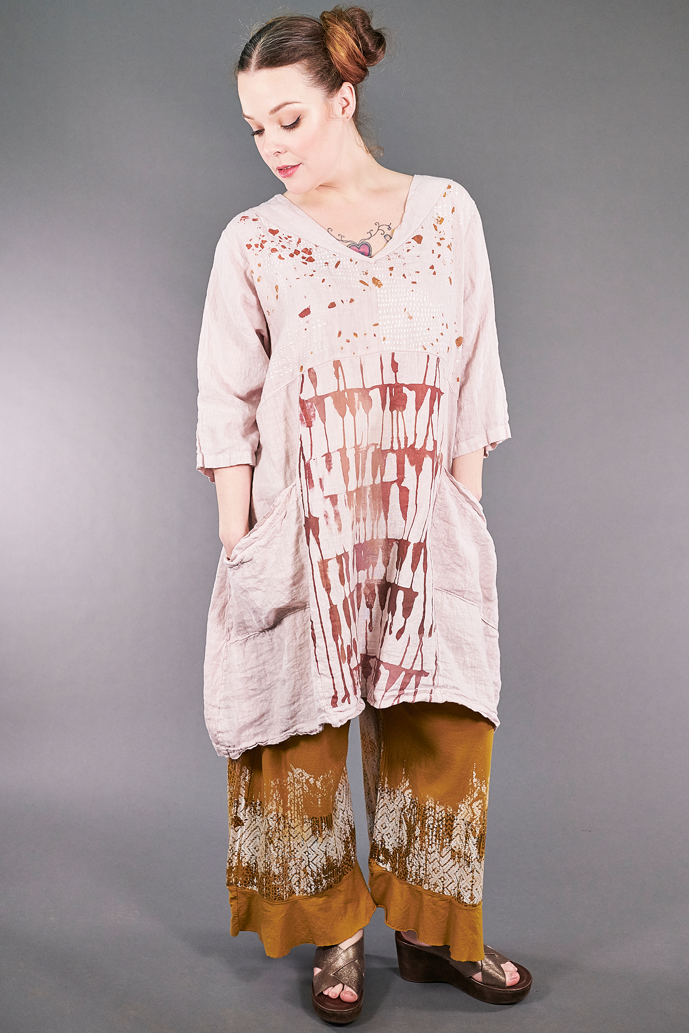 Our linen is a classic fabric we’ve used for years--we LOVE its texture & character! Plus, it only gets more comfortable with every wash & wear. We printed these on the front with incredible, hand-printed artwork fresh from our studio. This cheerful tunic will make you smile every time you put it on and is sure to become a favorite part of your wardrobe.