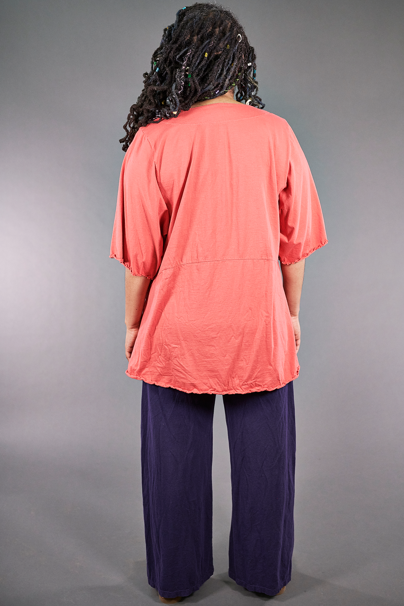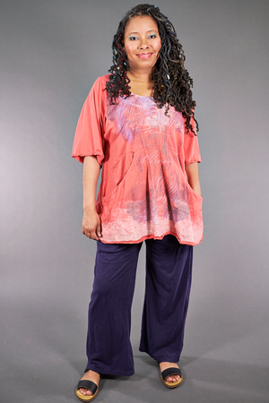 A beautifully feminine top fit for an artful queen of comfort and style. This flattering tunic features a softly squared neckline and gentle shaping through the bodice, ending in a slightly flared hemline. Set-in functional pockets and the softest organic cotton jersey make this top a dream to wear. Sleeves hit just above the elbow.
