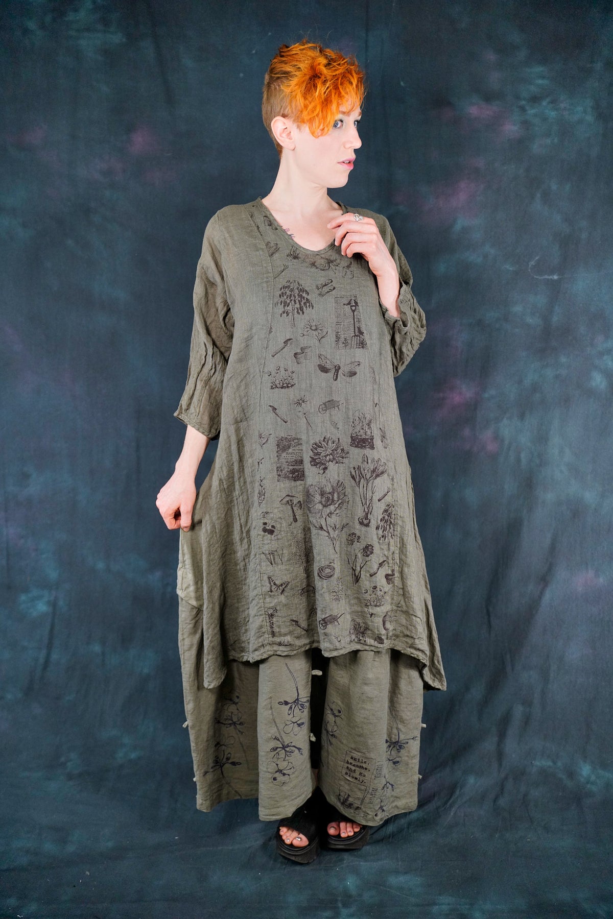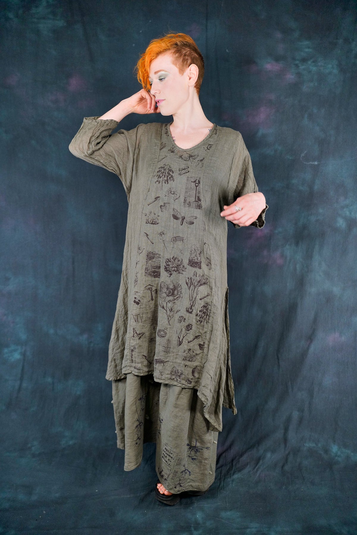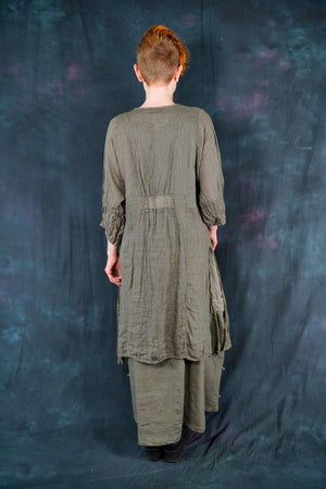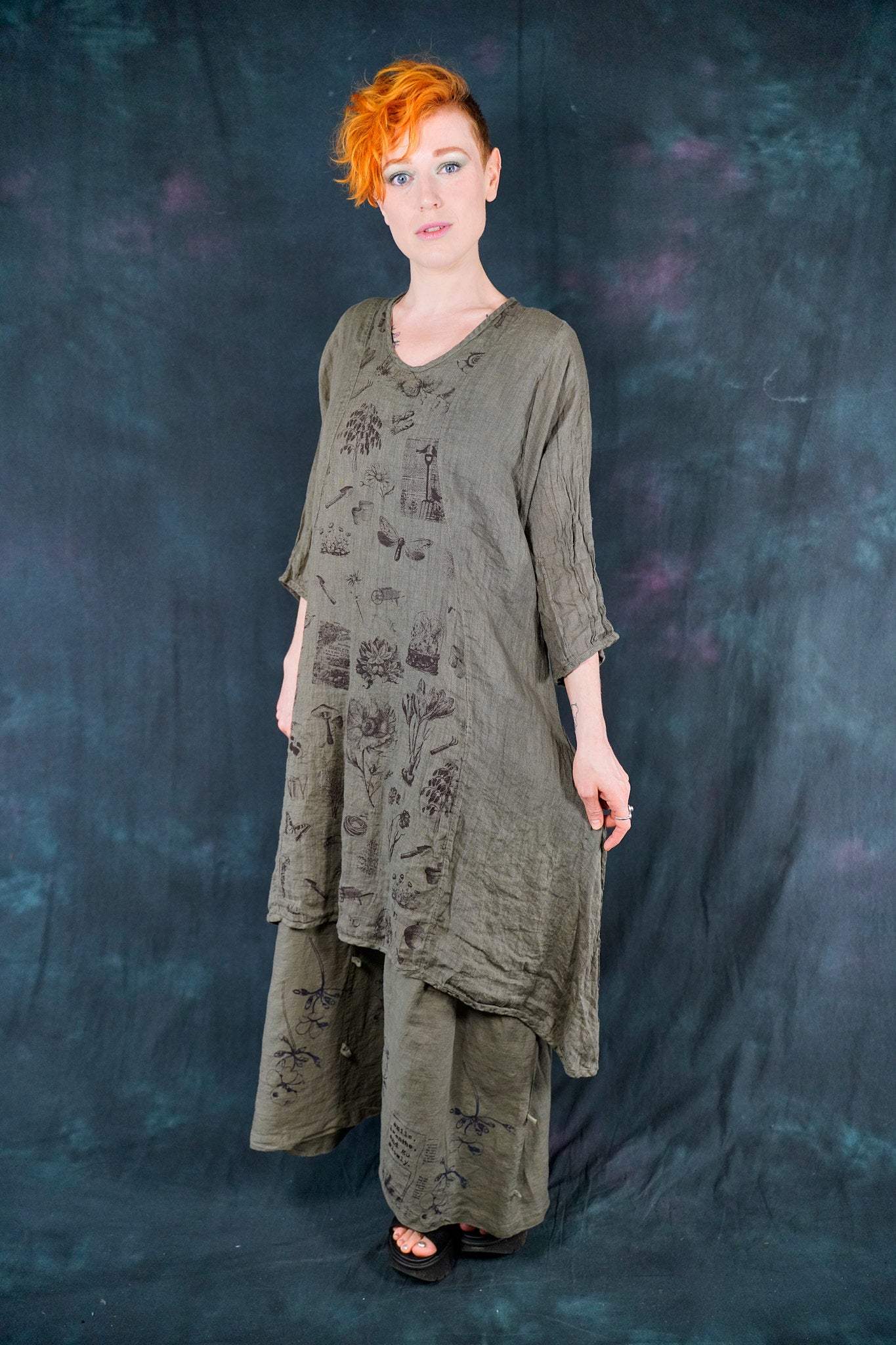 This graceful lightweight linen tunic has a softly V’d neckline, princess seaming on front and back and 3/4 length sleeves. Also features beautiful shaping that flatters the body without having a lot of extra fabric. High side slits allow ease around the hip area. Please read measurements below