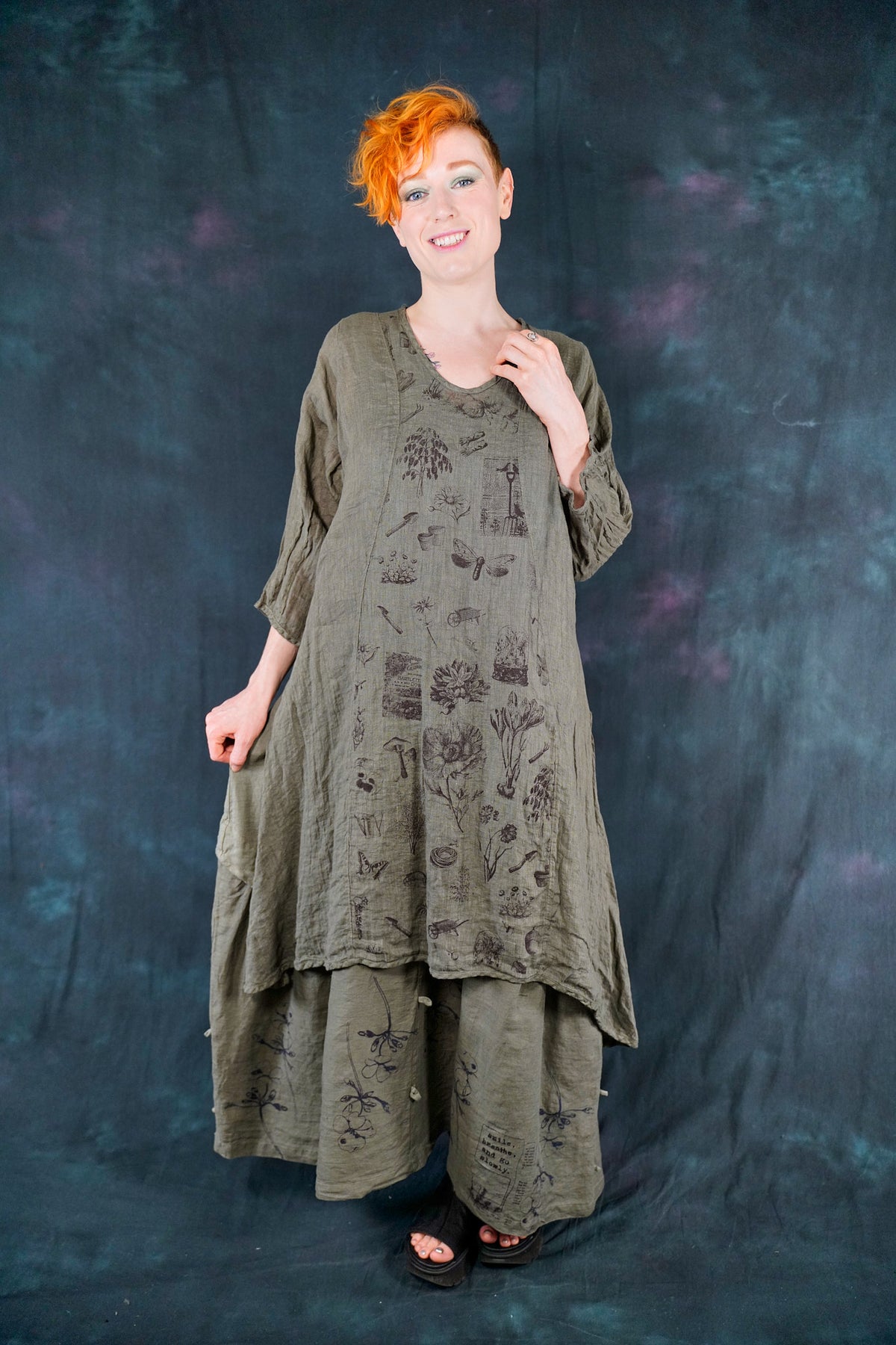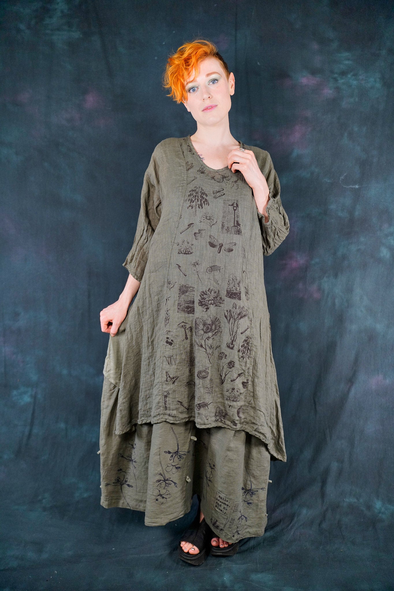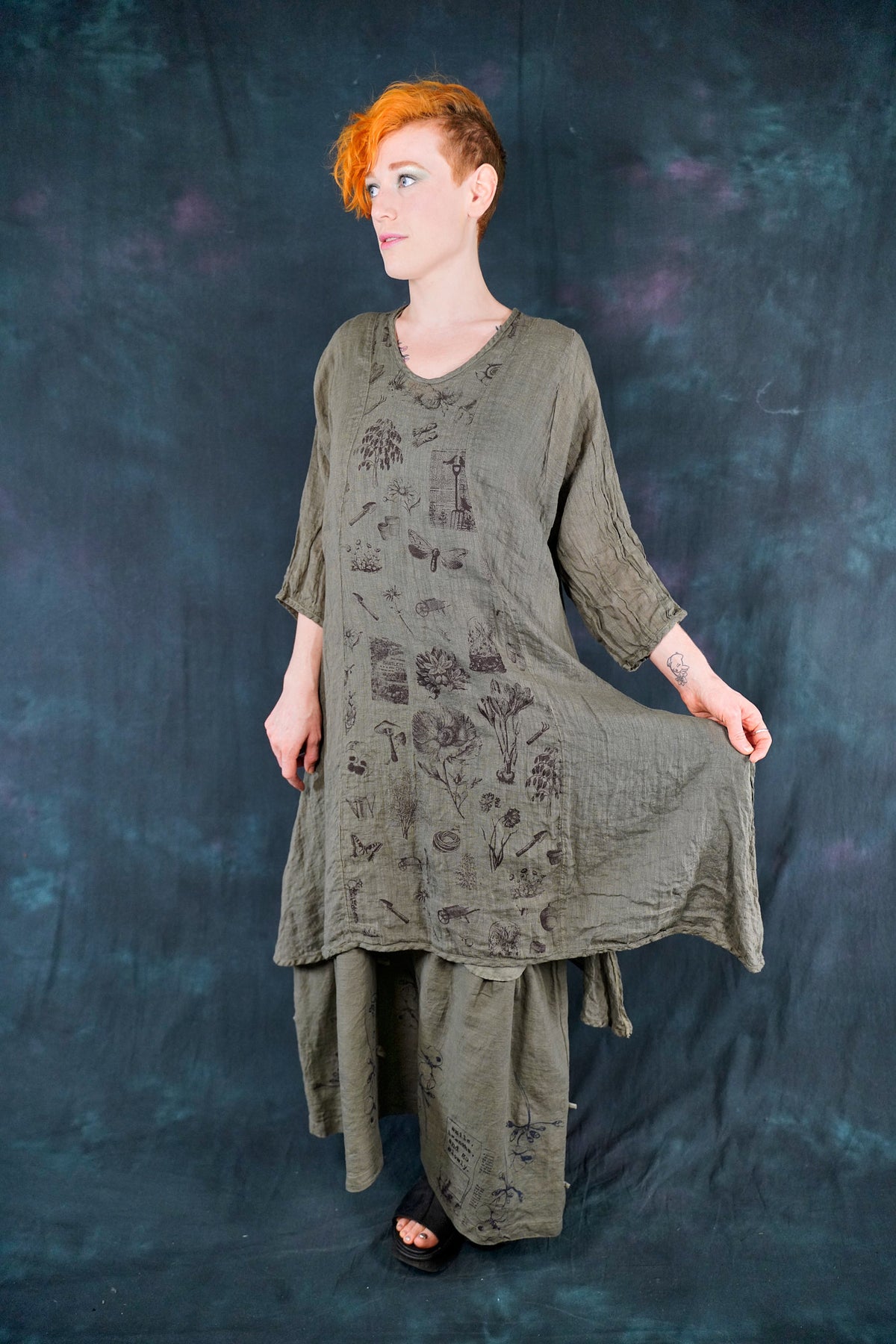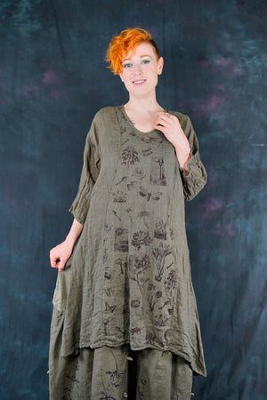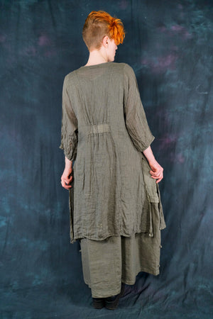 This graceful lightweight linen tunic has a softly V’d neckline, princess seaming on front and back and 3/4 length sleeves. Also features beautiful shaping that flatters the body without having a lot of extra fabric. High side slits allow ease around the hip area. Please read measurements below