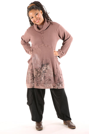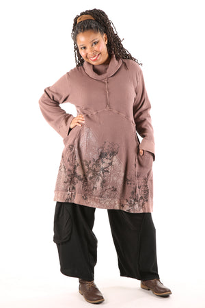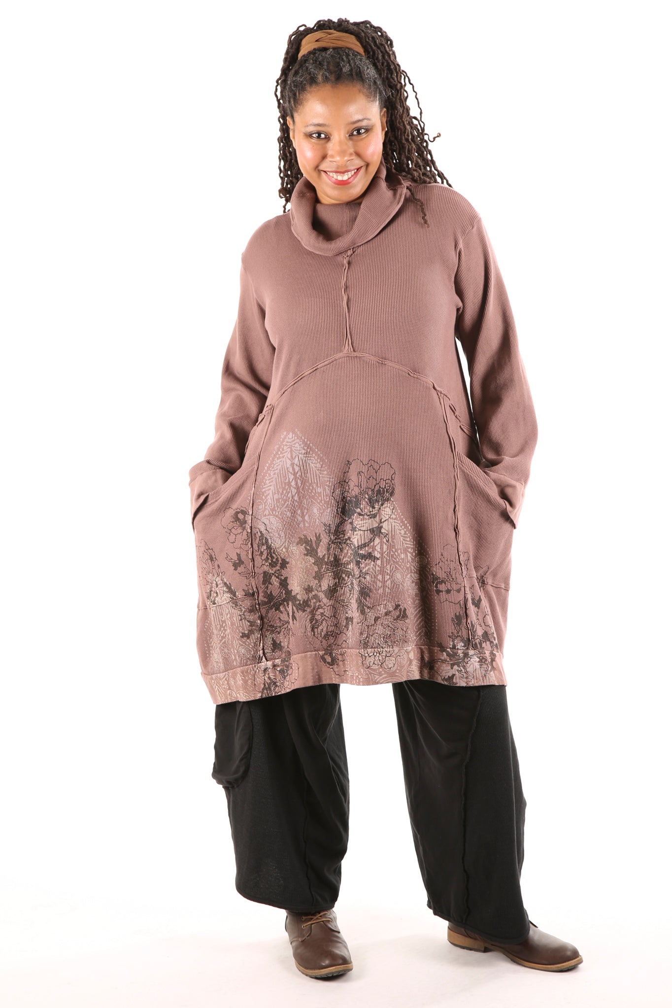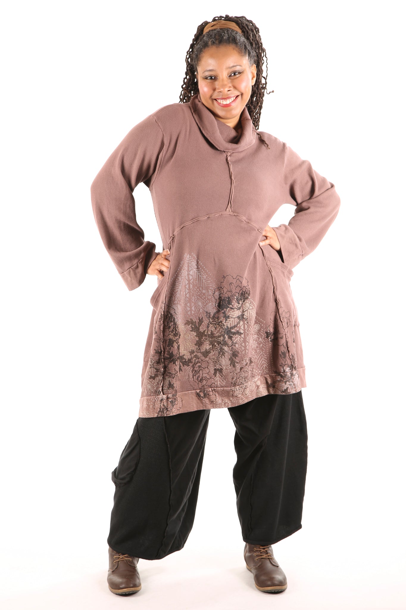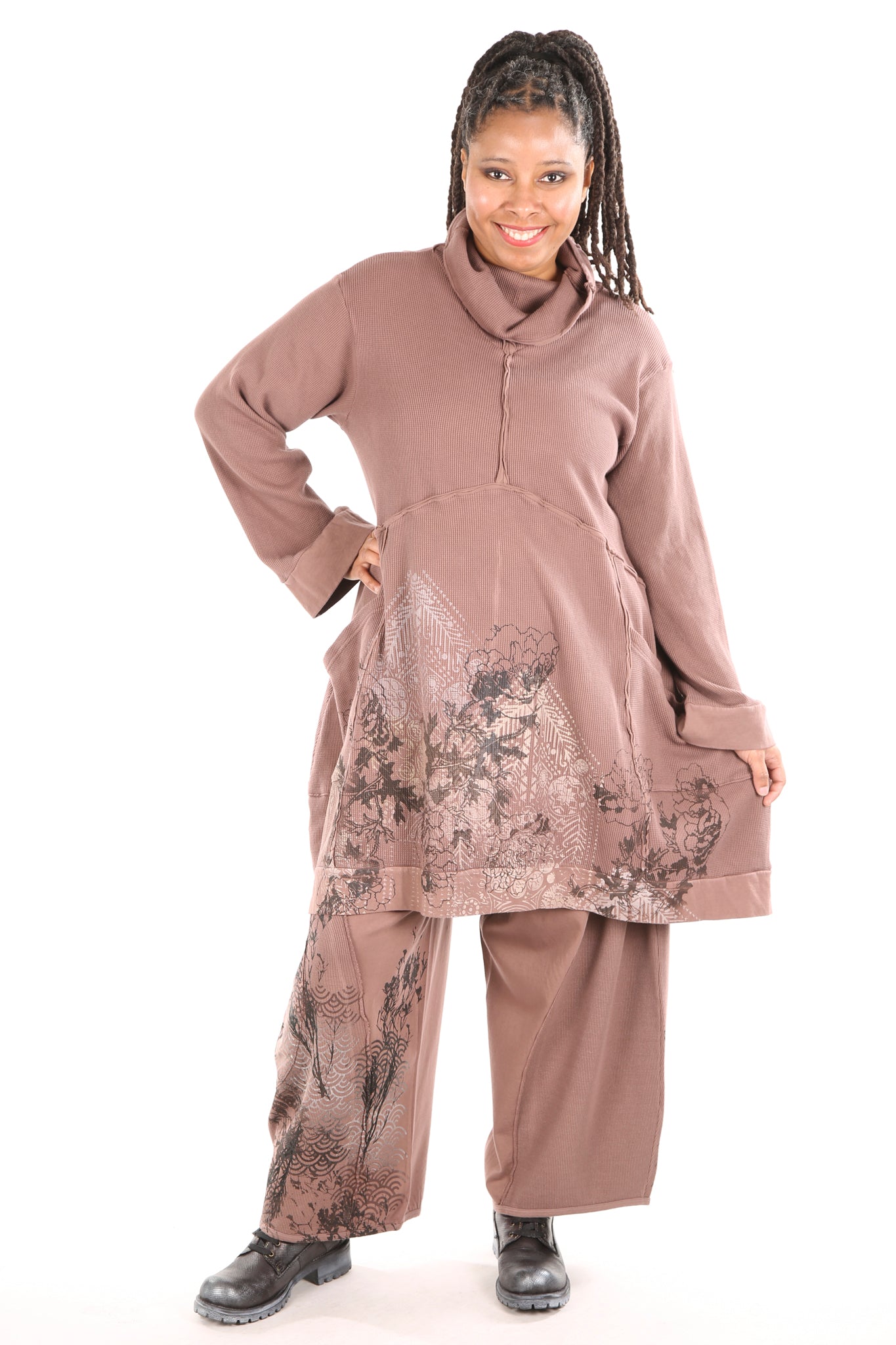 Our best and most fun to wear piece for the heart of winter; one that you reach for time and time again.An oversized thermal tunic dress with inside out roll to raw seaming and deep pockets, an extra wide high neck and wide sleeves so that you can easily layer this over other pieces to keep warm & feel cozy. Our model is 5'6" tall.