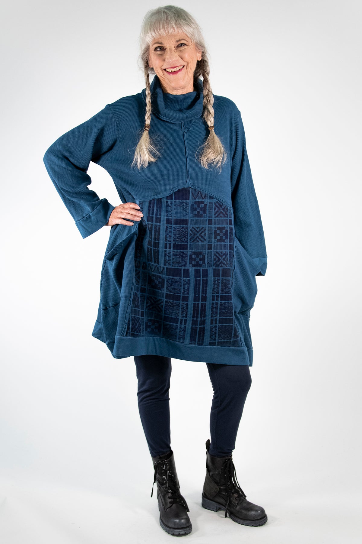Our best and most fun to wear piece for the heart of winter; one that you reach for time and time again.An oversized thermal tunic dress with inside out roll to raw seaming and deep pockets, an extra wide high neck and wide sleeves so that you can easily layer this over other pieces to keep warm & feel cozy. Our model is 5'6" tall.