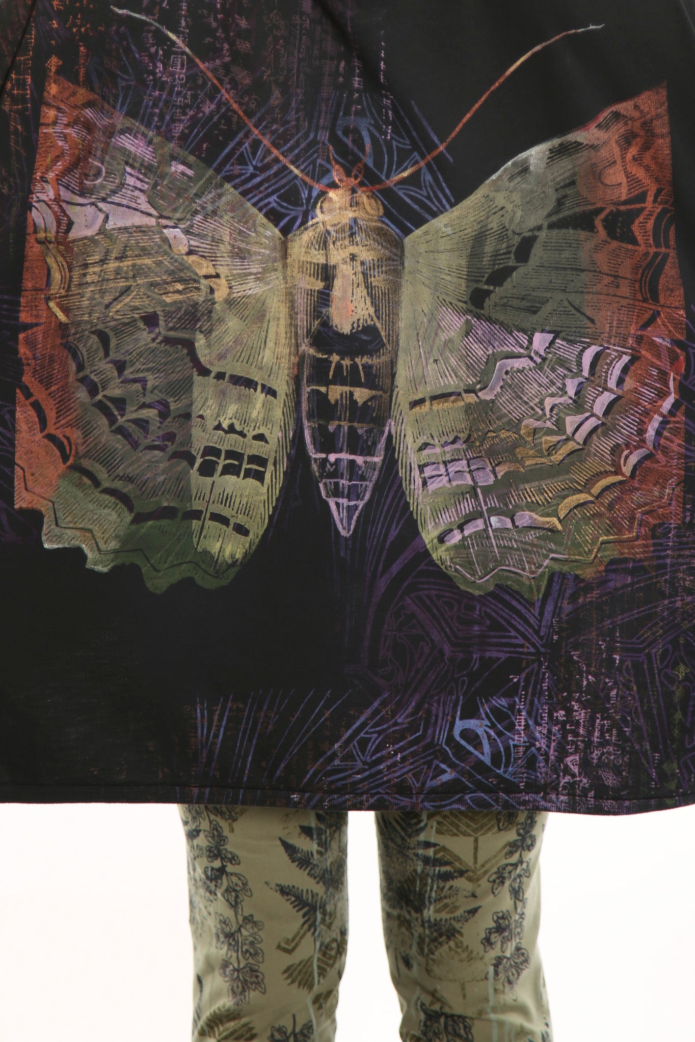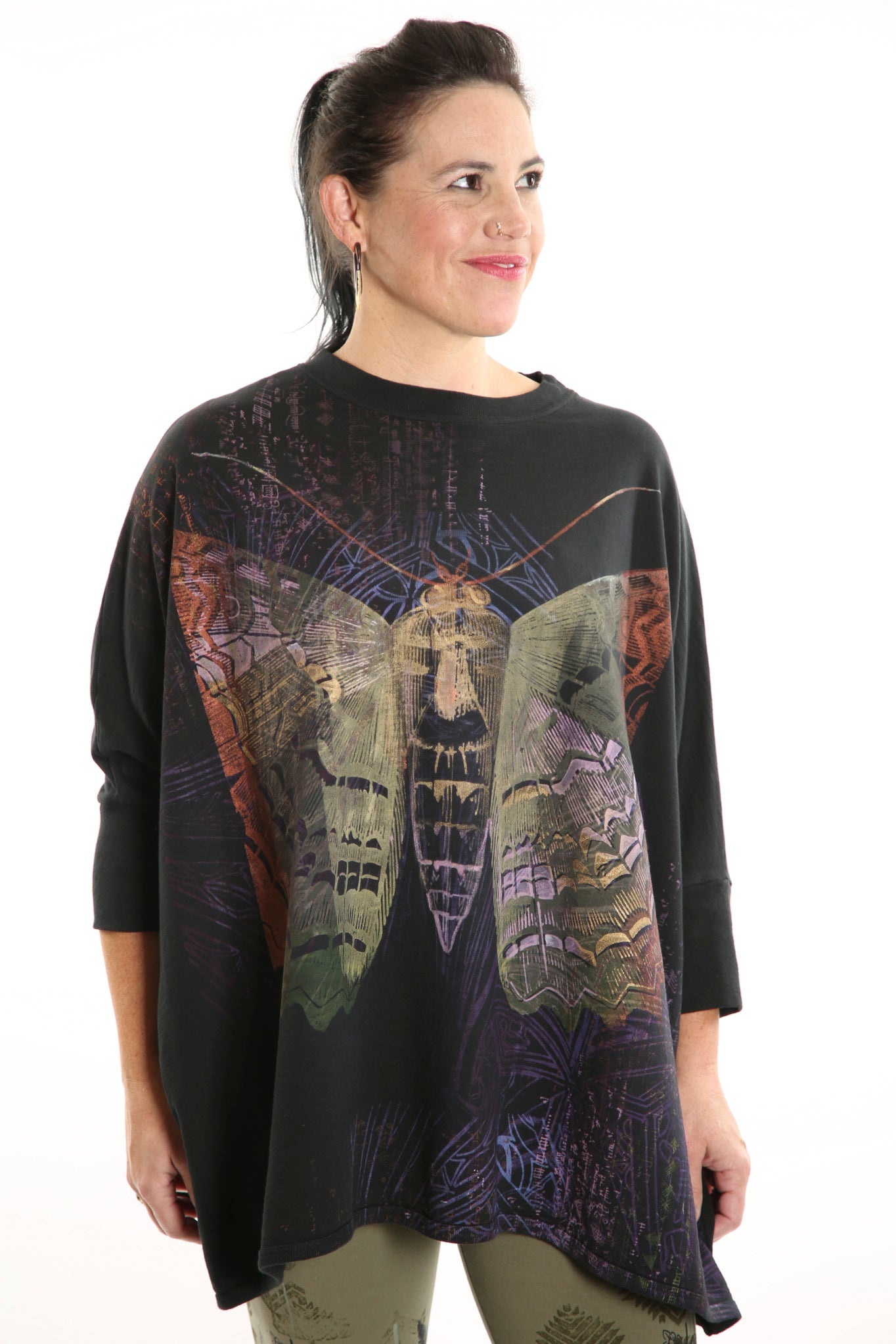 Only 1 left! One of the most favored Blue Fish styles featured in our organic cotton french terry. A perfect canvas for fun prints of endless creativity. This one features a detail of one of the most beautiful moth wings in the world; charaxes.