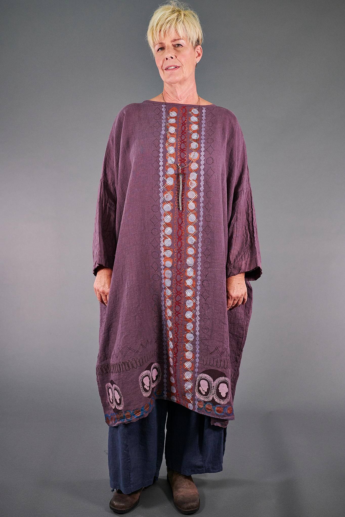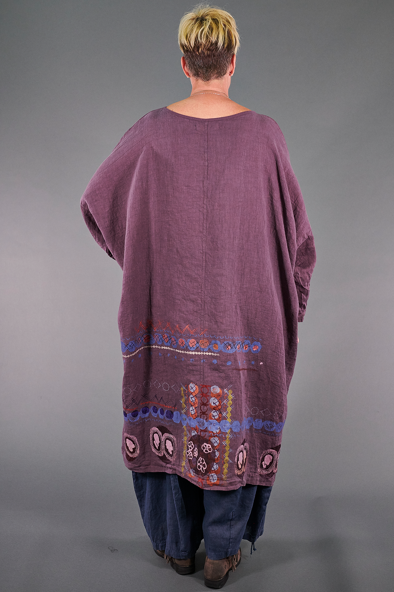 Worn alone, this truly makes a beautiful statement--for more coverage, try wearing over linen pants for an elegant & flowing ensemble.