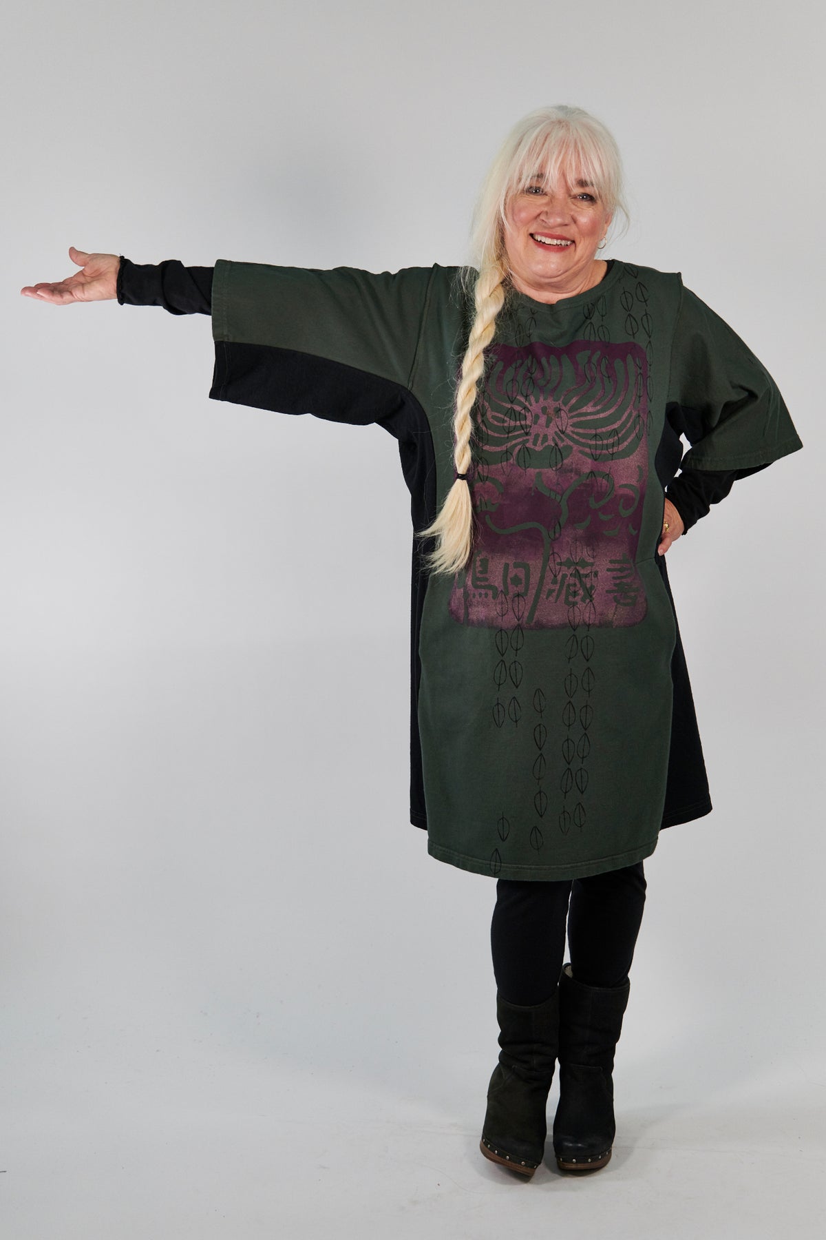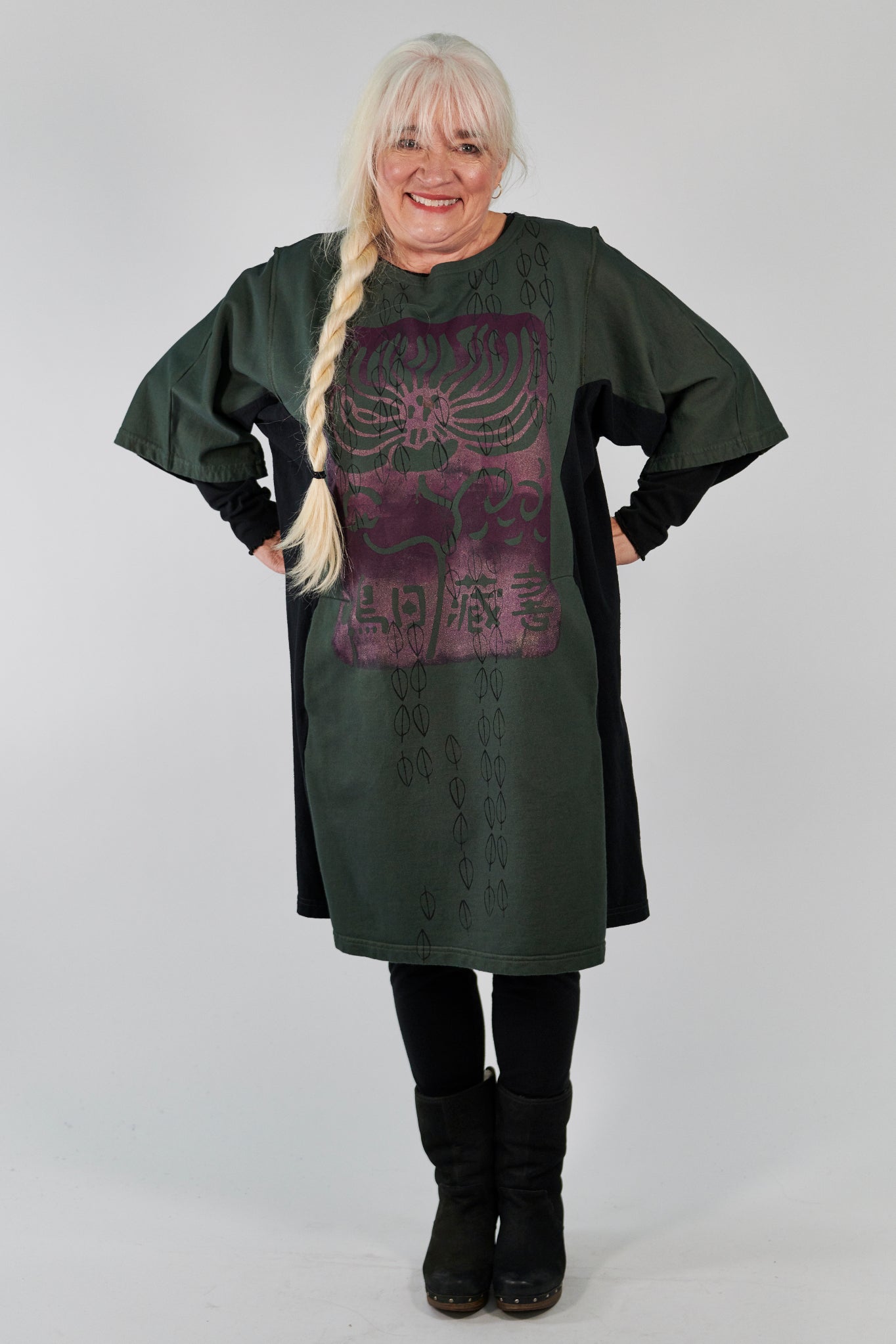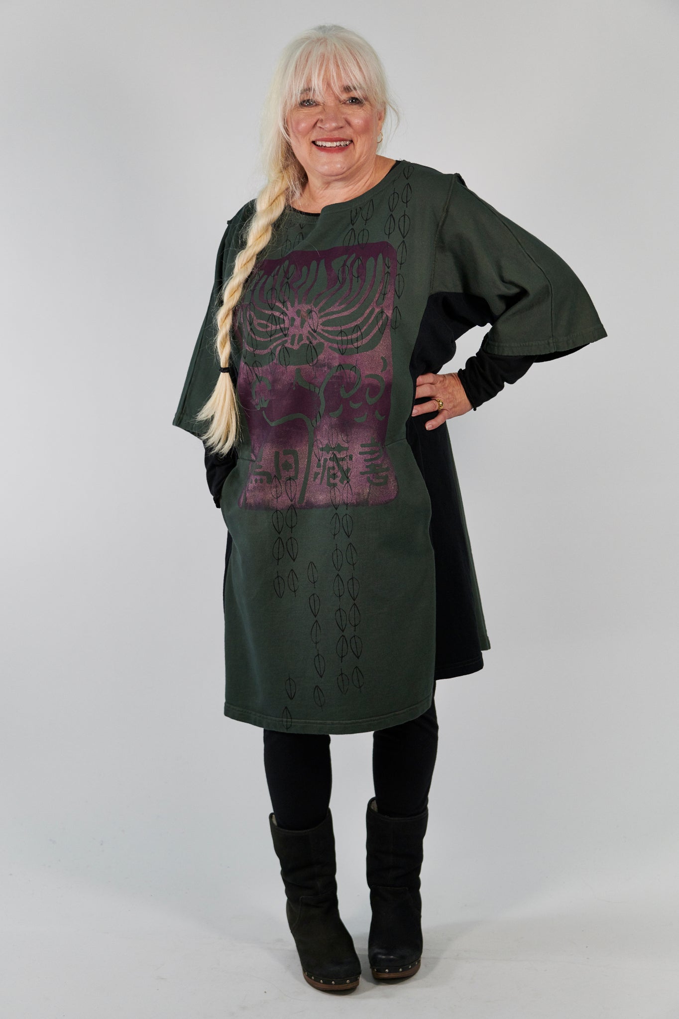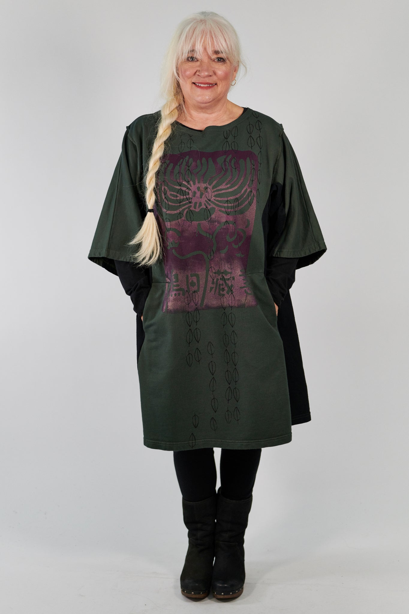 A fantastic new tunic style! Flattering color blocking on the sides, hidden pockets at the waist and short sleeves (perfect for layering) make this longer tunic/tee a must-have. Make it warmer by layering one of our Hemp Layer Tops underneath.