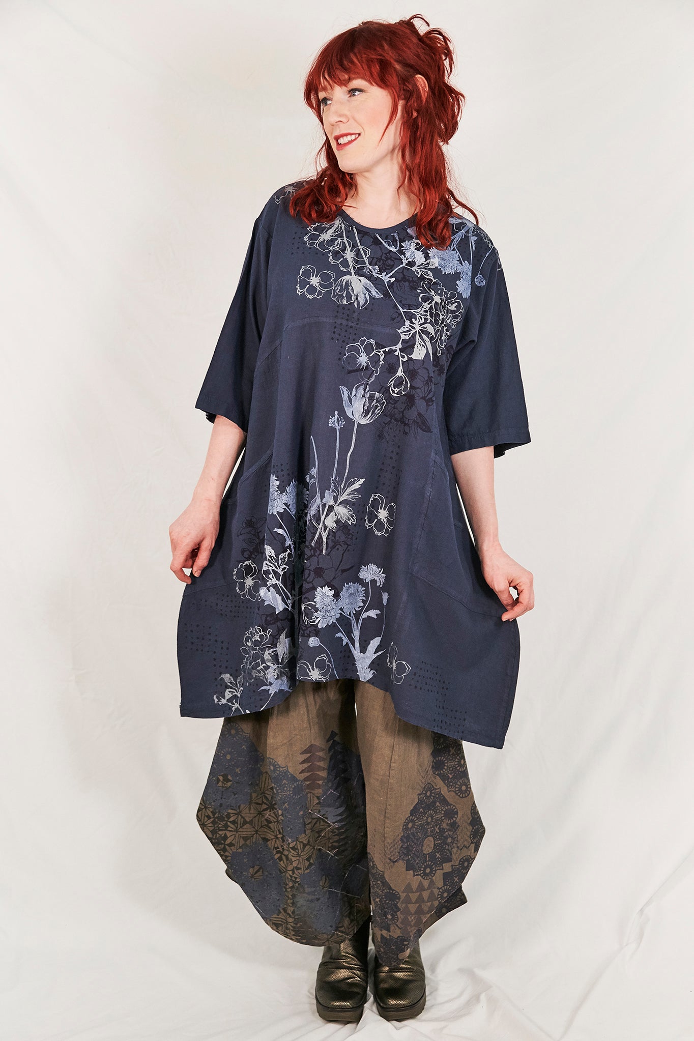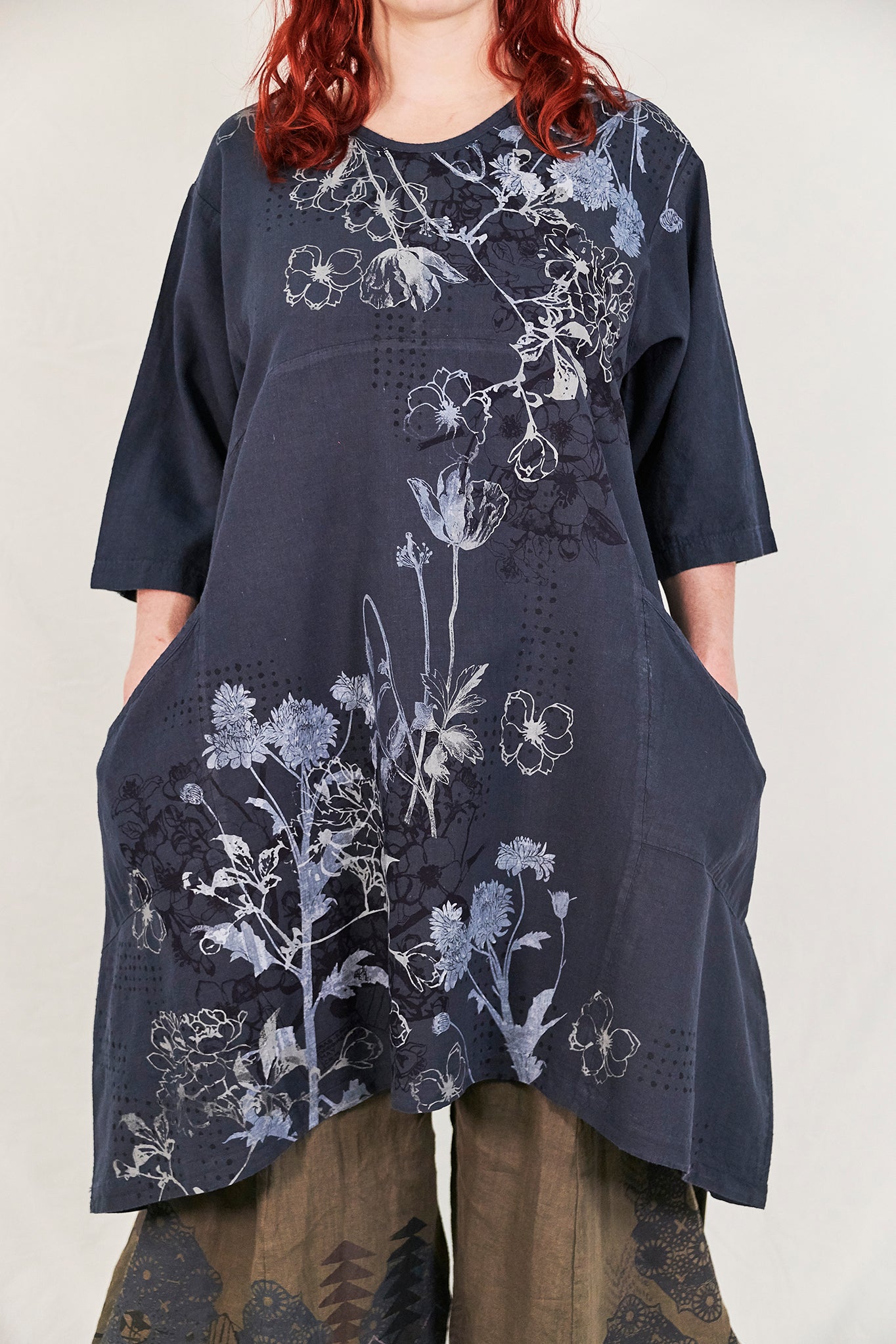 Classic Blue Fish, the oversized Zen tunic in hemp/cotton offers elegant lines and a comfortable fit for layering with a pant or skirt, or wear it as a simple spring-summer dress. The quality of this blend drapes beautifully with a generosity of fabric and styling. You can dress it up, or dress it down. And of course, the pockets are just right - oh, how we love them! Dyed a beautiful indigo color- summers black