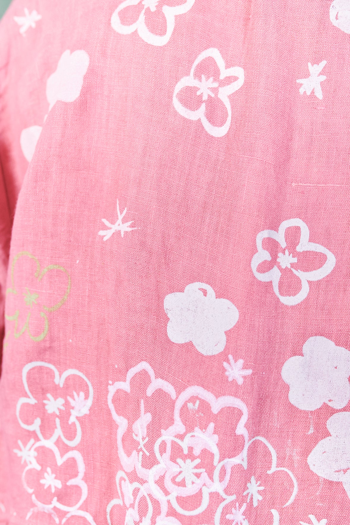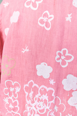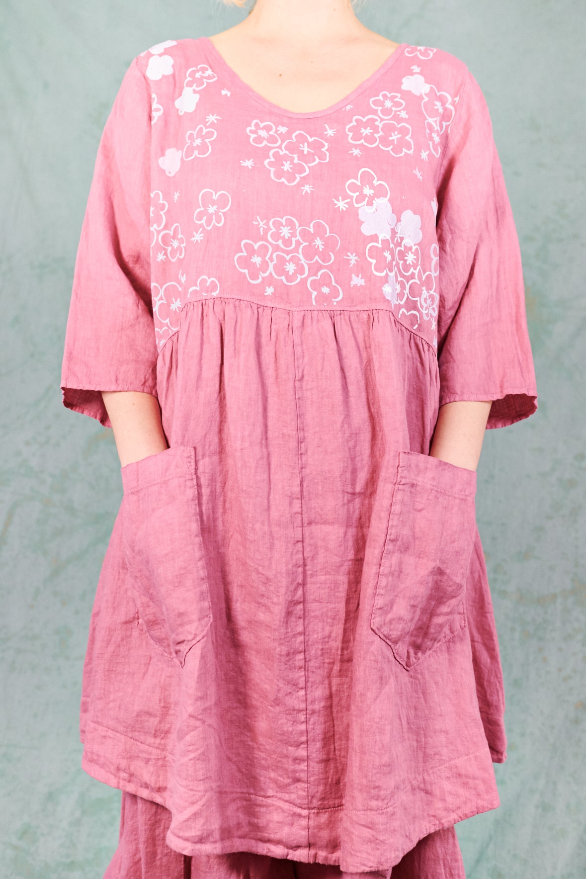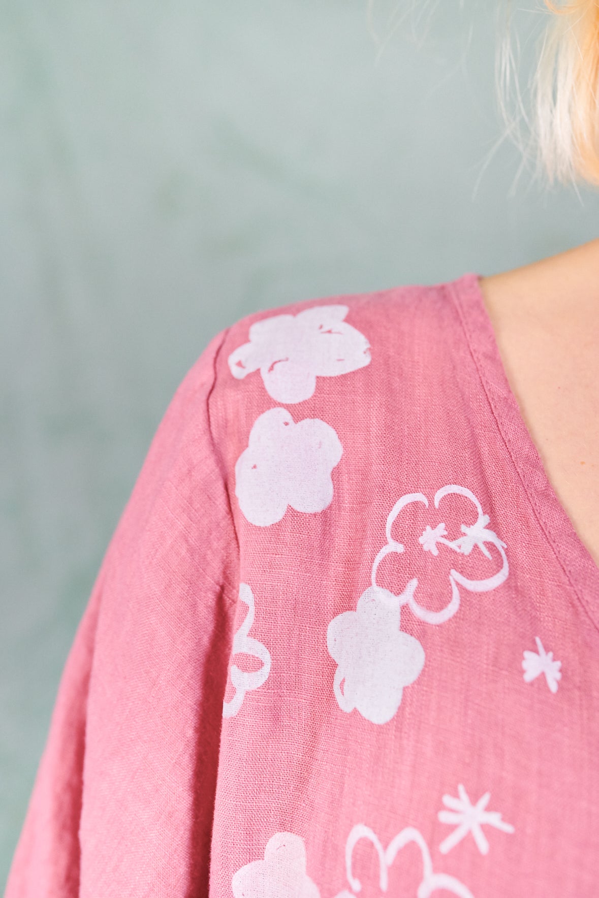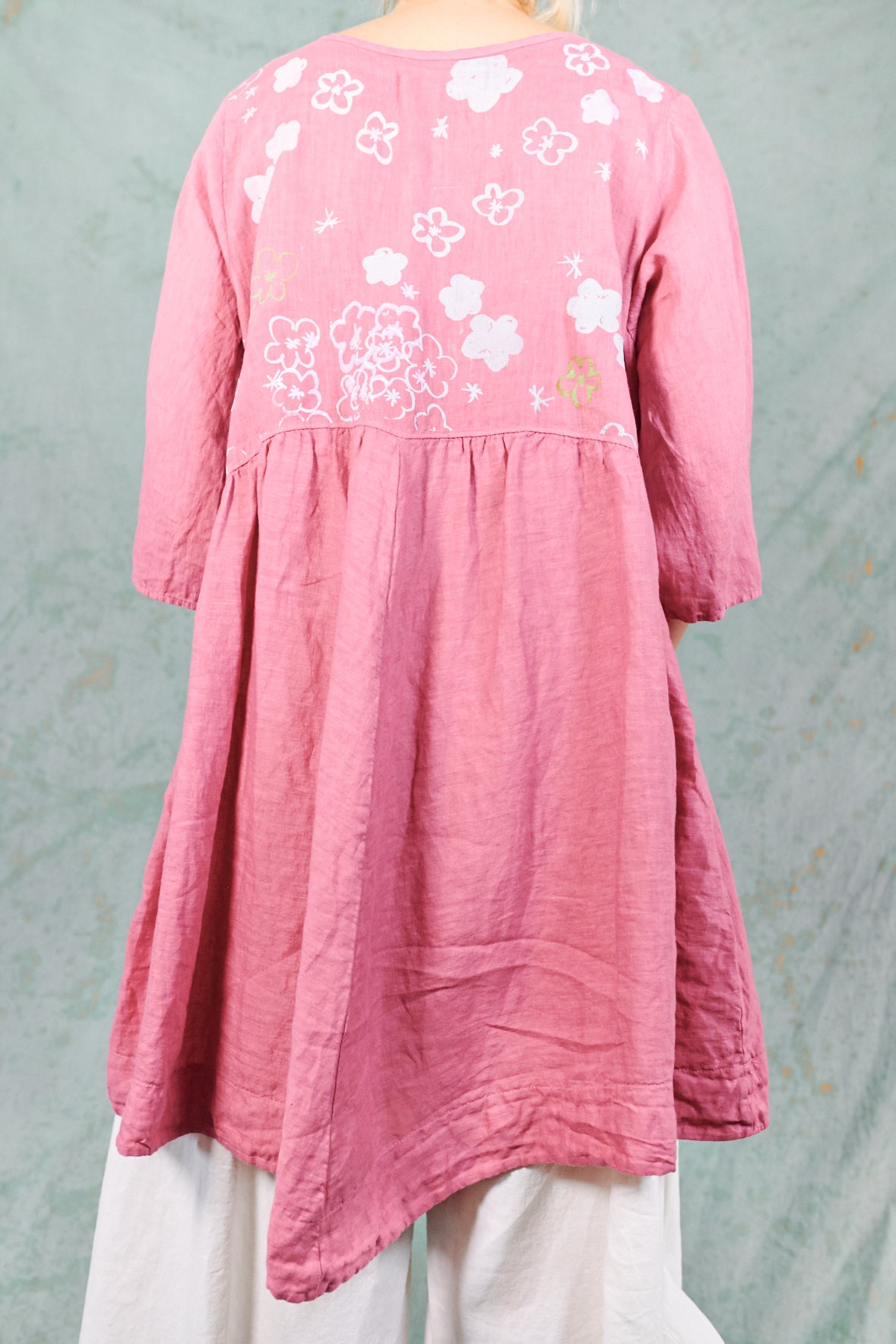 This wonderfully romantic mid-weight linen tunic is the perfect top for warm days. The cut is generous and flattering, with elbow-length sleeves. The playfully skirted bottom adds a touch of feminine elegance. This is truly a collector's item & one that you will wear for many years to come! Printed on the front and back with artwork from Blue Fish artists.