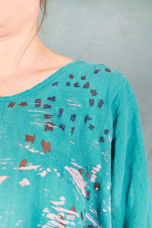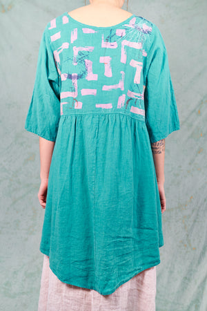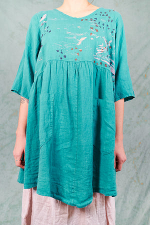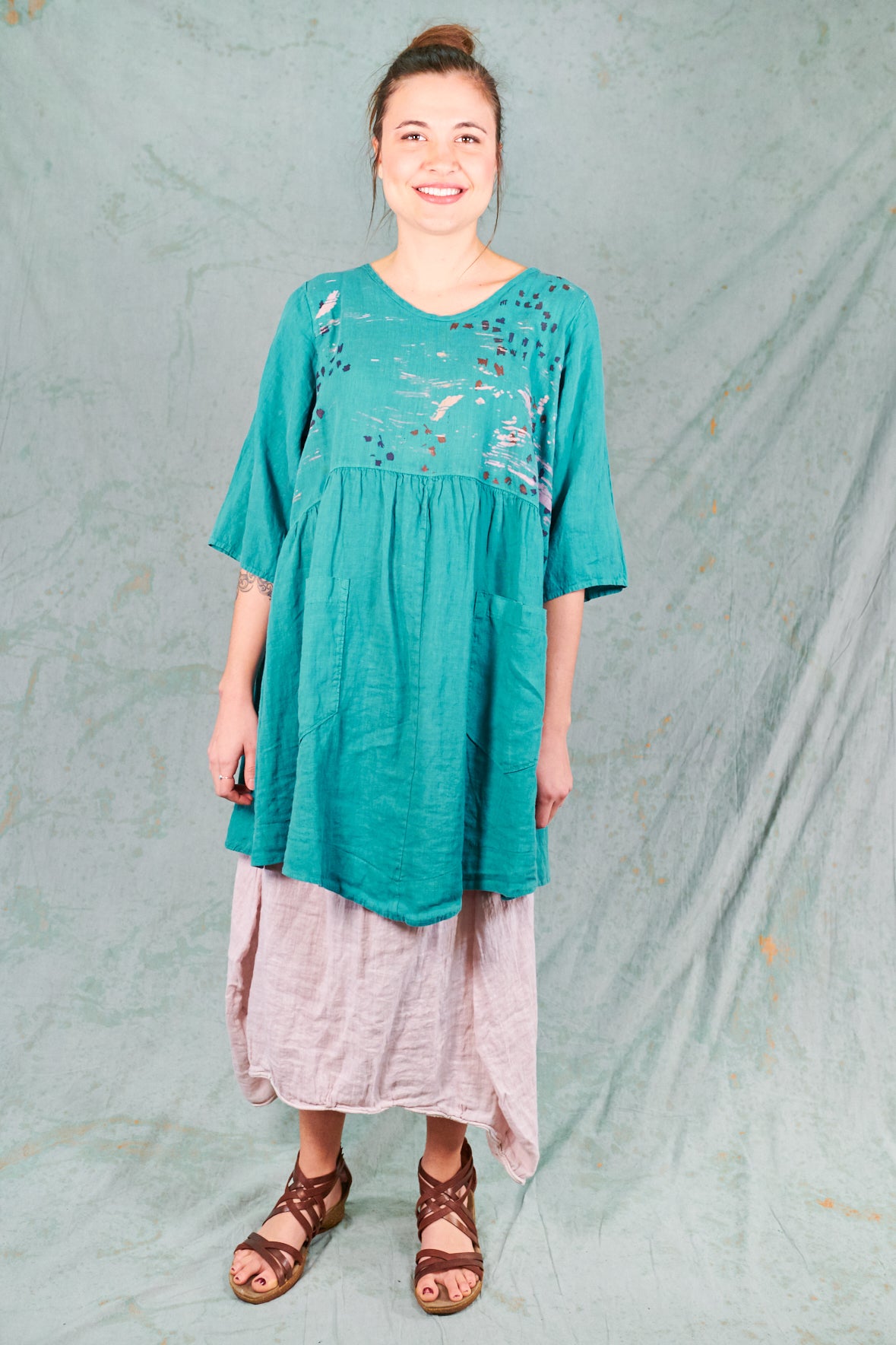 This wonderfully romantic mid-weight linen tunic is the perfect top for warm days. The cut is generous and flattering, with elbow-length sleeves. The playfully skirted bottom adds a touch of feminine elegance.