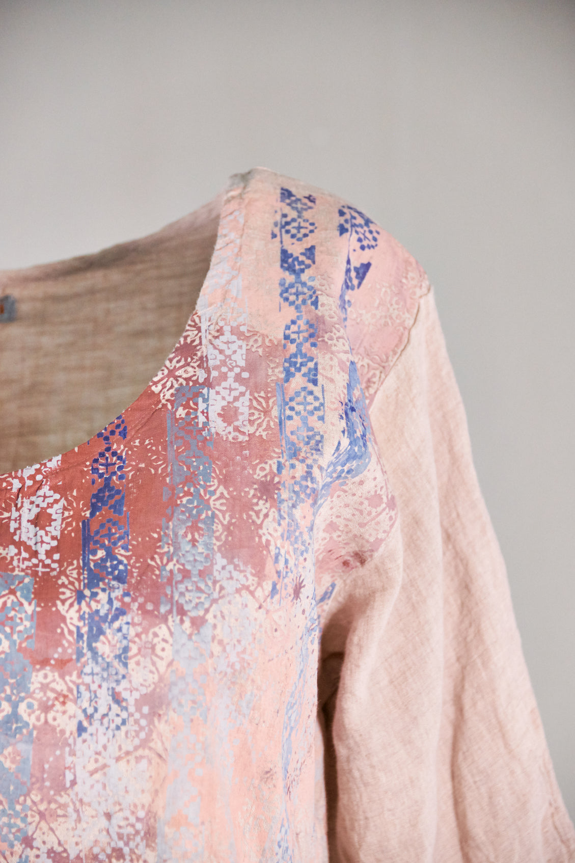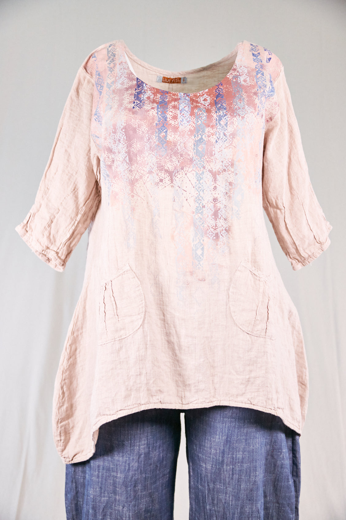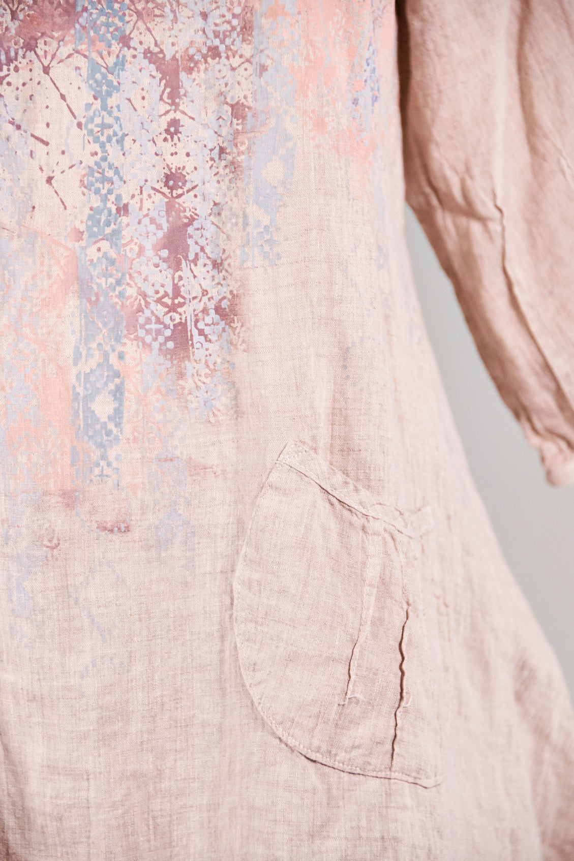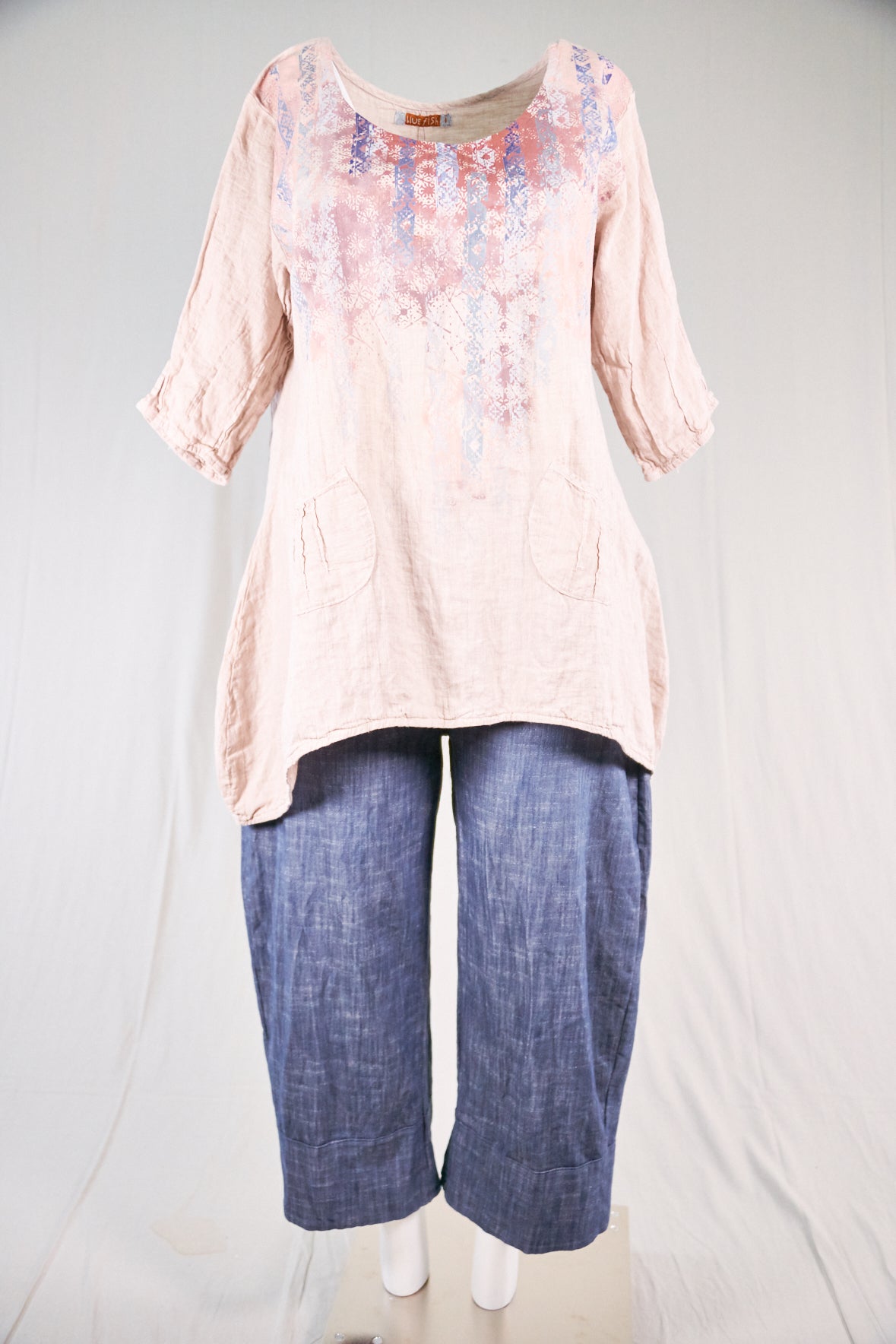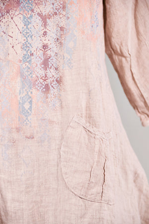 Color Note: Natural Pink is an overdyed natural linen, so the color is different than "Pink" which is dyed on a white linen. in the main photo, the skirt is  PINK and the top is NATURAL PINK. They coordinate but are not exactly the same. The top in NATURAL LINEN 2265 is the same color as the print on the skirt so that is another option for a coordinated outfit:)