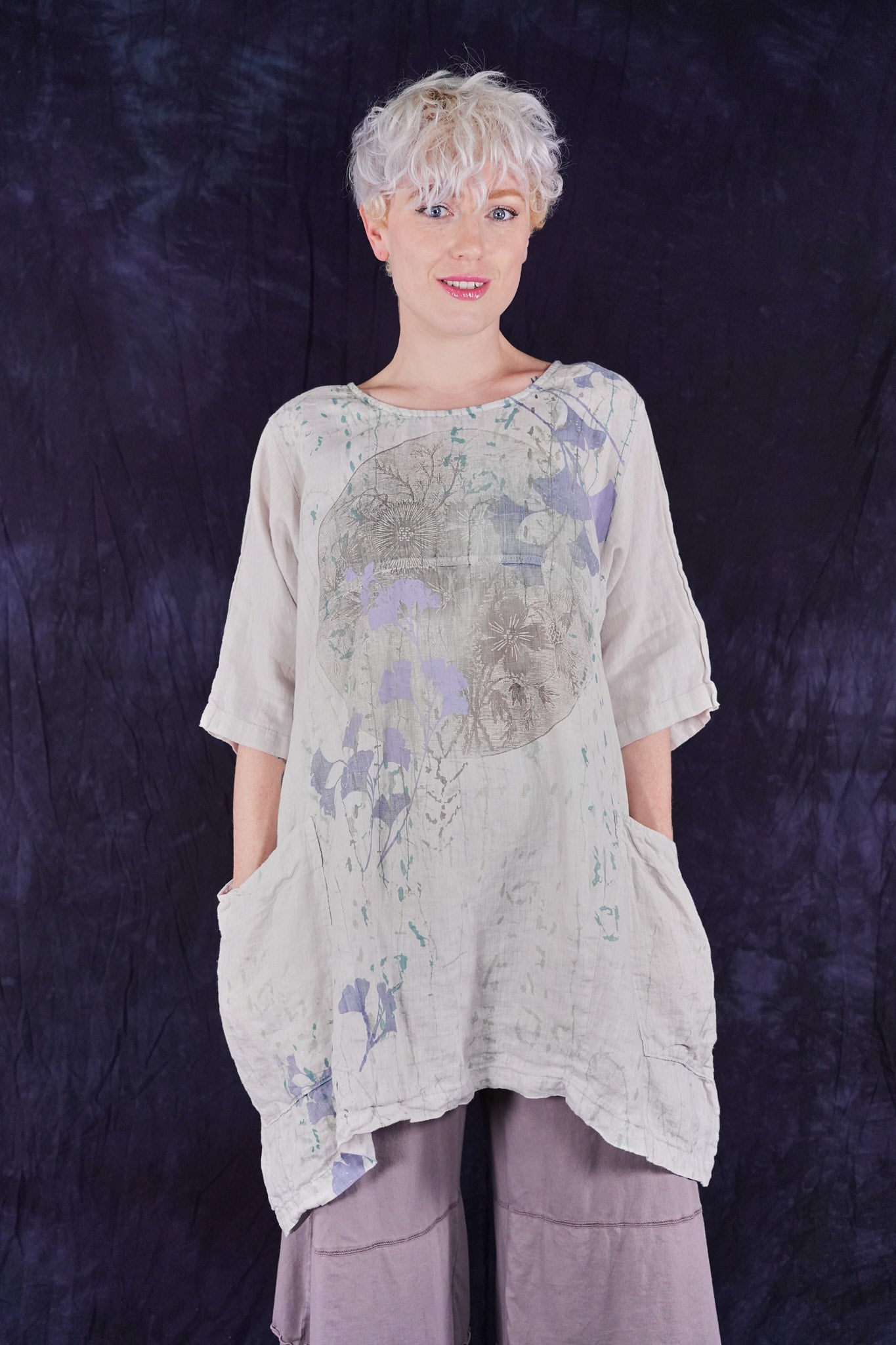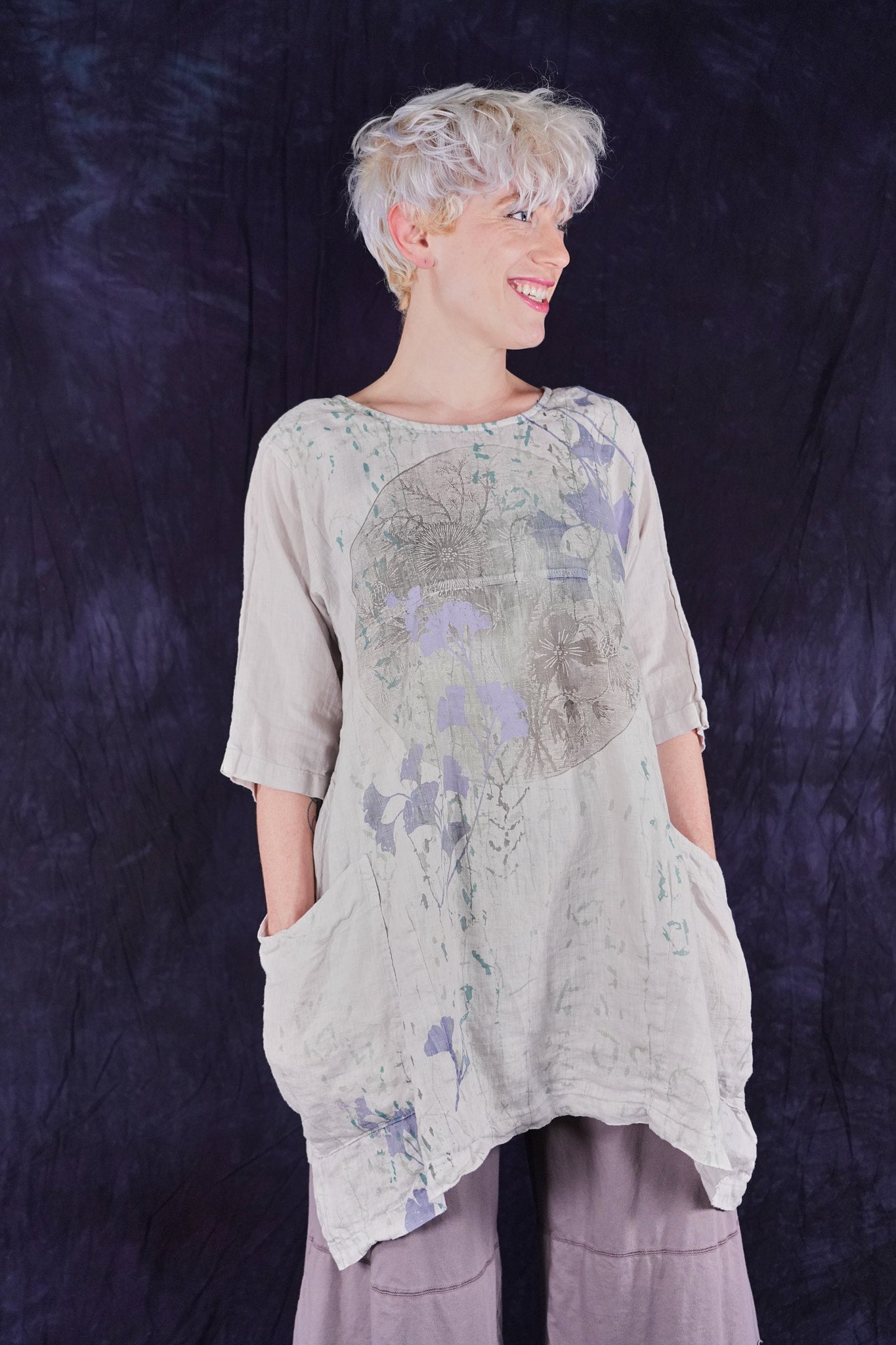 Our favorite Urchin Tunic, with lovely pockets- in our beautiful regular weight summer linen with beautiful prints. What more could you ask for... This style is a collectable for any wardrobe, mixes with pants and skirts so many ways to wear and style!