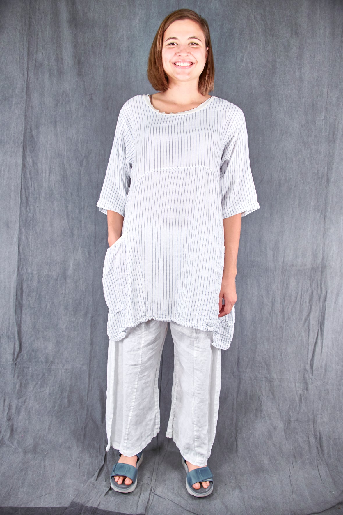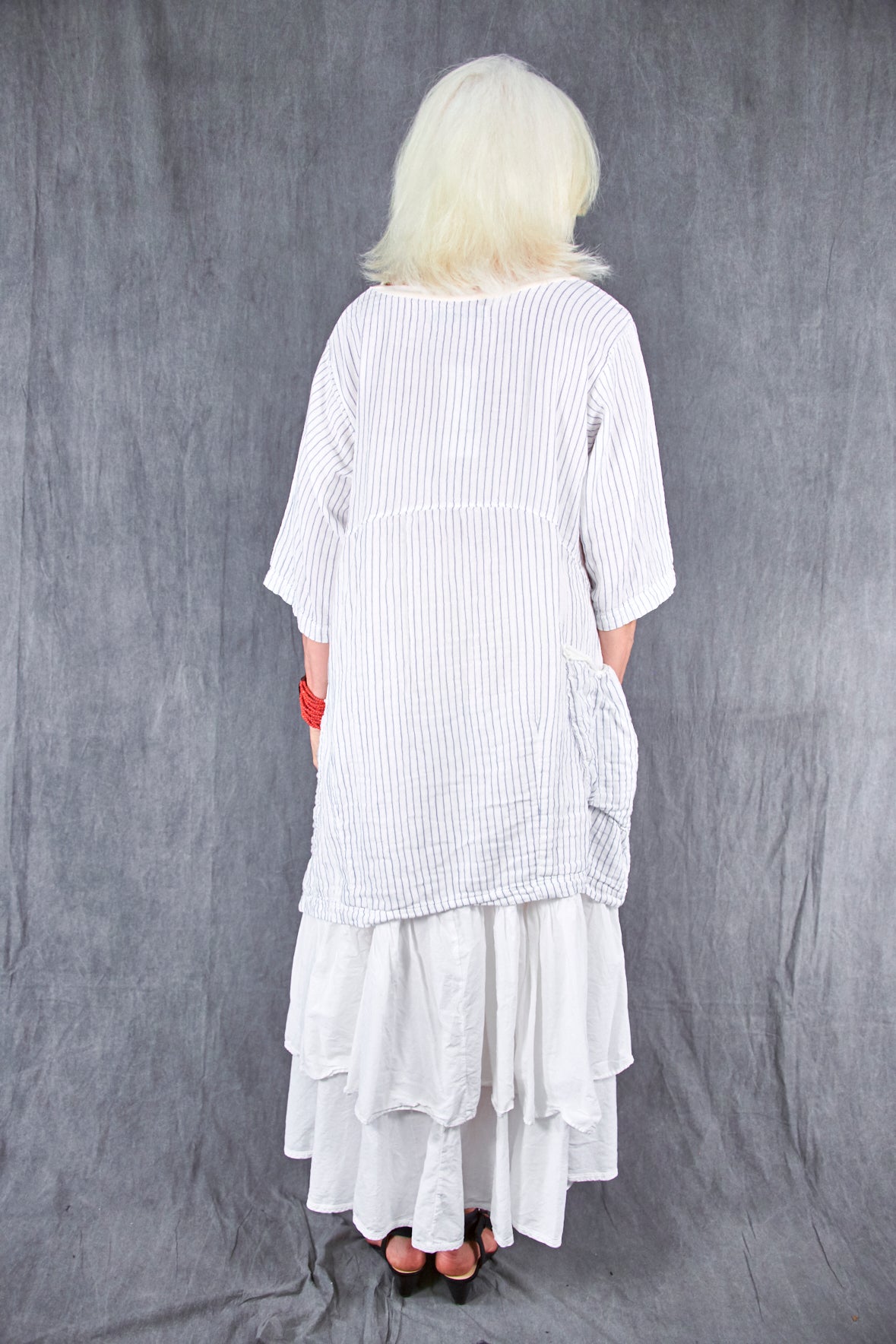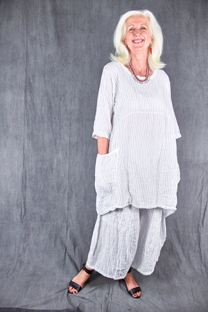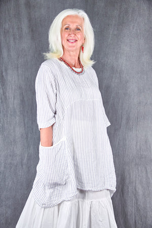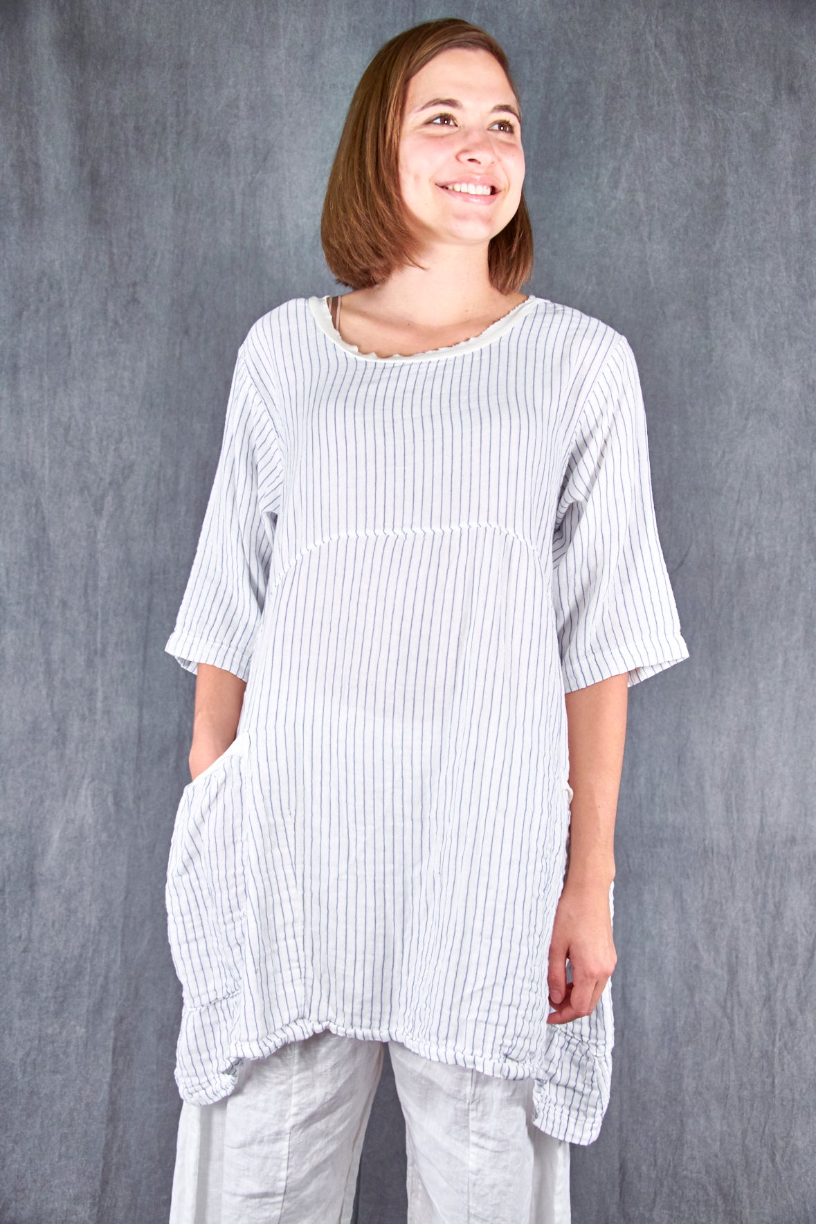A lovely light summer tunic with pockets made from cool double gauze with sweet subtle stripes in a soft denim blue.