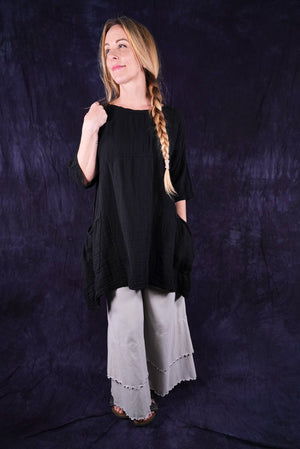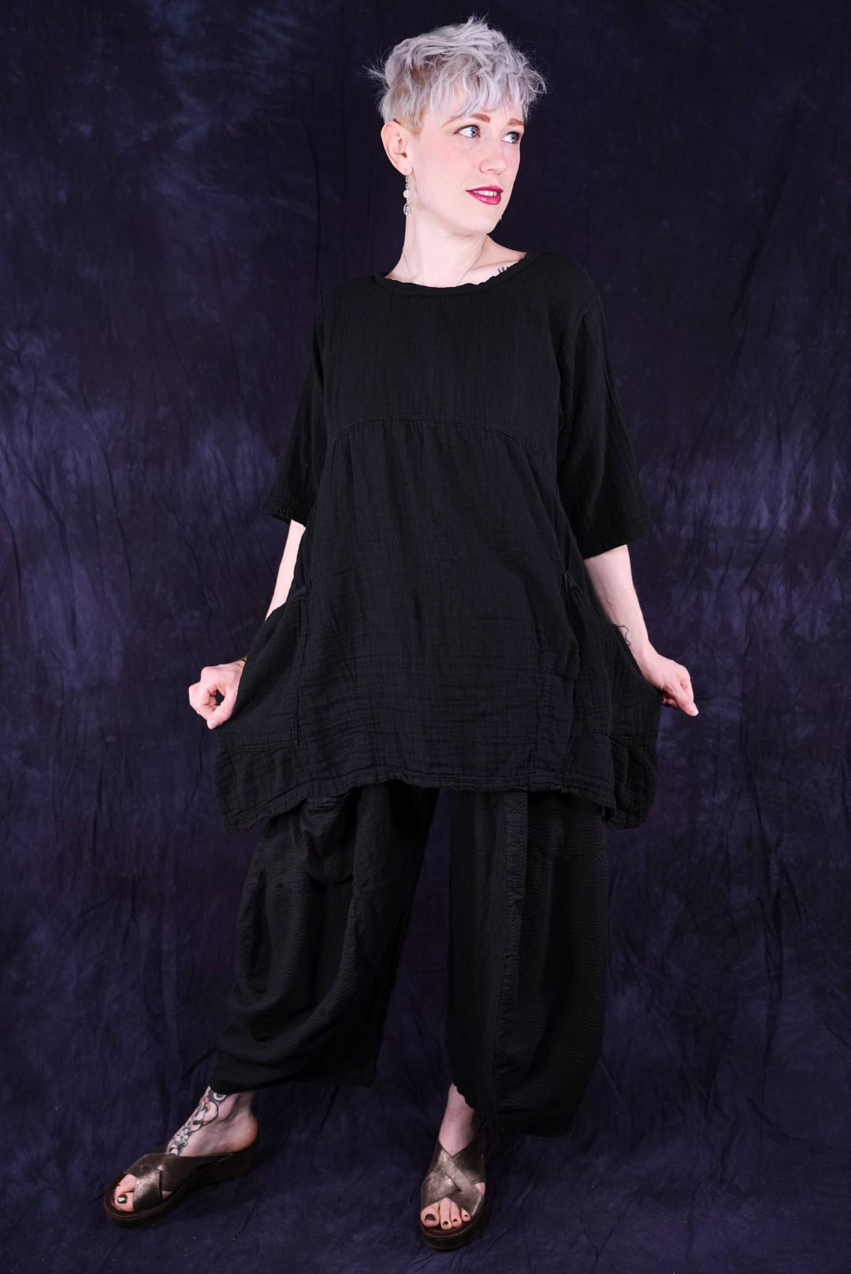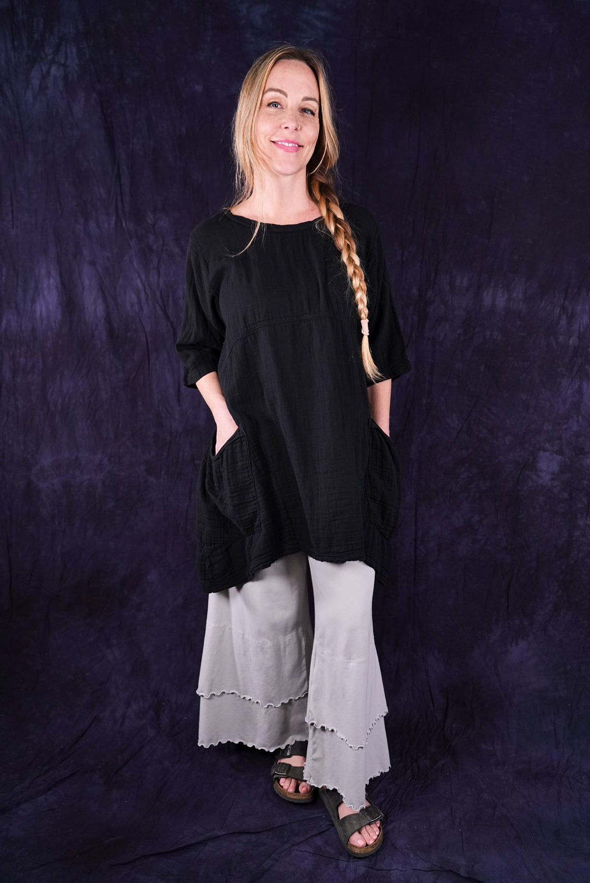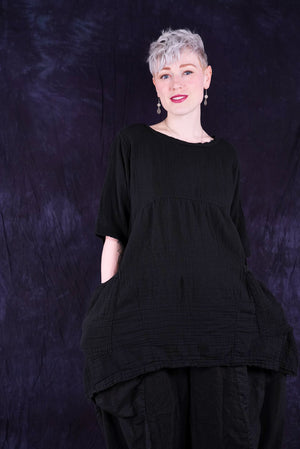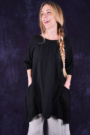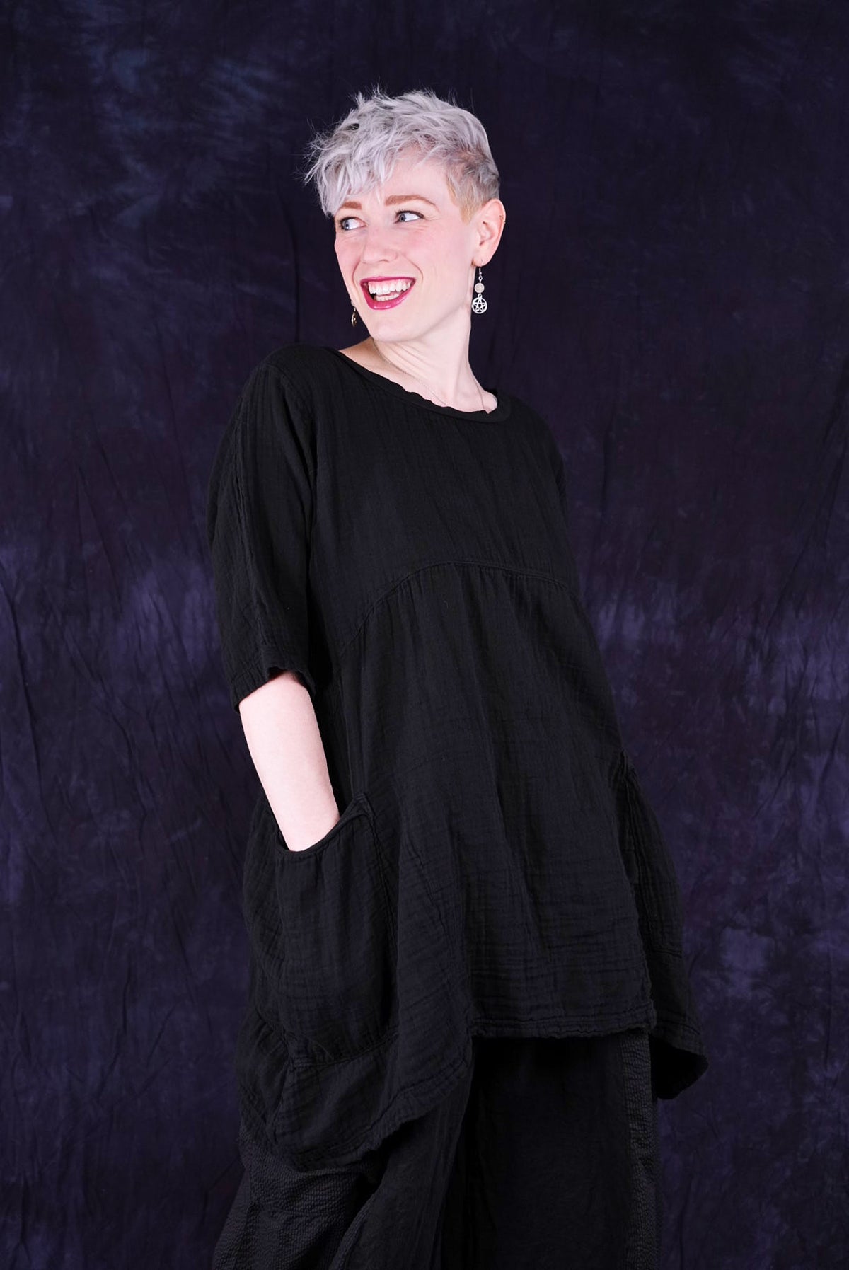 A lovely light summer tunic with pockets made from cool cotton double gauze, in easy and effortless black. TRAVEL PERFECTION:)