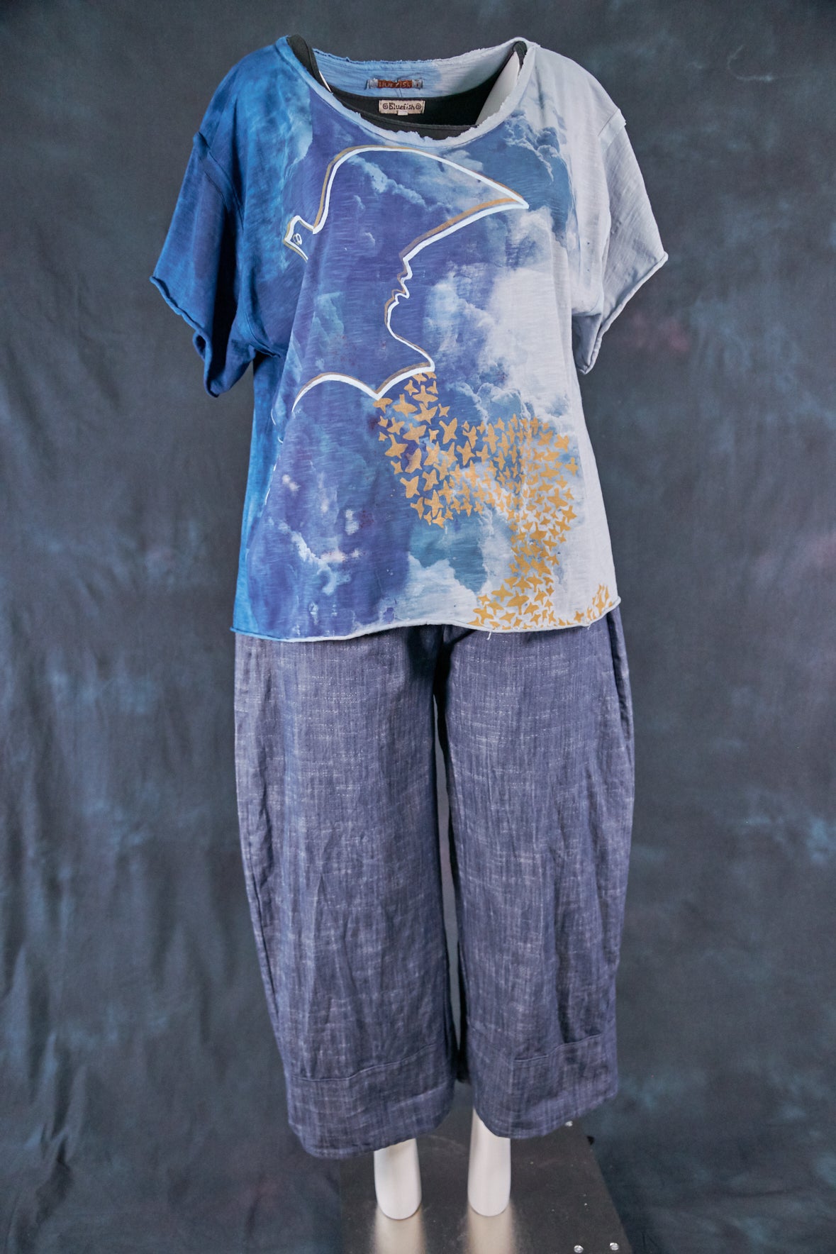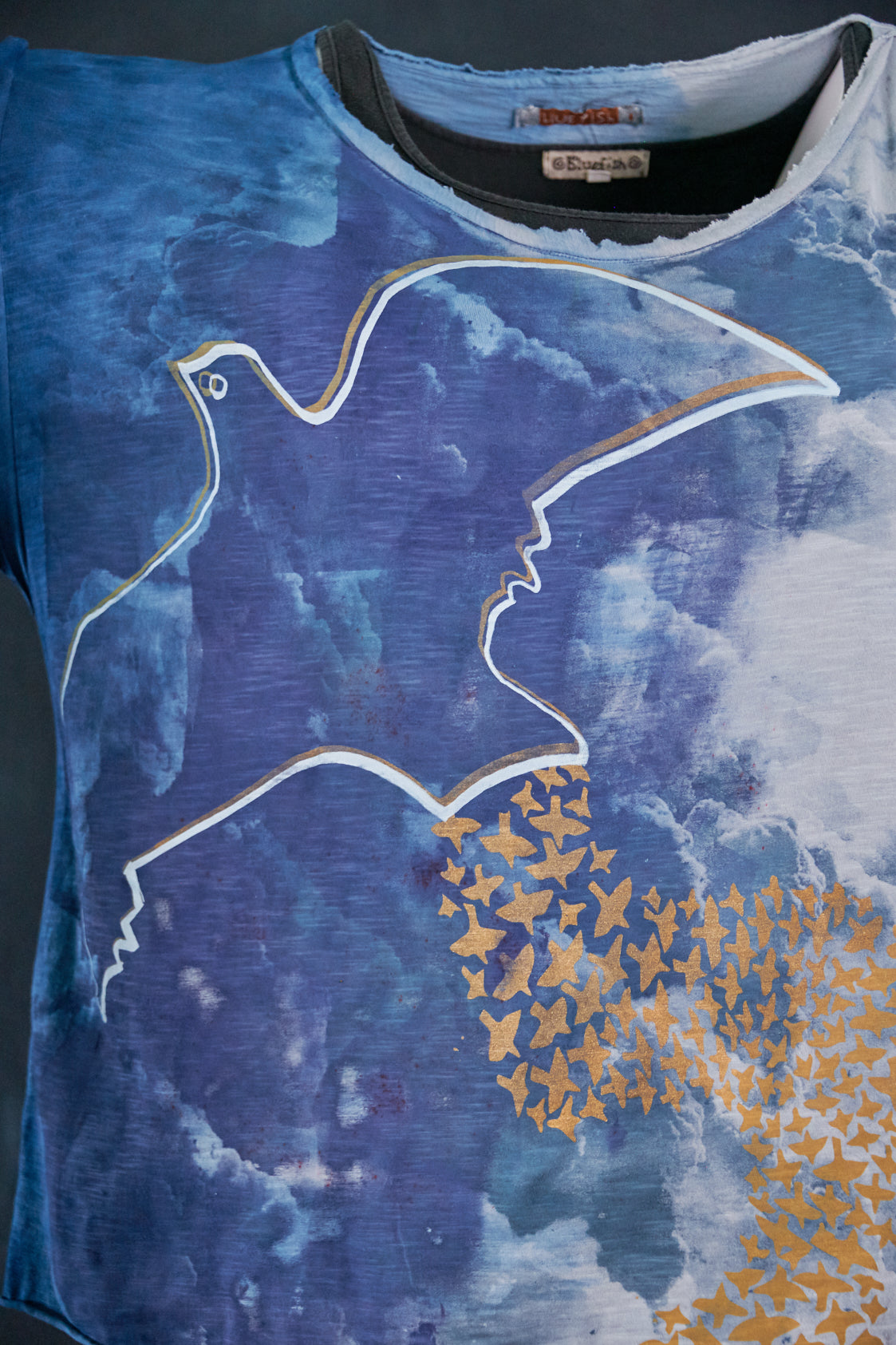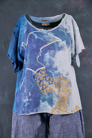 2295HD Wide Neck Raw Slub Tee- Pale Water-Night Blue-P