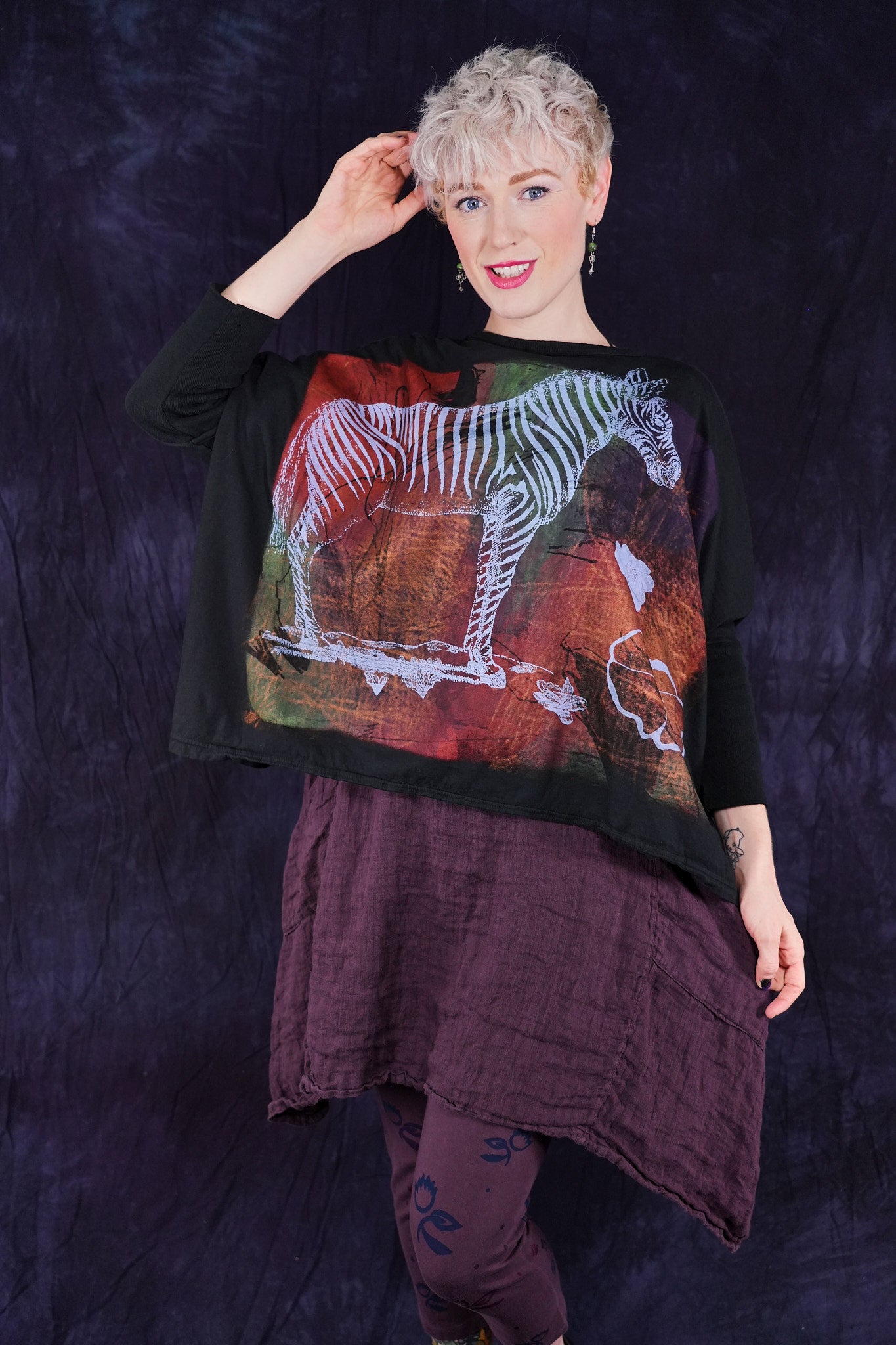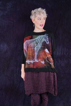 A colorful + painterly ZEBRA...One of the most favored Blue Fish styles featured in our organic cotton for spring and summertime. Sleeves are snug to stay in place when pushed up.
