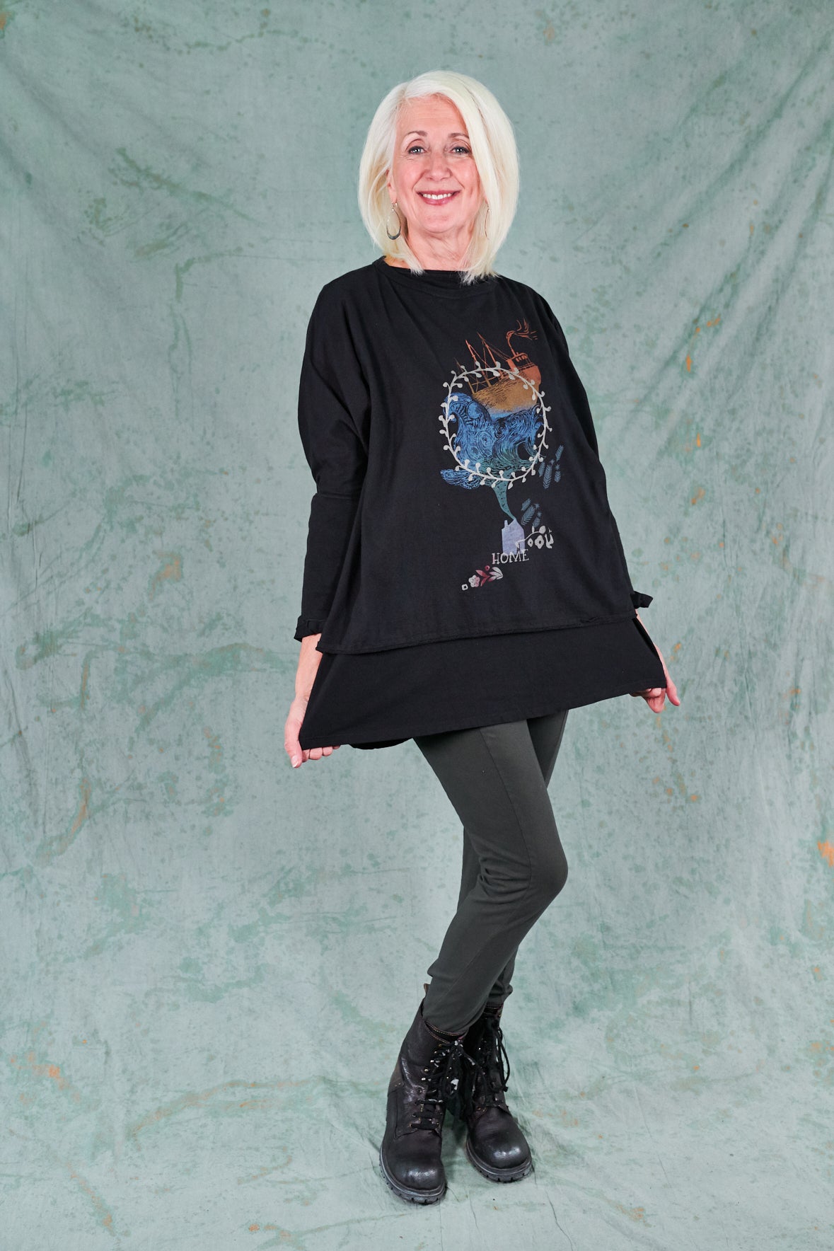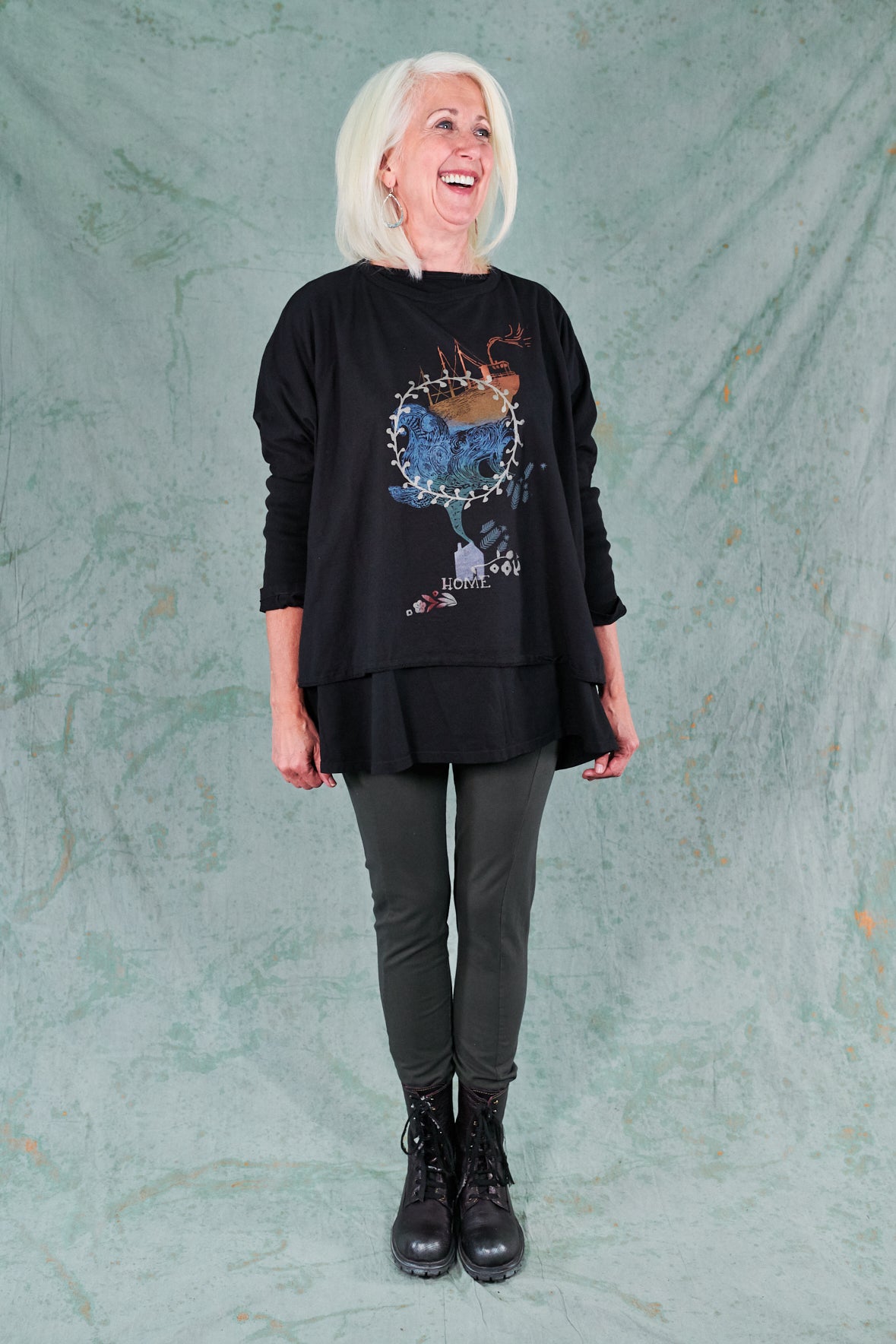 One of the most favored Blue Fish styles featured in our organic cotton jersey for a lighter layer. Sleeves are snug to stay in place when pushed up. This effortless style is one-size, works for all shapes, goes with everything and the cotton jersey drapes well.