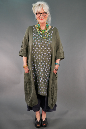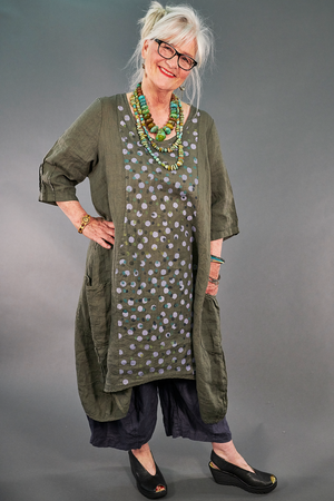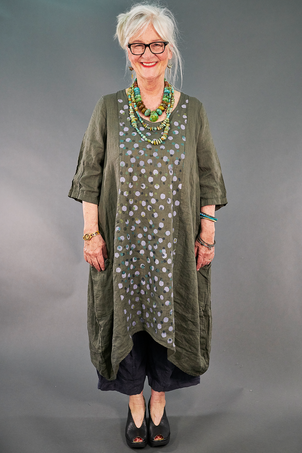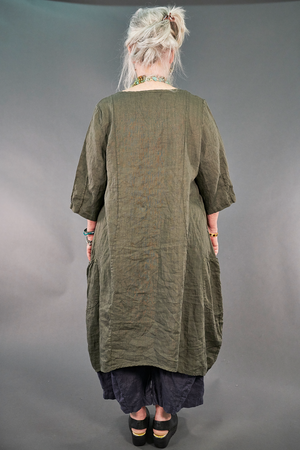Truly breathtaking--this is the kind of treasure you don’t see often. Curved hems & cut are so roomy & flatter many figures. As you can see in the pictures, this super soft linen flows just like a cloud. You won’t BELIEVE how good it feels against your skin!