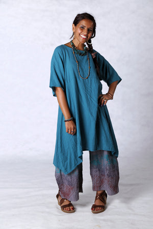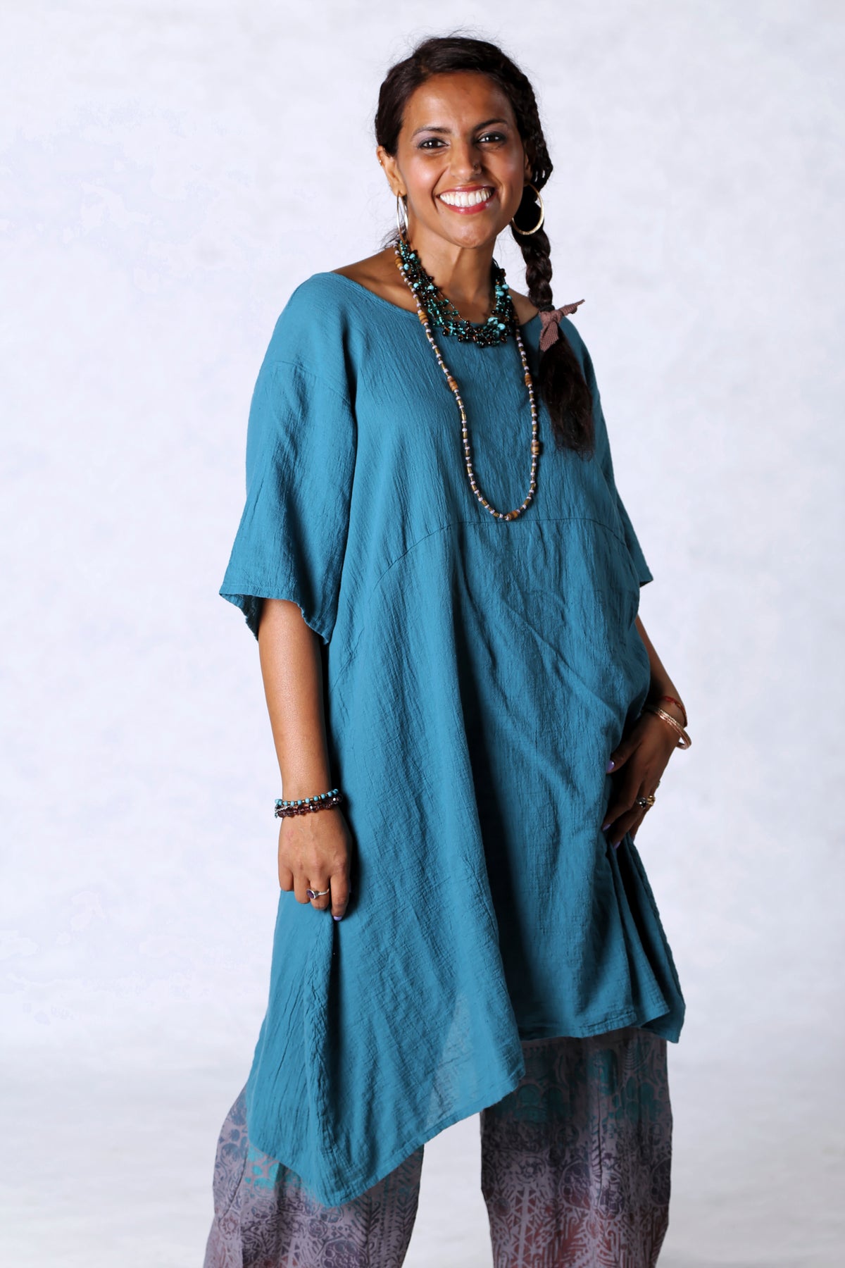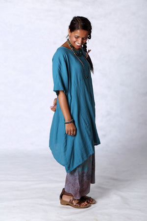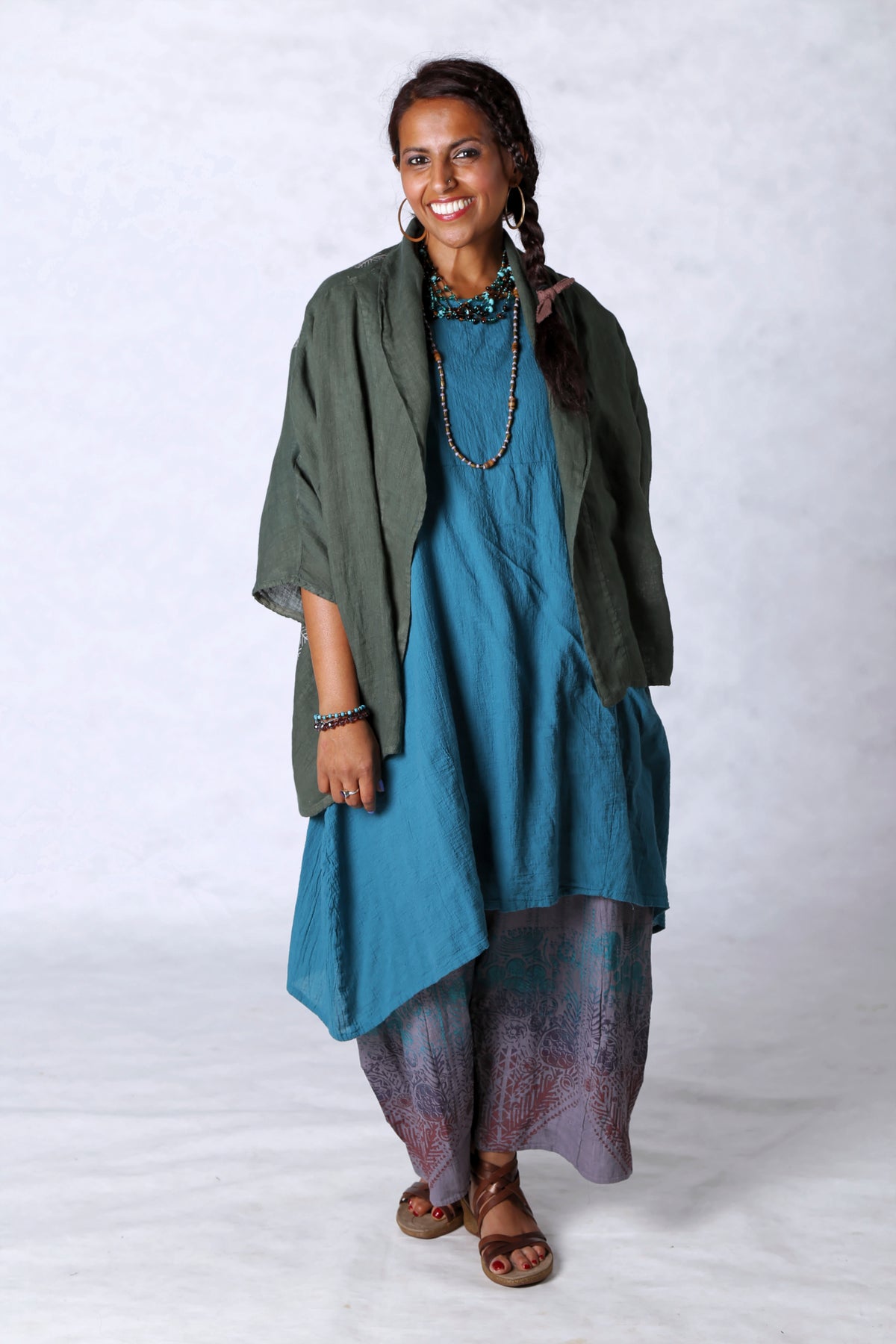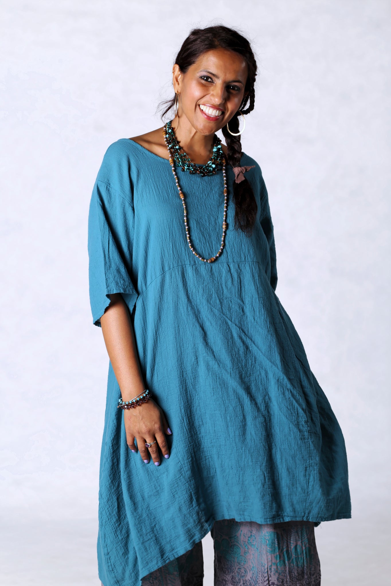 Lightest weight pure cotton gauze in a light & airy open weavelets you look great and beat the heat. This piece packs easily and weighs next to nothing- great for traveling. Featured in our flattering Urchin shape, you can wear this dress in many ways- alone or over # 3136 organic leggings, #3239 tiered petaloons, or #3242 Cropped Gauze Pocket Pant. Shown here with the Elegant Linen Pant in Smoky Amethyst.