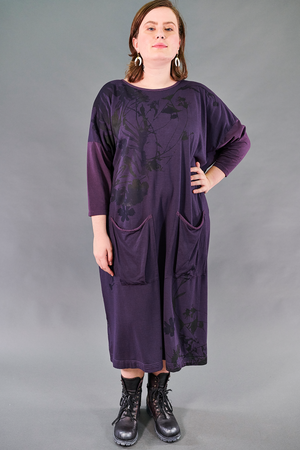 Effortless, timeless beauty. Nocturnal botanicals weave together elegantly atop a sumptuous purple canvas. These dresses have become a new favorite, and it is easy to see why!
