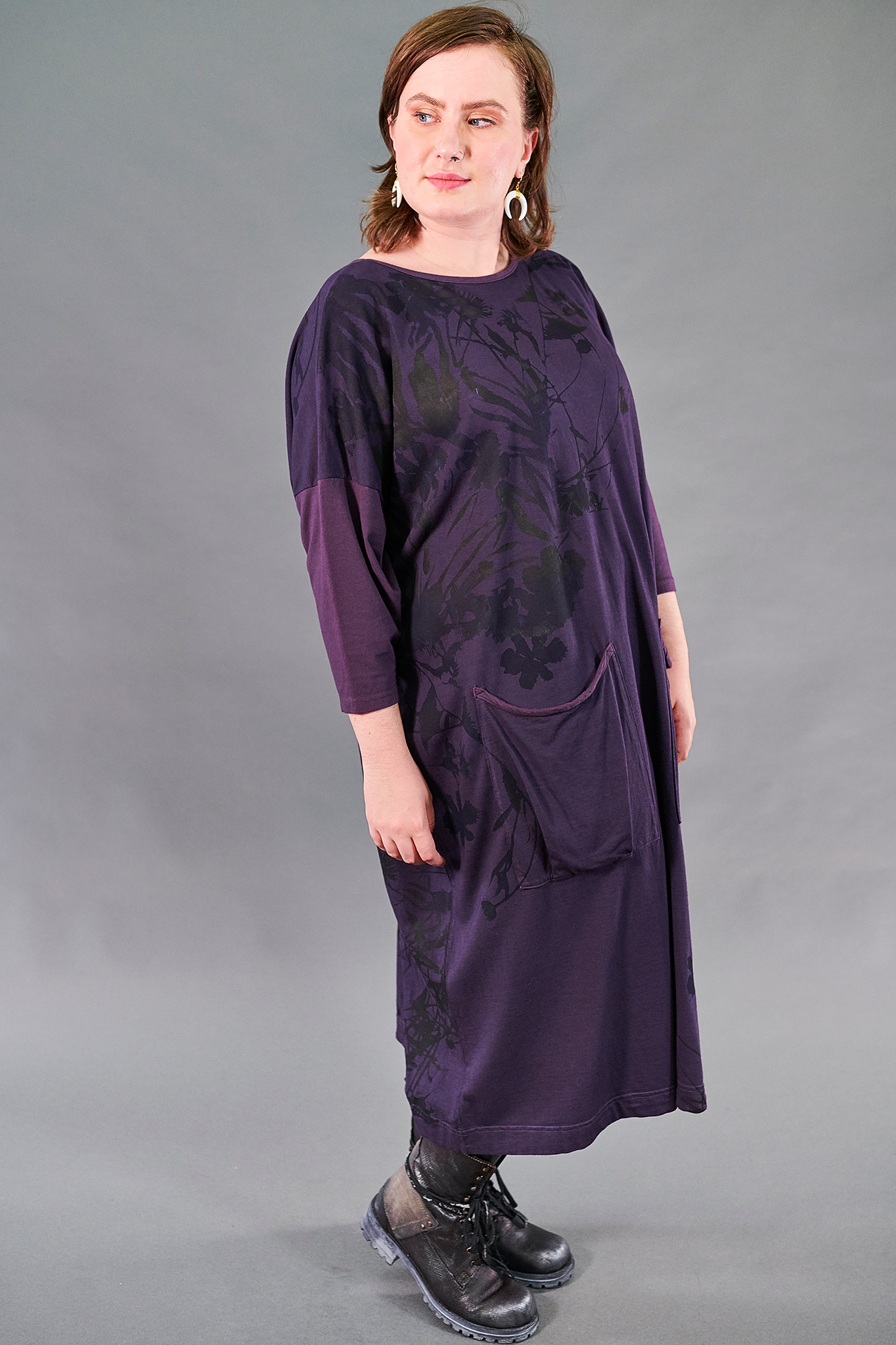 Bamboo/Cotton fabric is substantial, with just the right amount of flow & stretch, and gives all of the softness of bamboo with none of the cling. Two BIG patch pockets on the front add style & practicality. The body is cut generously and flatters many body types. This is truly a piece you will reach for again & again. It’s as easy to wear on a day out on the town as it is to dress up for your next formal event. We only made a few & they’re bound to sell quickly… don’t miss out on this favorite style in an exquisite new shade.
