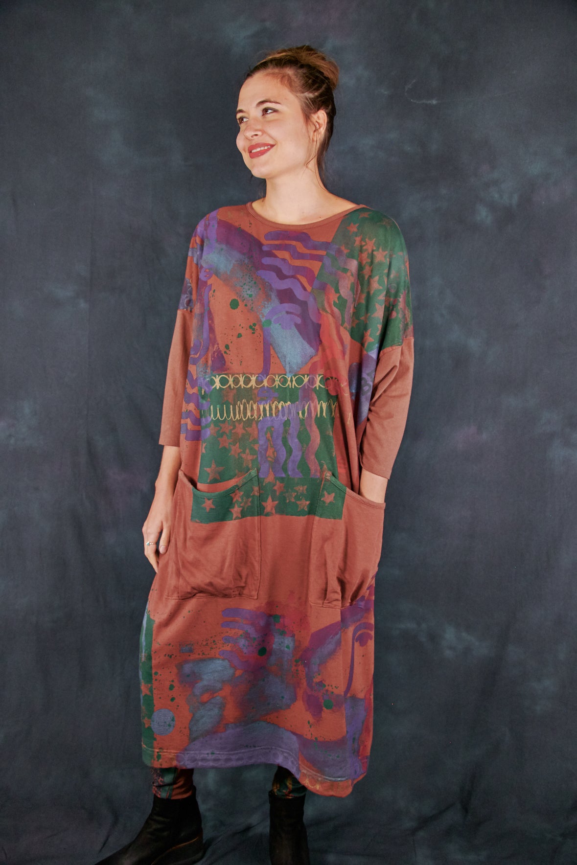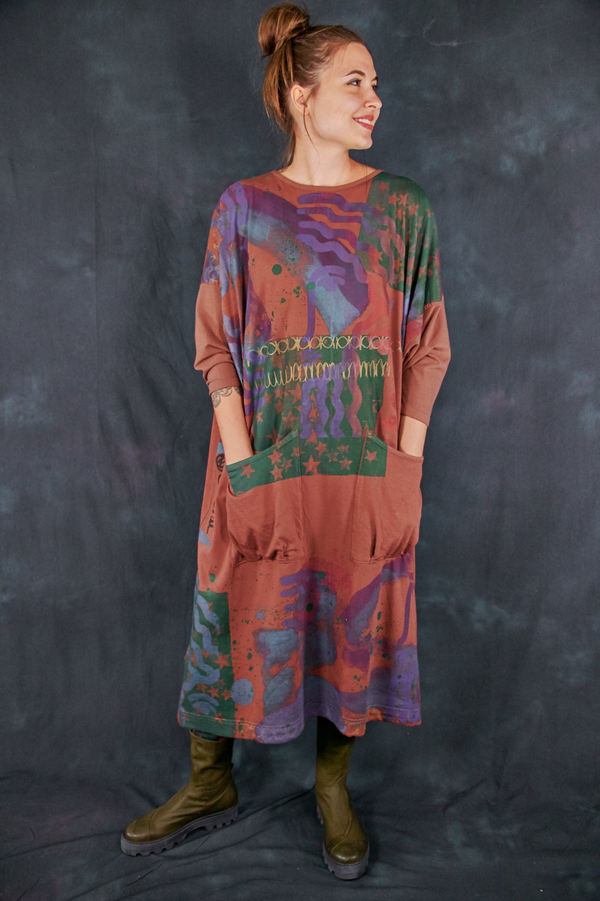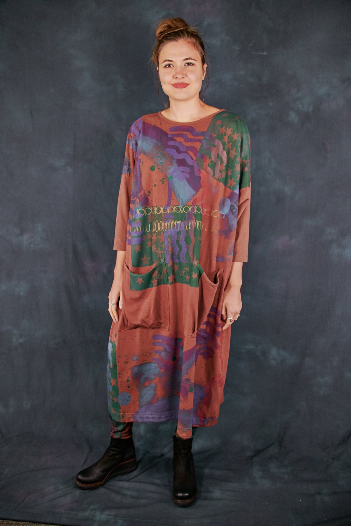 These dresses have become a new favorite, and it is easy to see why! Their elegance and beauty is unparalleled. We printed this one on the front with an incredible dreamscape of poetic prints & colors.