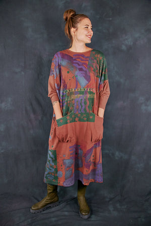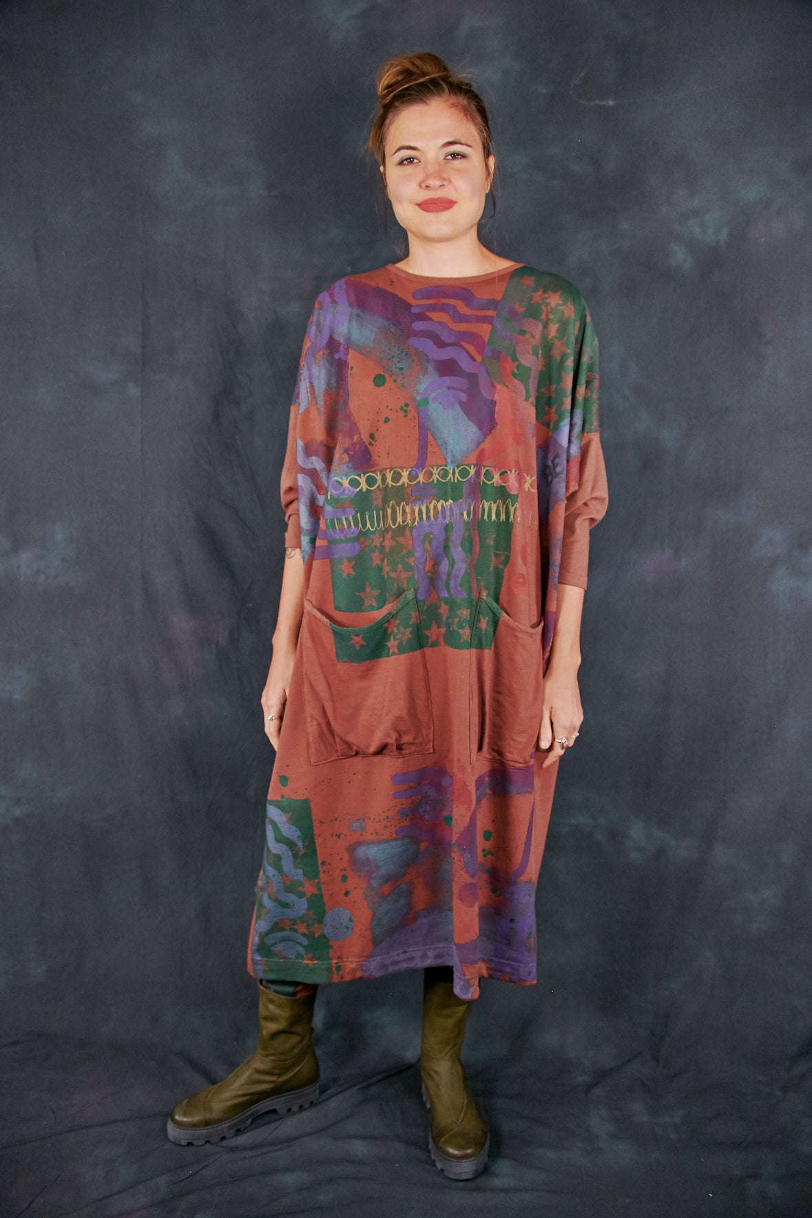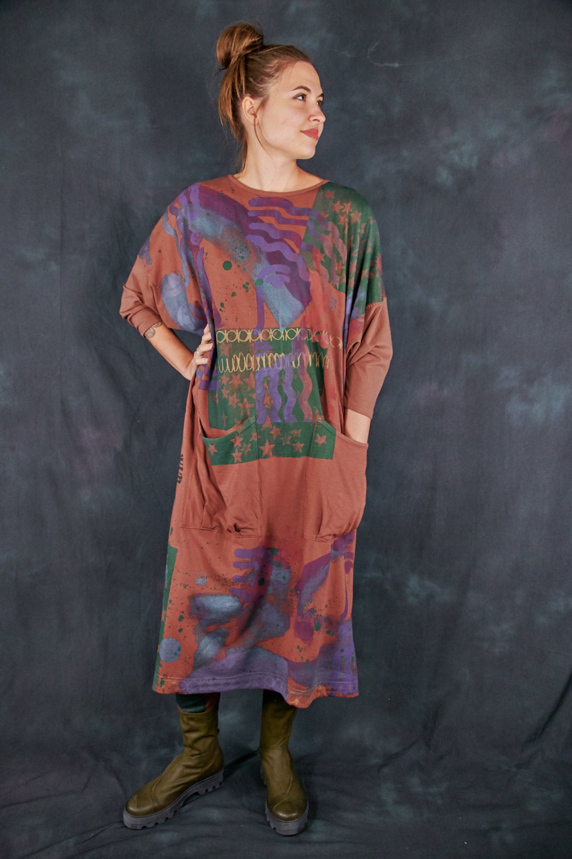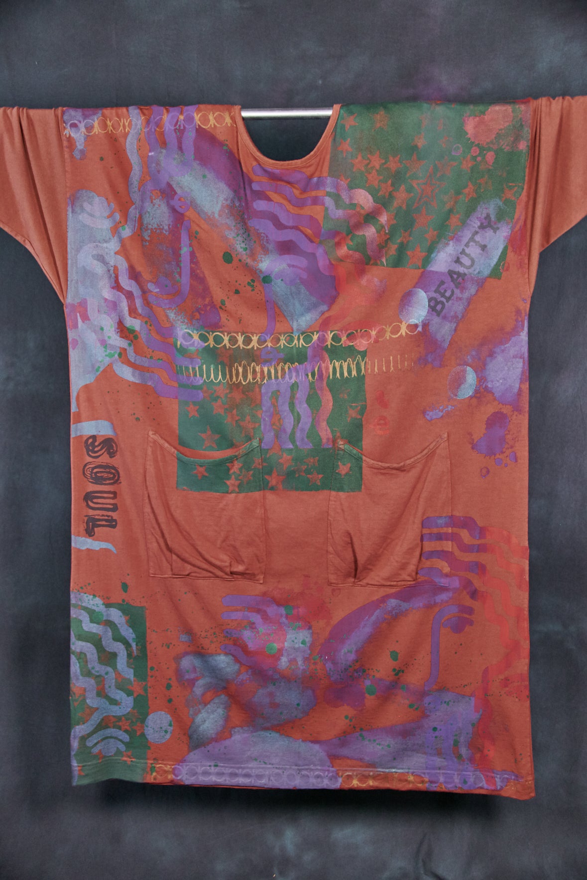 These dresses have become a new favorite, and it is easy to see why! Their elegance and beauty is unparalleled. We printed this one on the front with an incredible dreamscape of poetic prints & colors.