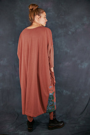 Bamboo/Cotton fabric is substantial, with just the right amount of flow & stretch, and gives all of the softness of bamboo with none of the cling. Two BIG patch pockets on the front add style & practicality. The body is cut generously and flatters many body types.