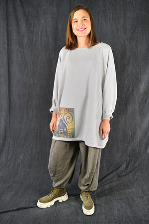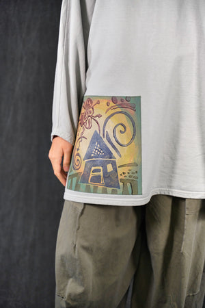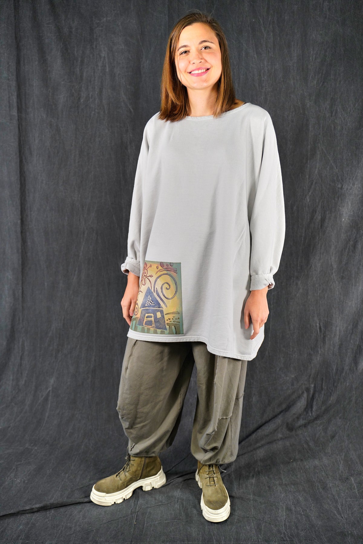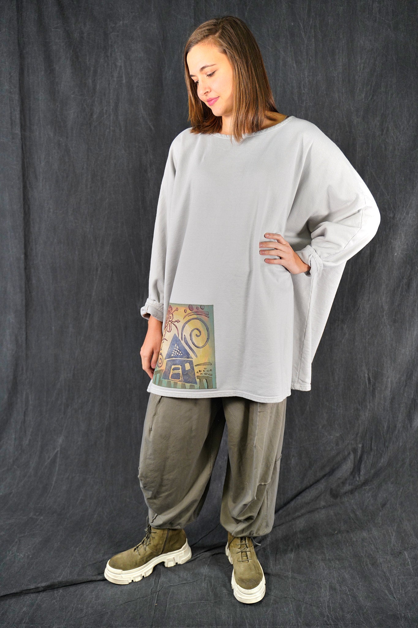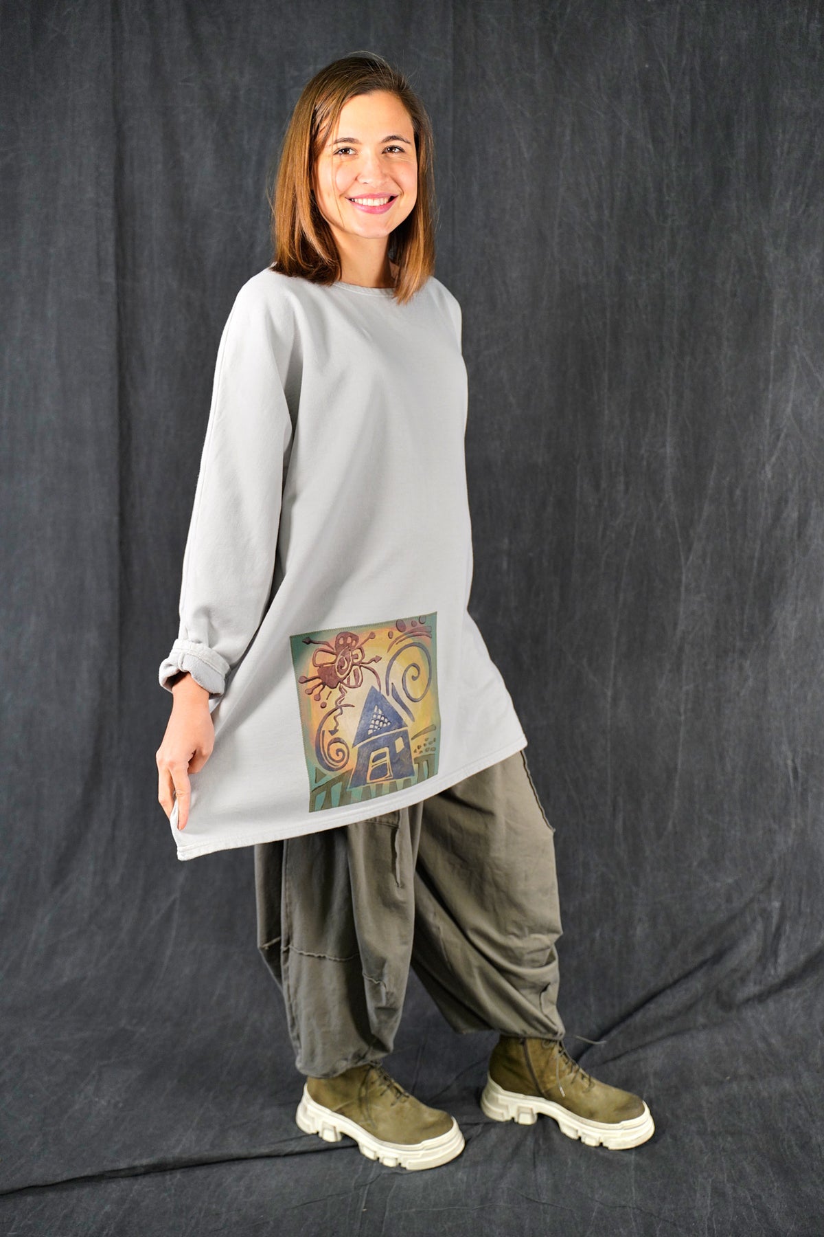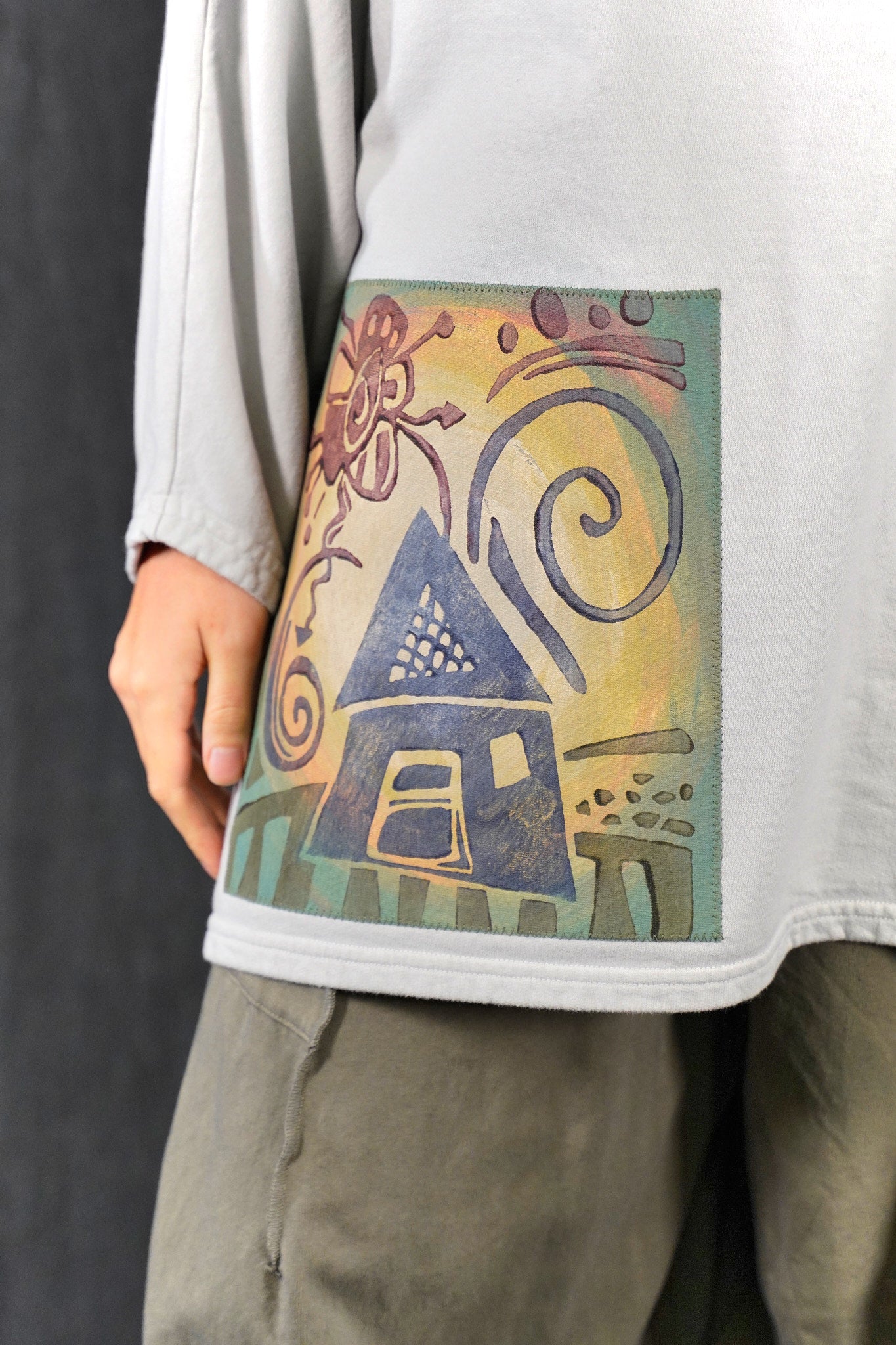 Vintage BF block printed patch- HOUSE ...Crafted for a relaxed fit. This is a cozy luxuriously thick organic cotton that will keep you warm in the cooler weather. This one-size style is cut generously and flows beautifully on many body types. We love it for its elegant simplicity.