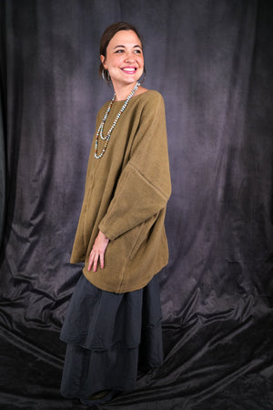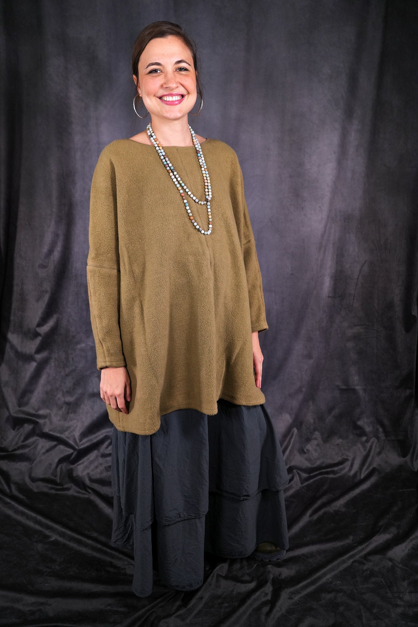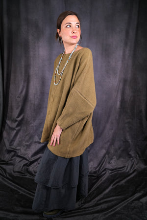 Cozy modern sweatshirt in super heavyweight sherpa for the cooler weather. 100% Organic Cotton. A favorite Blue Fish style. The style is generous and flattering with shaping on the body. A piece you will reach for again and again. Made in the USA. Wash gentle and dry low or hang to dry.