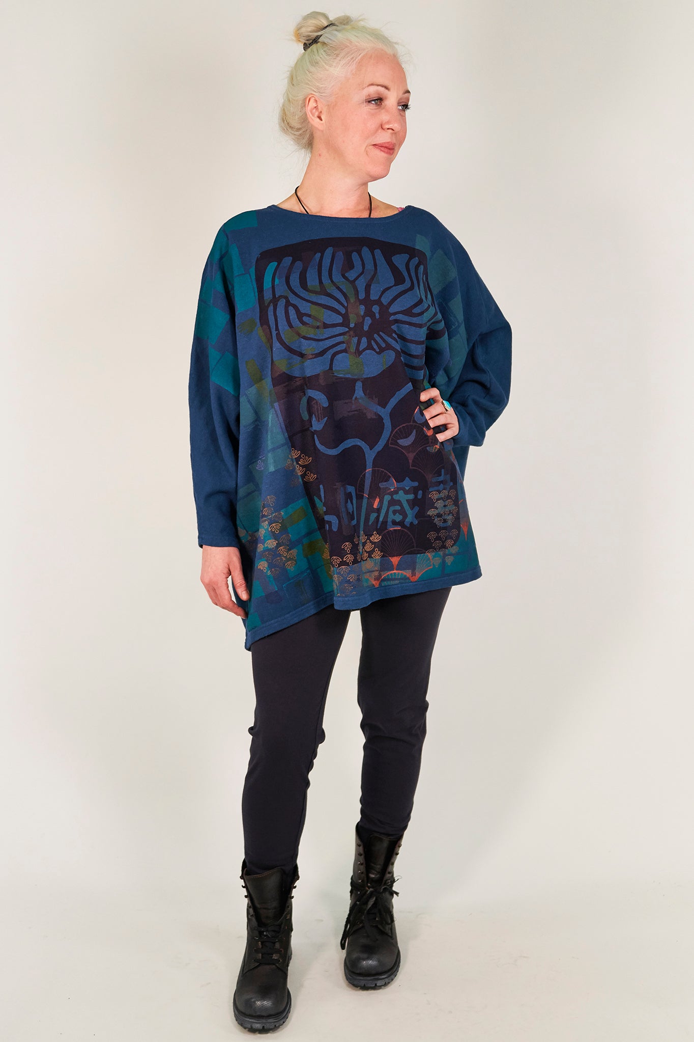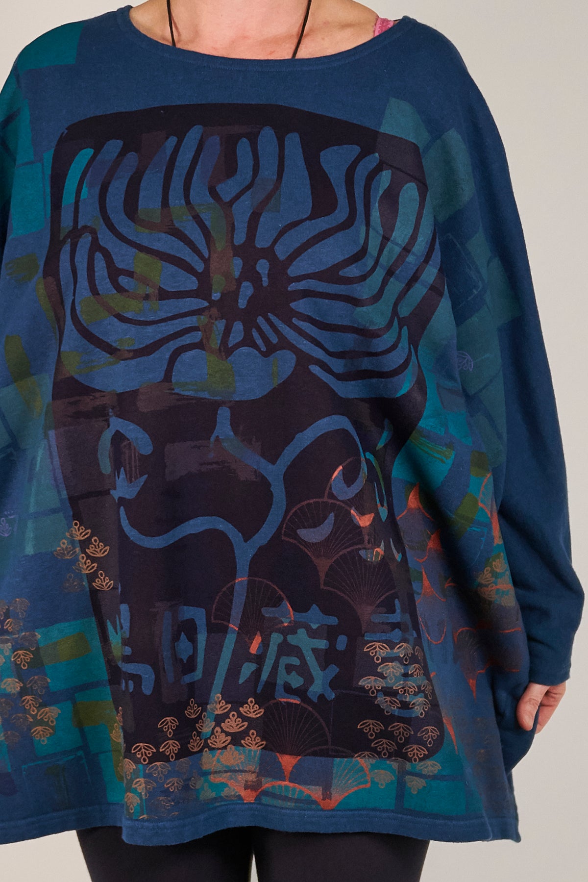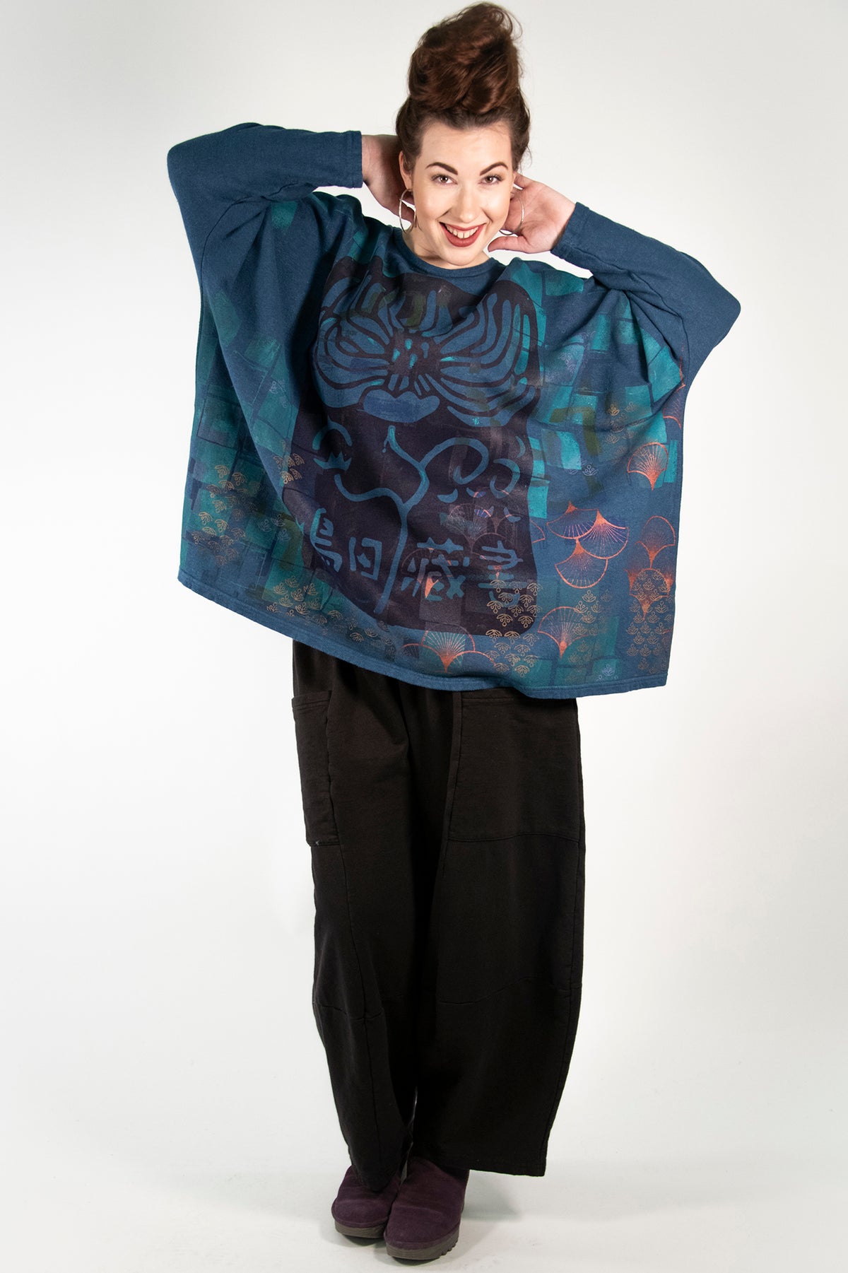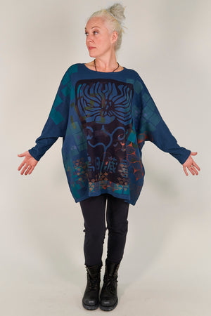 Our Mariposa style is everyone's favorite... so we gave it a makeover for cooler weather! This cozy style is cut generously to flatter every body type and will keep you snuggly warm when it's chilly out. Layers & layers of hand-printed artwork from Blue Fish studio artists make this something truly beautiful and unique you'll reach for on every cold day.