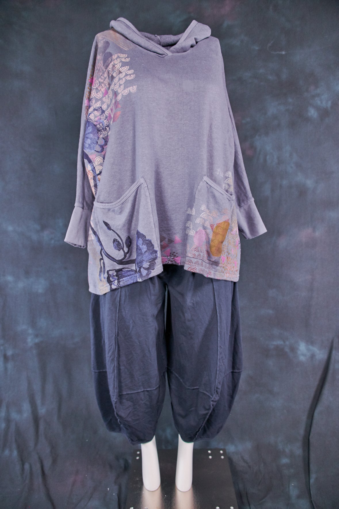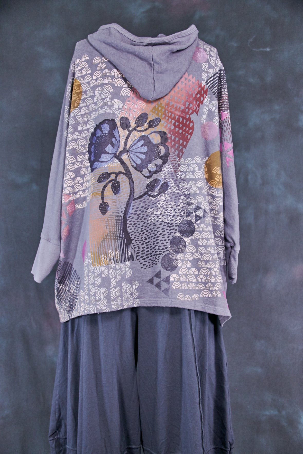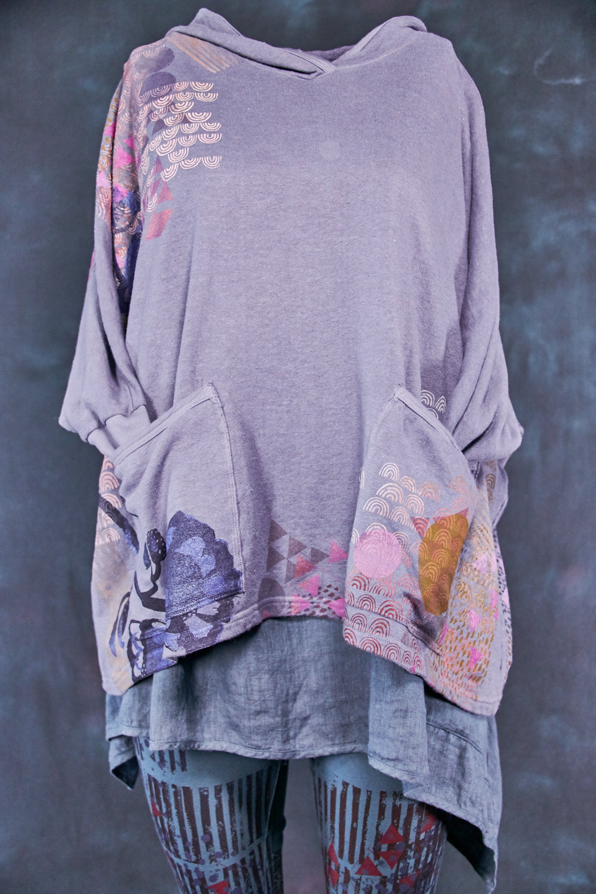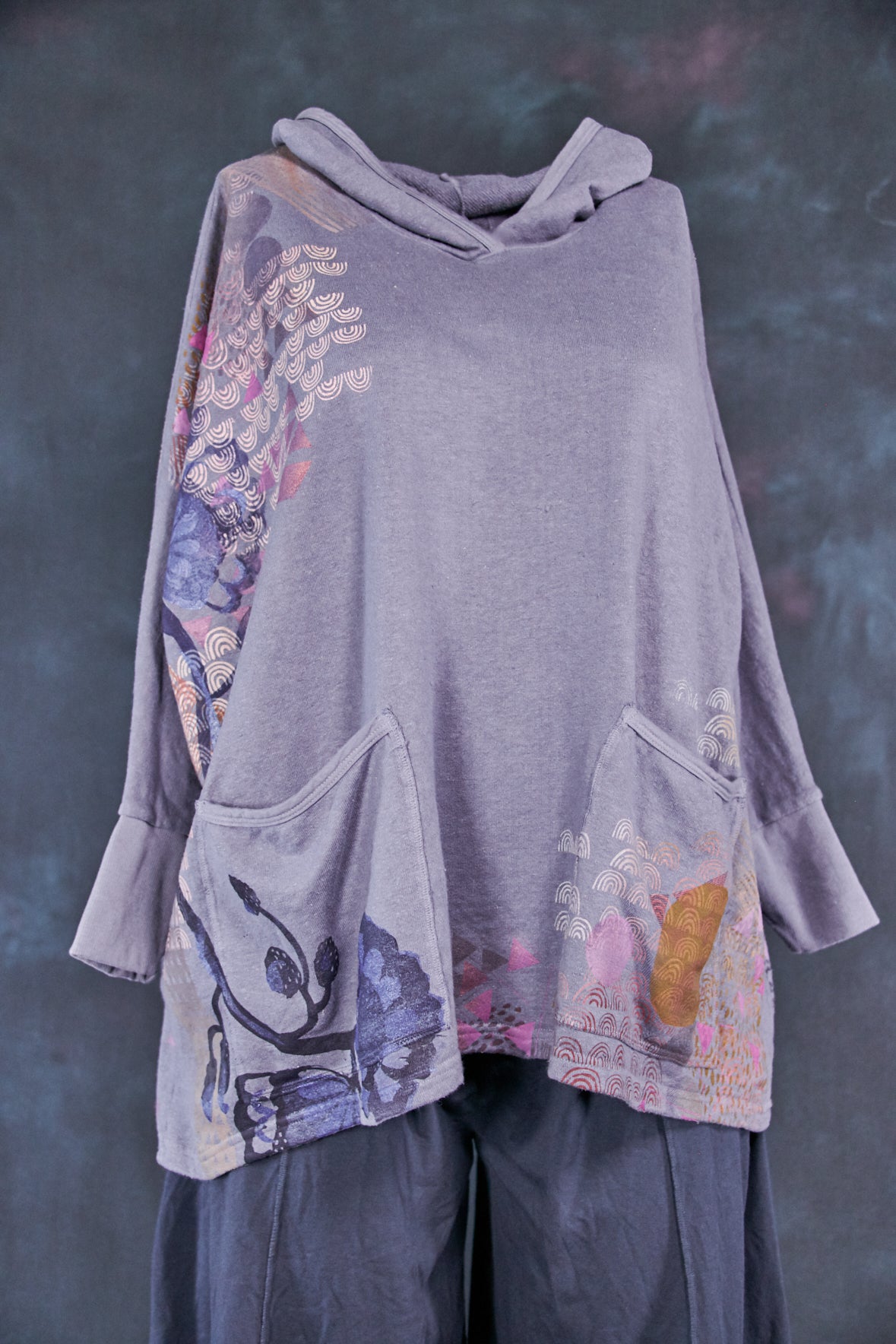 Art Sweatshirt. Square cut with a hood and pockets. Loose-fitting body. Fitted rib accent at the wrist so you can push up the sleeves. Two large front patch pockets to keep your hands warm.