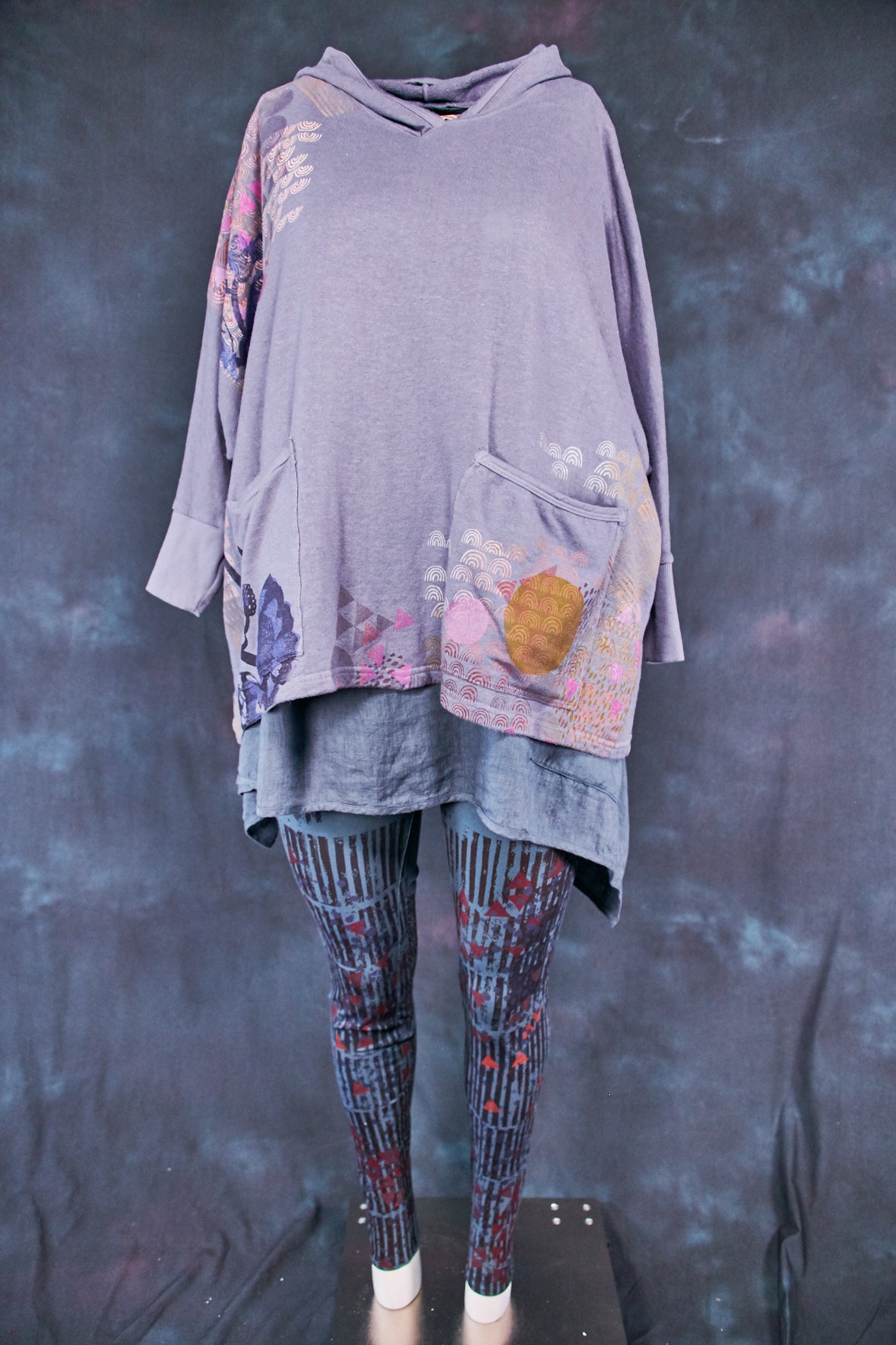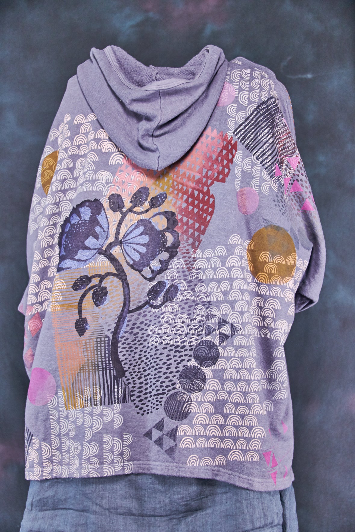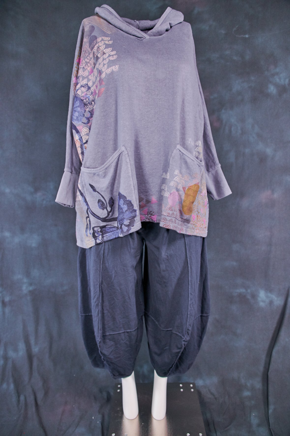Art Sweatshirt. Square cut with a hood and pockets. Loose-fitting body. Fitted rib accent at the wrist so you can push up the sleeves. Two large front patch pockets to keep your hands warm.