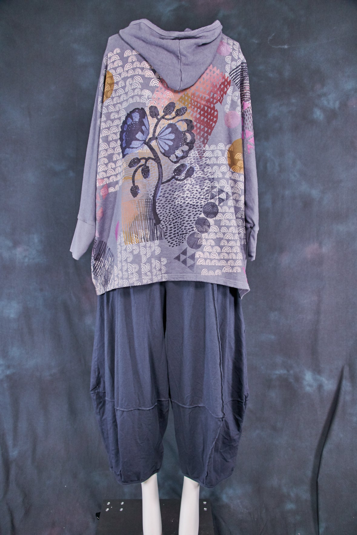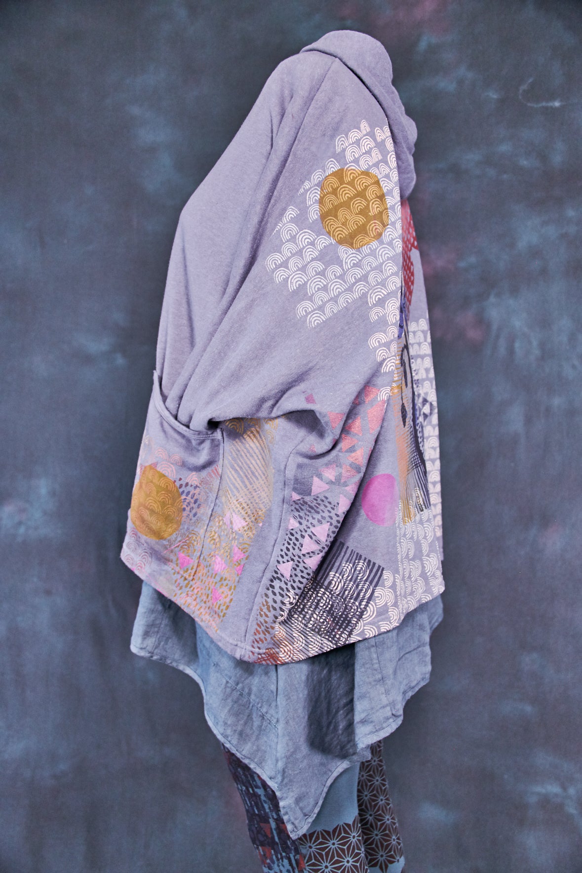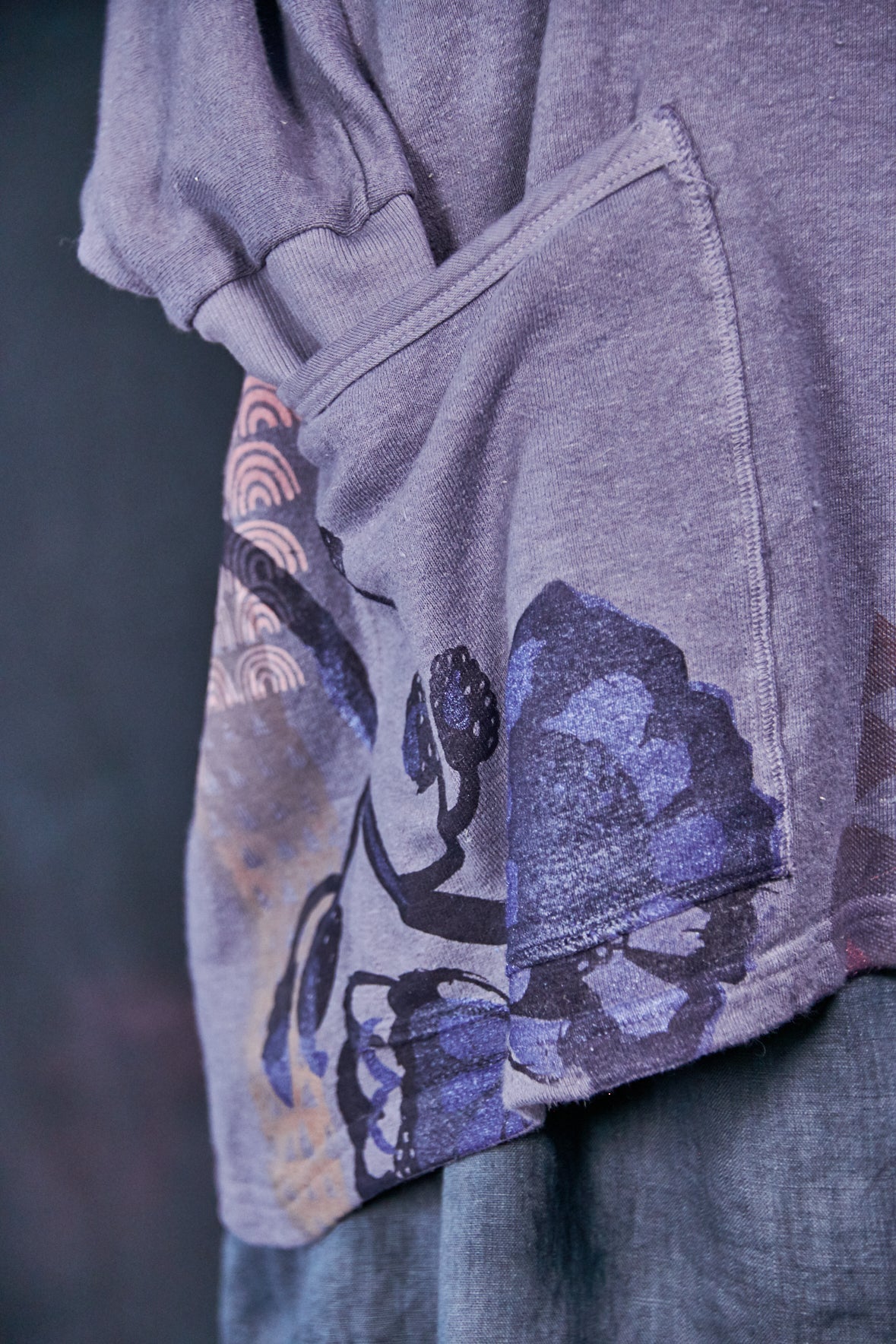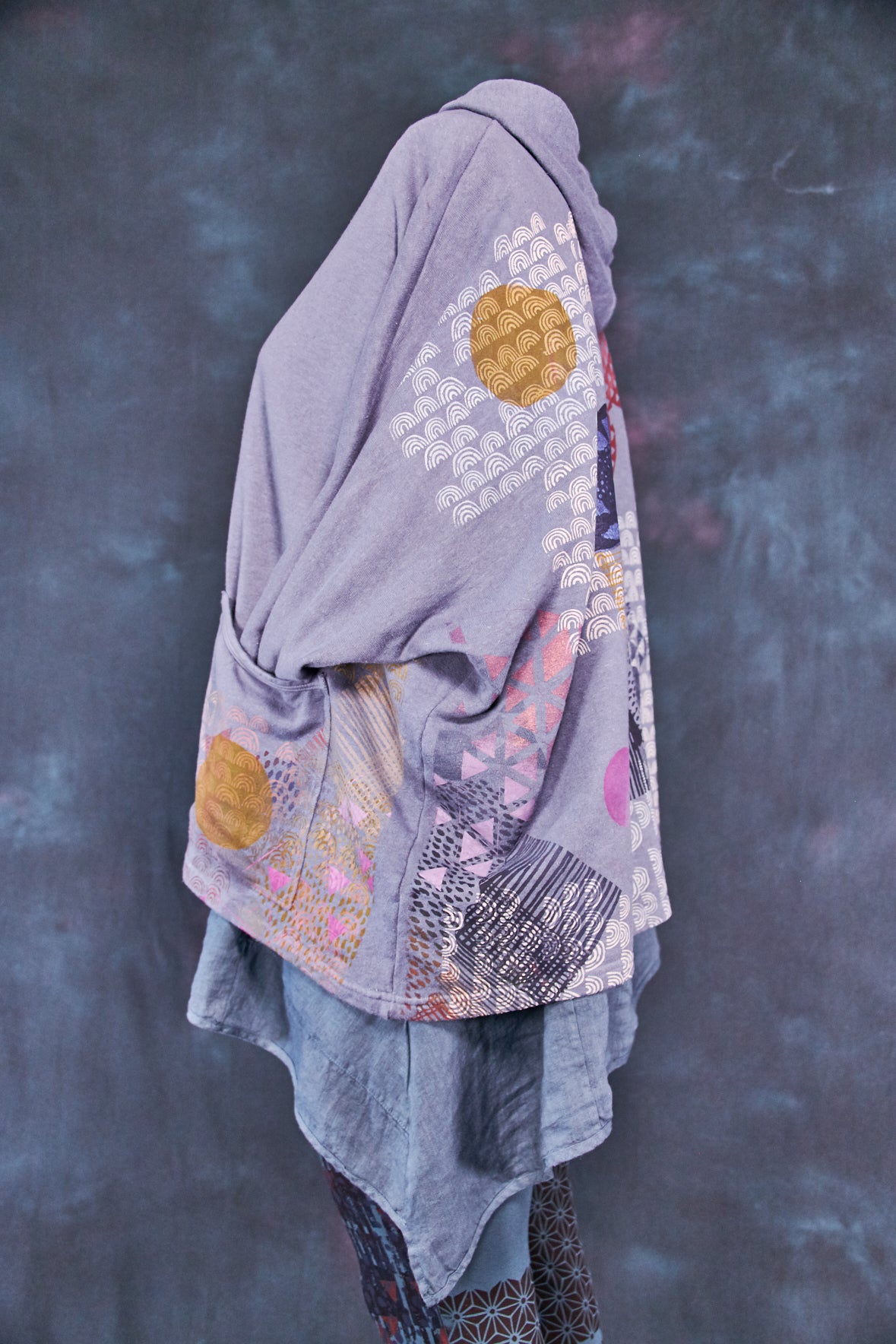 Art Sweatshirt. Square cut with a hood and pockets. Loose-fitting body. Fitted rib accent at the wrist so you can push up the sleeves. Two large front patch pockets to keep your hands warm.