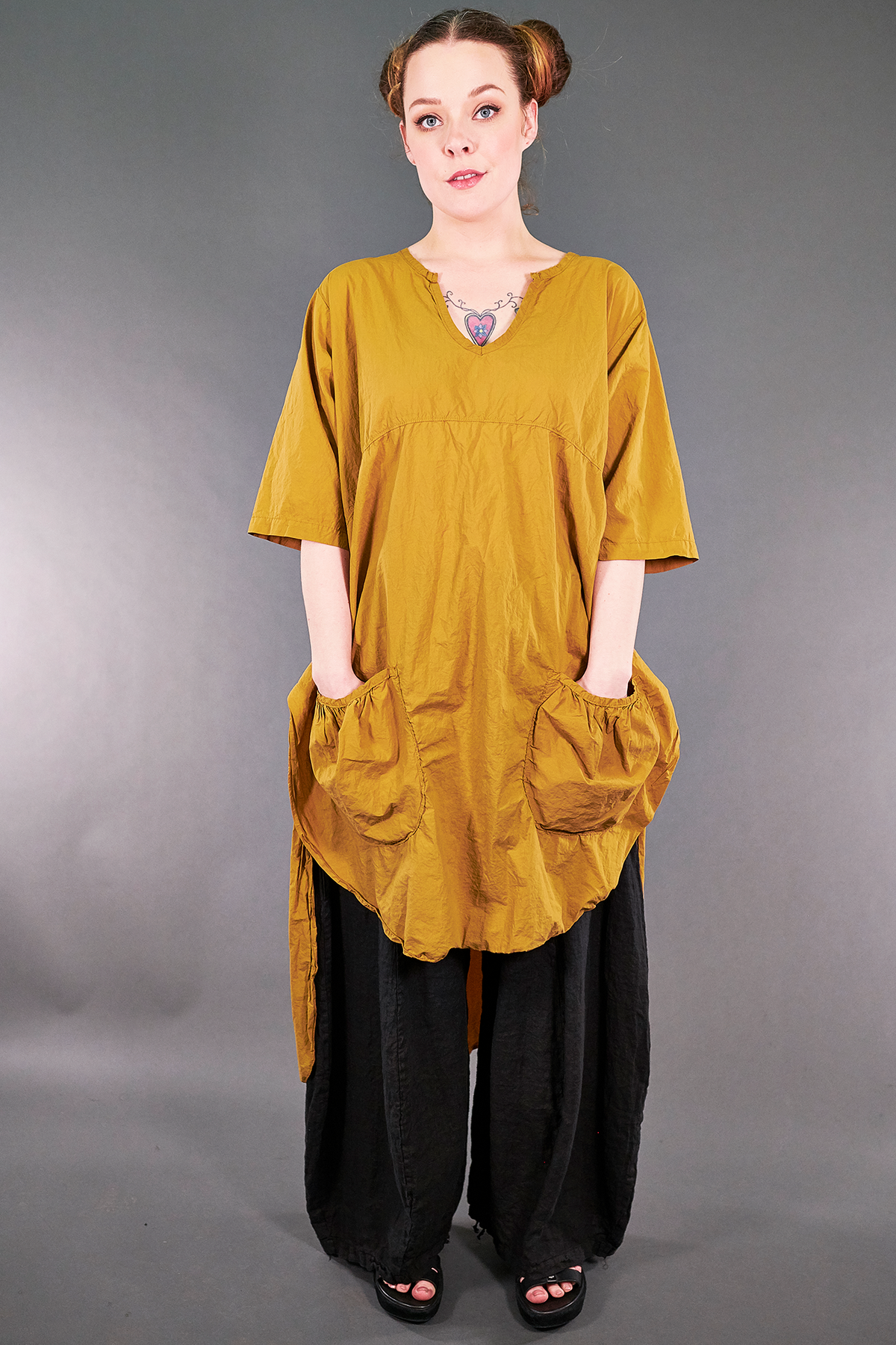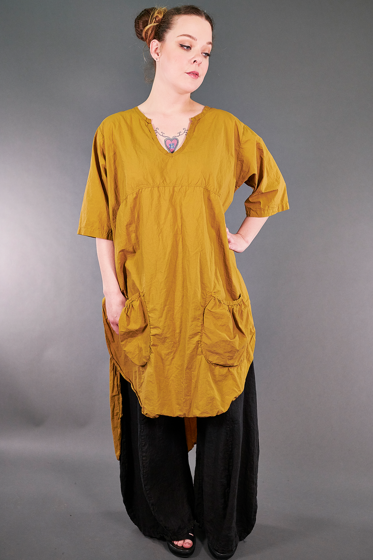 This one has pockets and curved seams. High-low length is perfect with leggings or pants. Guaranteed to garner many compliments!