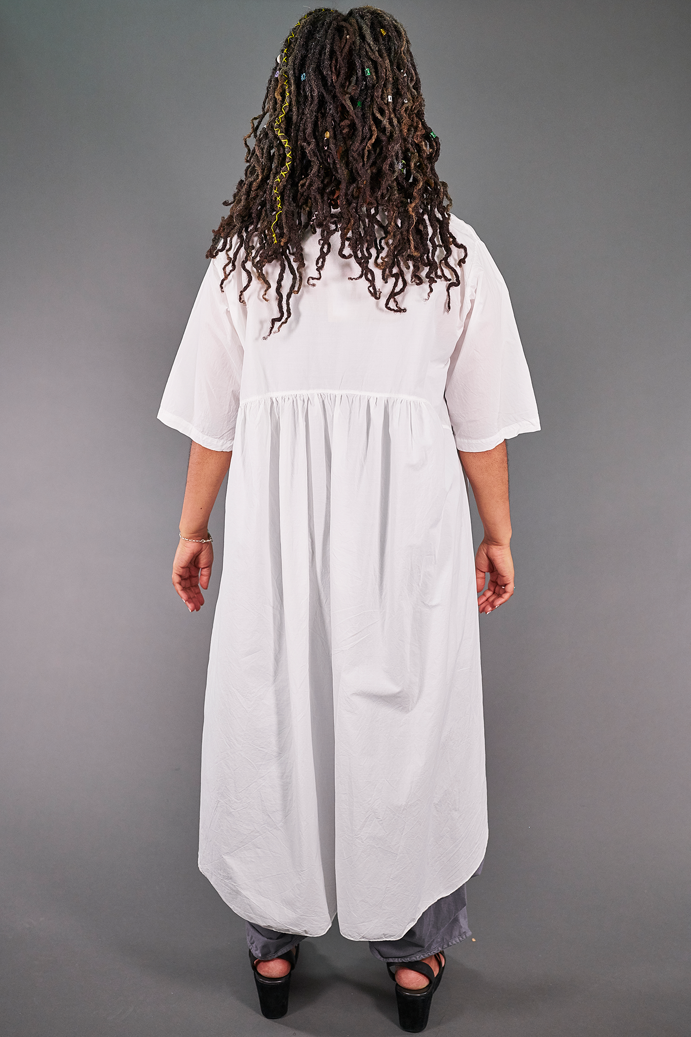 A modern take on our classic Venetian tunic. Breezy, airy, & oh so comfortable--and it flows behind you so elegantly as you walk! Please take a look at all the pictures here to see how it looks from all angles... you'll never find anything like it anywhere else.