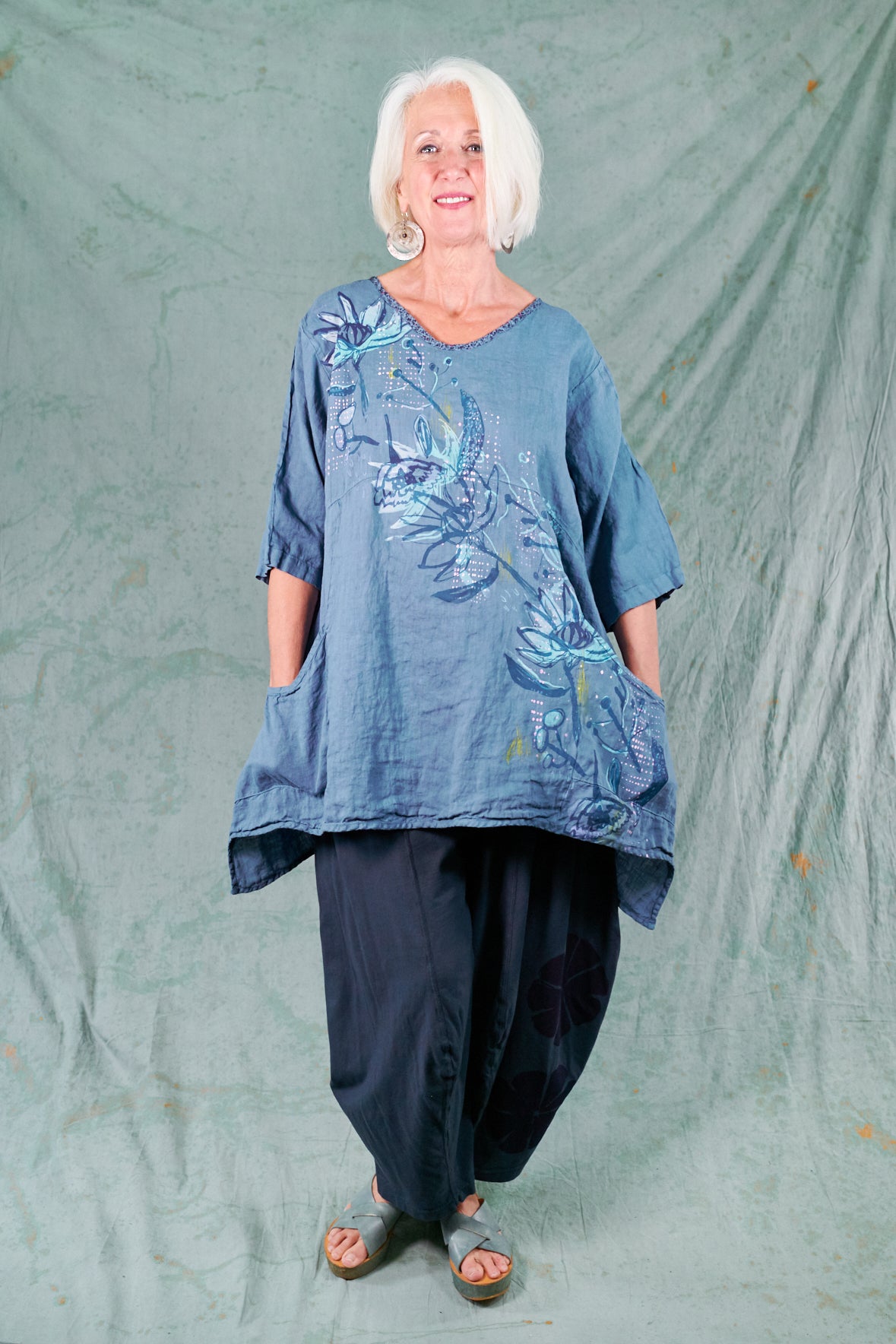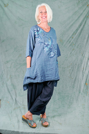 Your favorite transition piece ever... we mean it! Wear this practical linen tunic now through the summer & later during the colder months ahead. This is a modern, angular take on our classic Zen tunic, shorter in the front & longer in the back to create a figure flattering effect. The rich color is perfect for every season.