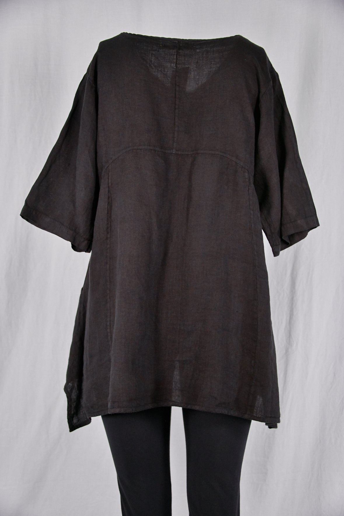 Wear this practical linen tunic all year long. This is a modern, angular take on our classic Zen tunic, shorter in the front & longer in the back to create an easy comfortable look. The rich color is perfect for every season.