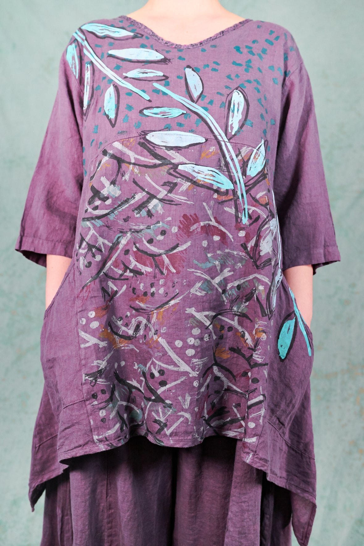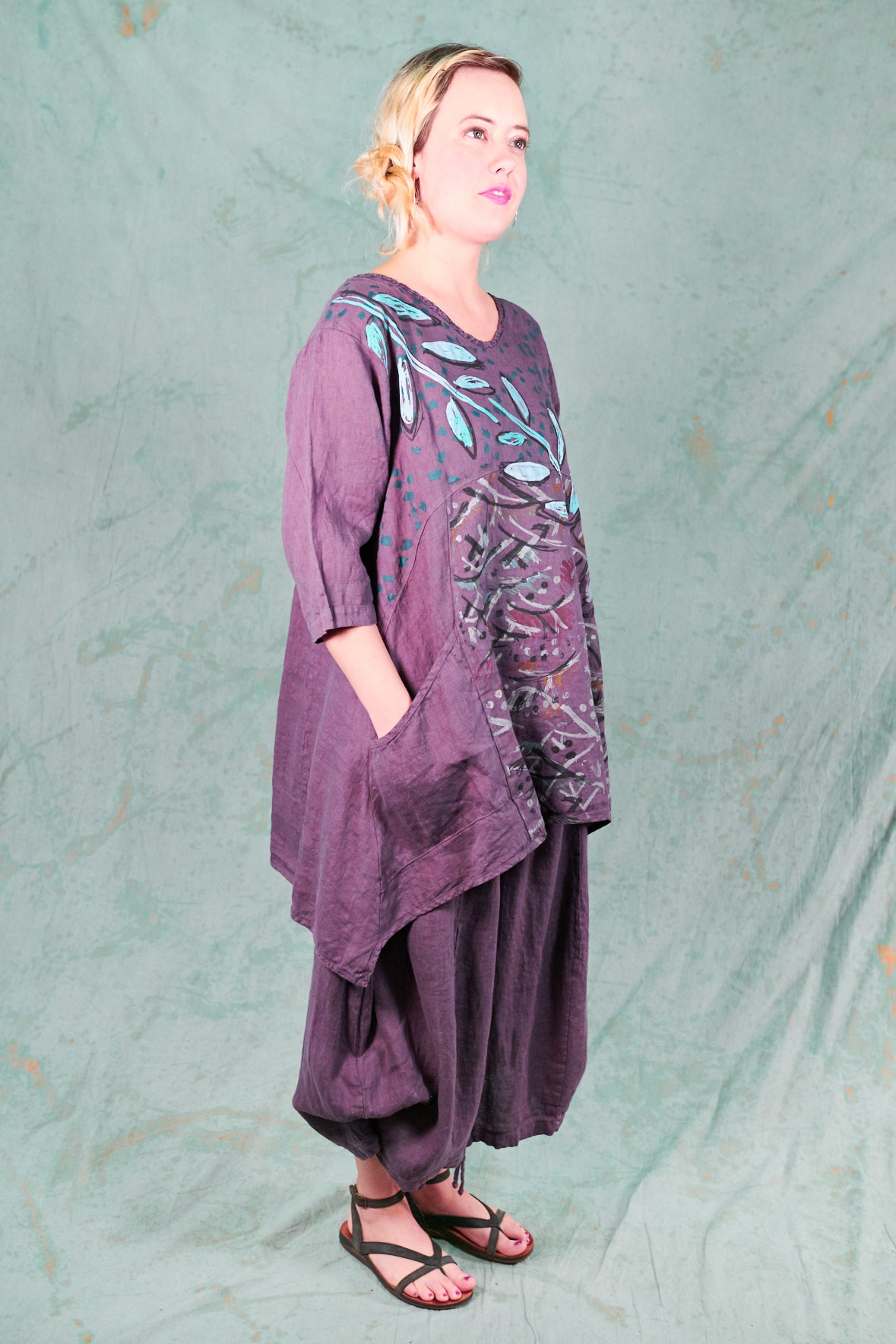 Wear this practical linen tunic now through the summer. This is a modern, angular take on our classic Zen tunic, shorter in the front & longer in the back to create an easy comfortable look. The rich color is perfect for every season.
