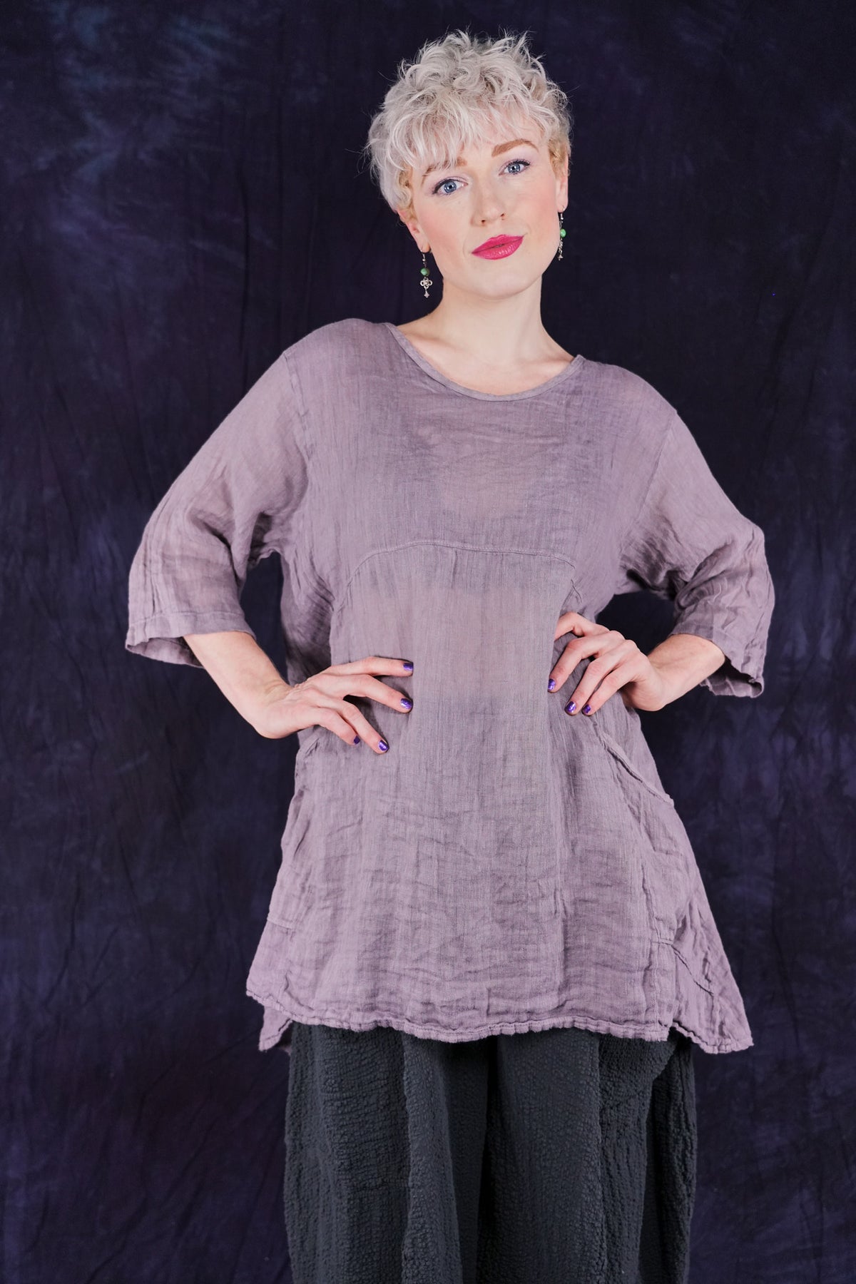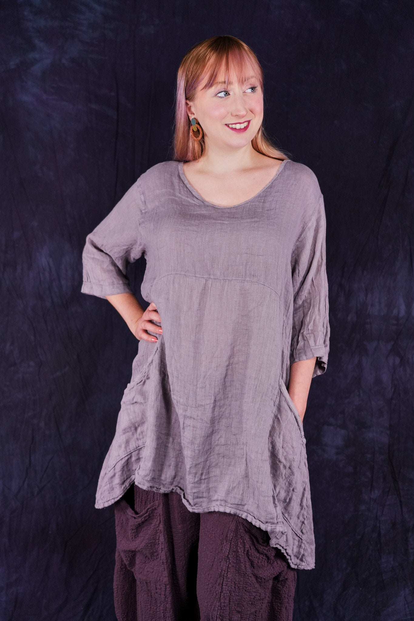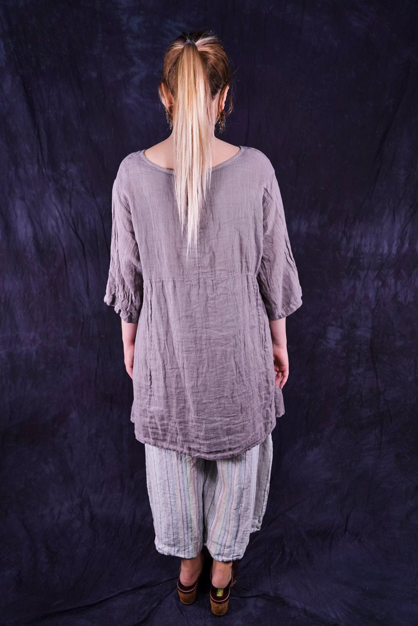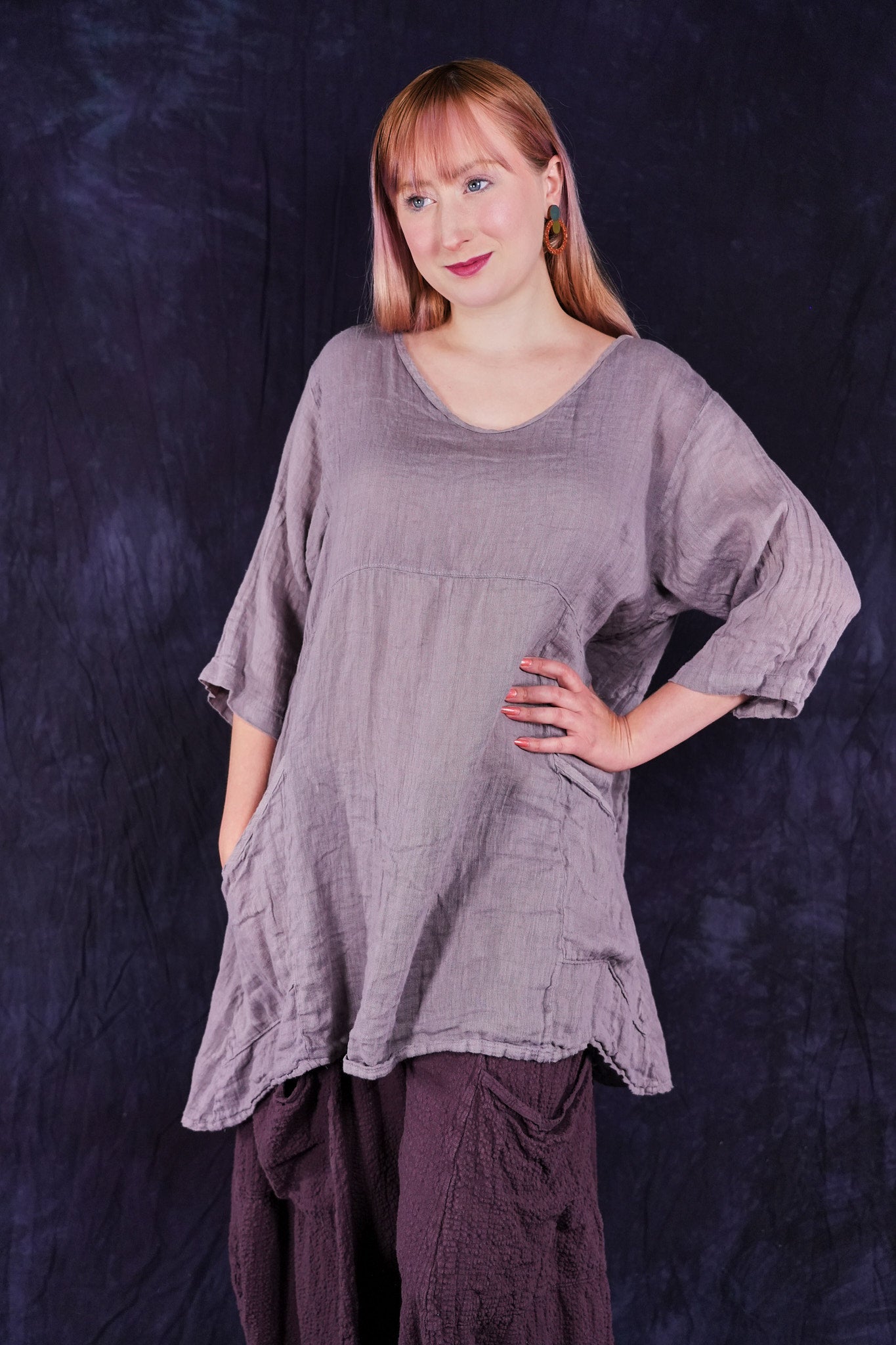 Beautiful light weight linen will keep you comfortable and serene all summer. The sleeve length is extended past the elbow, and the fabric weight is light and cool. The Zen Tunic is one of our favorite shapes featuring two useful pockets. Wear alone or layer with a #6139 Hado shift or a #1145 Cafe tee or ...over #3350 Double Petal pants or a #4184 Airy Skirt. This will quickly become your go to piece of the season.