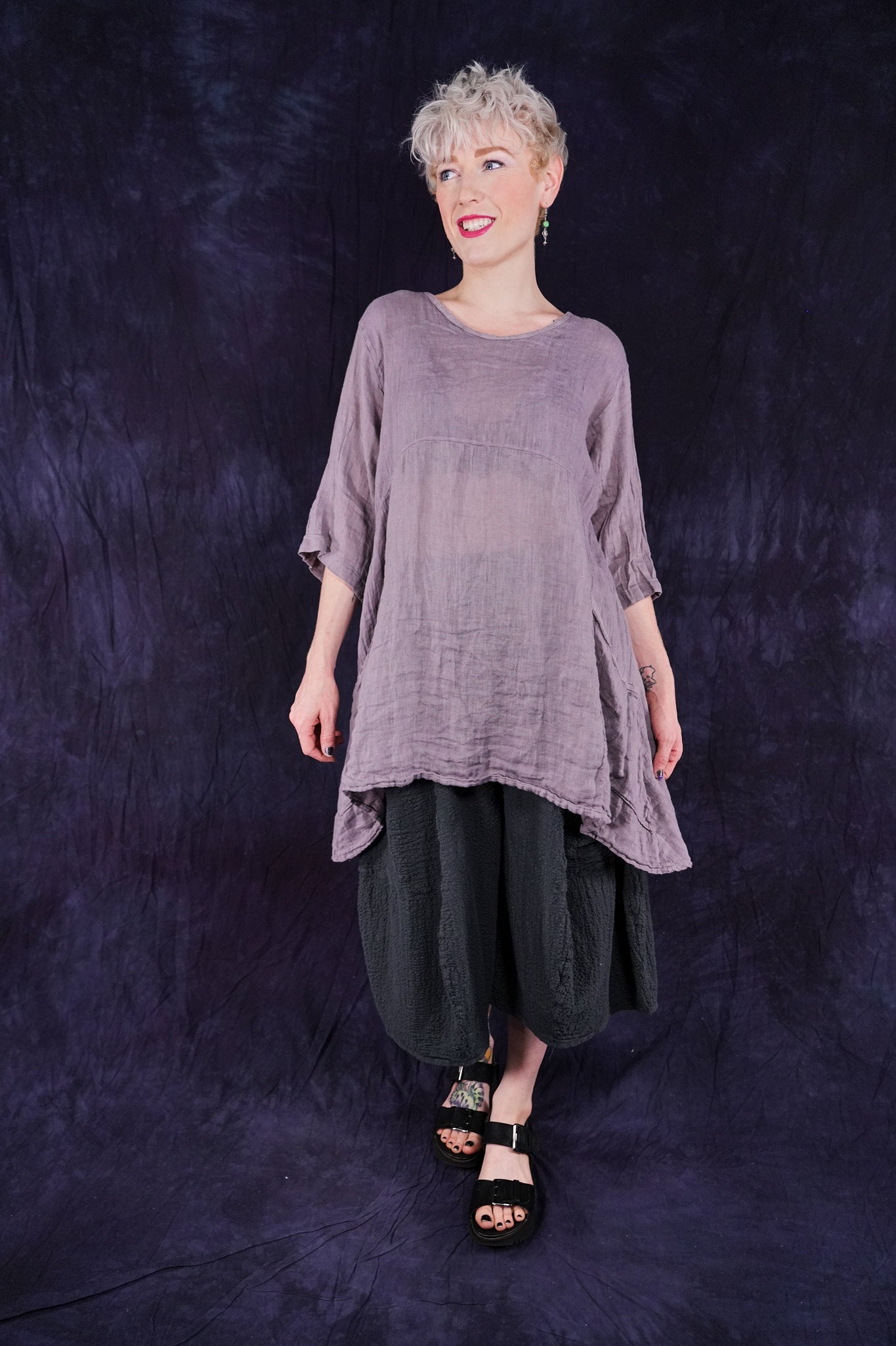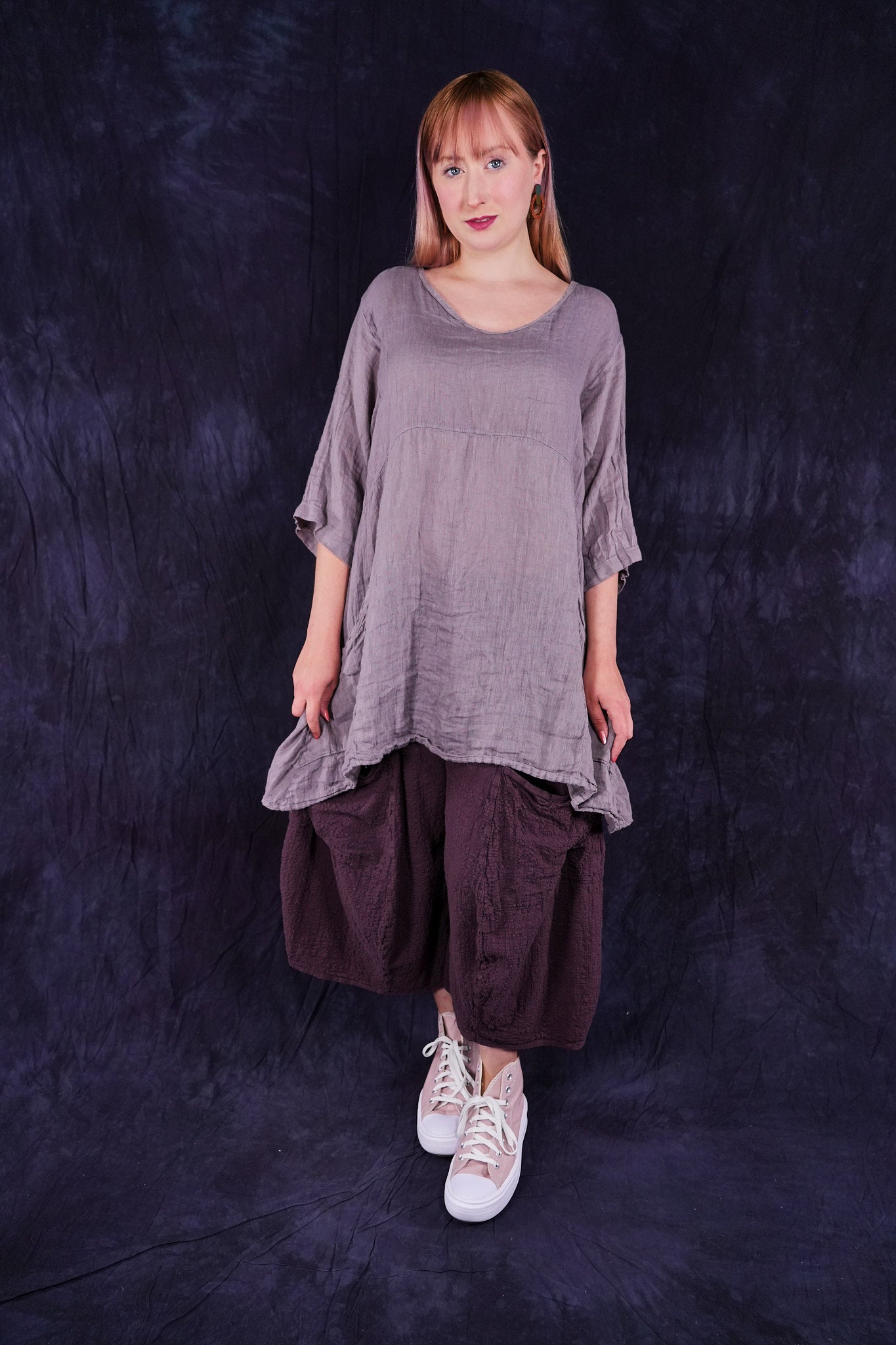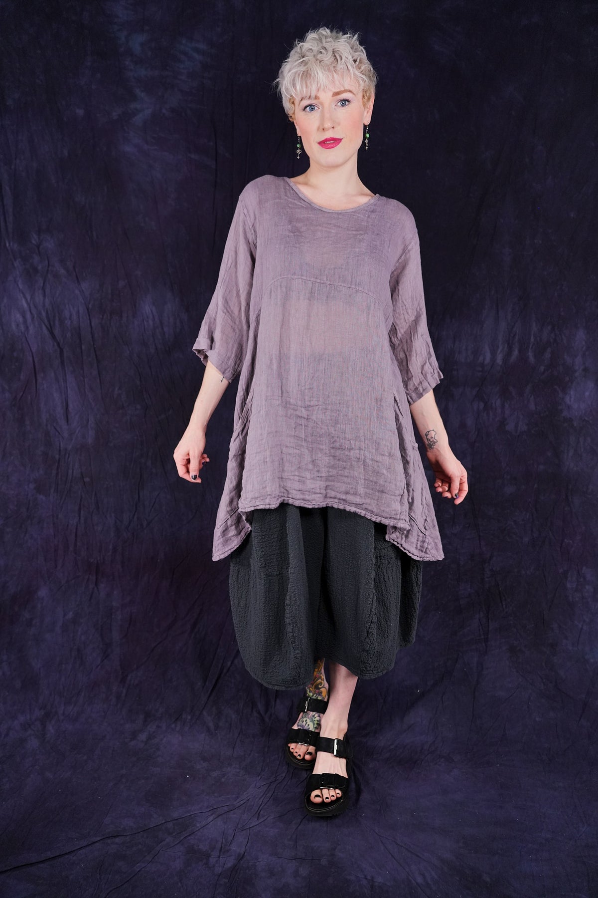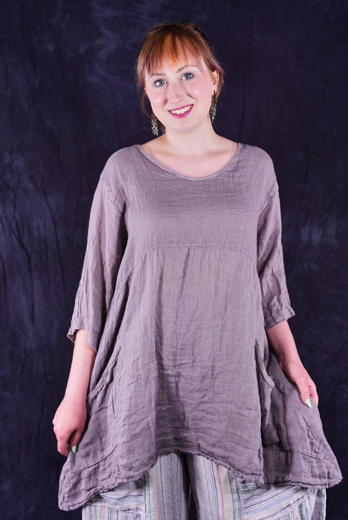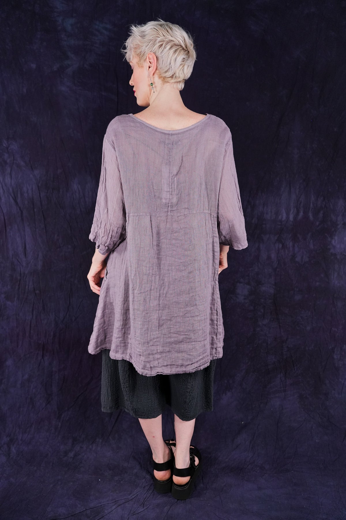 Beautiful light weight linen will keep you comfortable and serene all summer. The sleeve length is extended past the elbow, and the fabric weight is light and cool. The Zen Tunic is one of our favorite shapes featuring two useful pockets. Wear alone or layer with a #6139 Hado shift or a #1145 Cafe tee or ...over #3350 Double Petal pants or a #4184 Airy Skirt. This will quickly become your go to piece of the season.