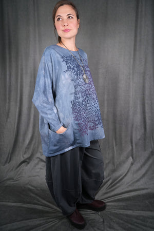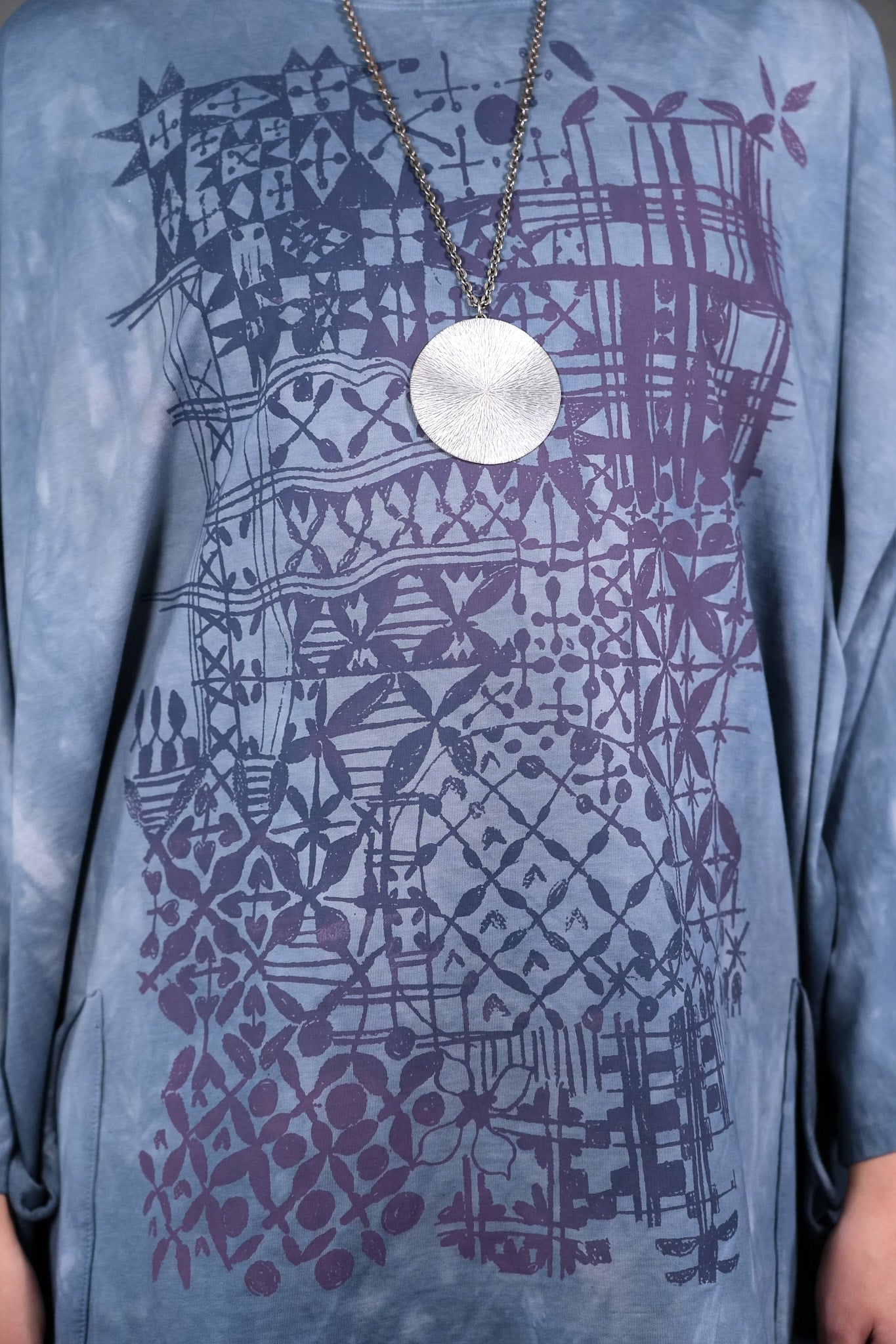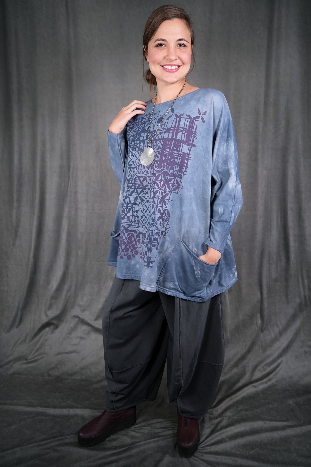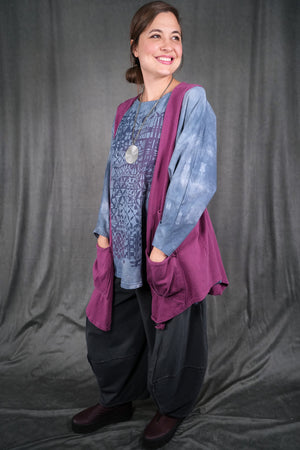 Made of organic cotton with just a bit of spandex stretch to give it shape. So, so versatile! Dress it up with a skirt or down with your favorite jeans... the possibilities are endless. Hand-dyed artwork gives a pop of unique design that is sure to turn heads.