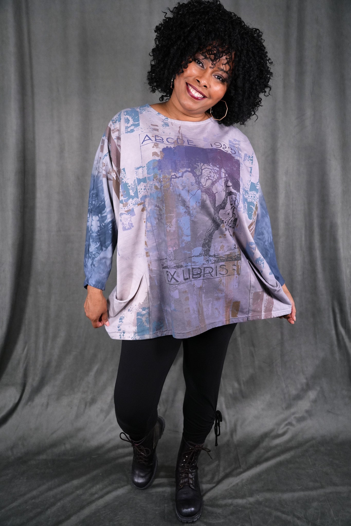 Made of organic cotton with just a bit of spandex stretch to give it shape. So, so versatile! Dress it up with a skirt or down with your favorite jeans... the possibilities are endless. Hand-dyed artwork gives a pop of unique design that is sure to turn heads.