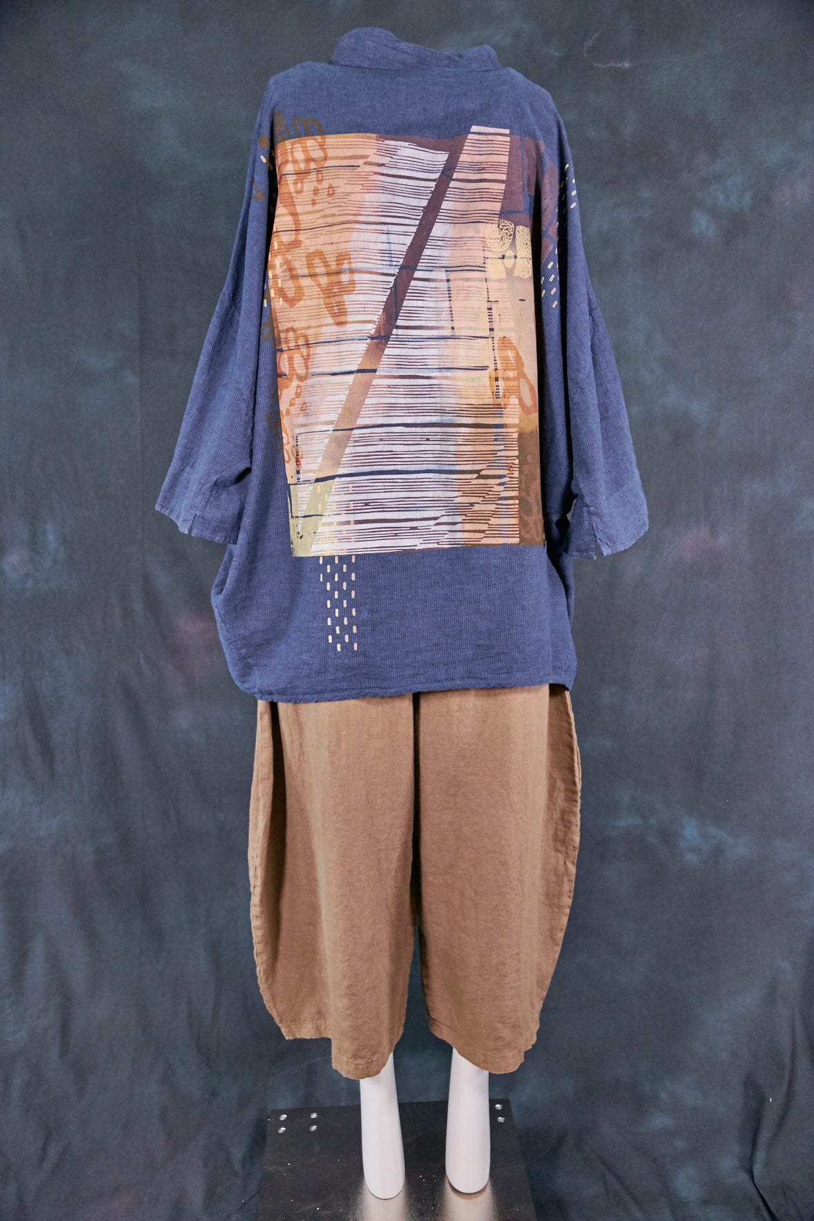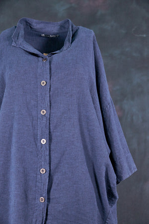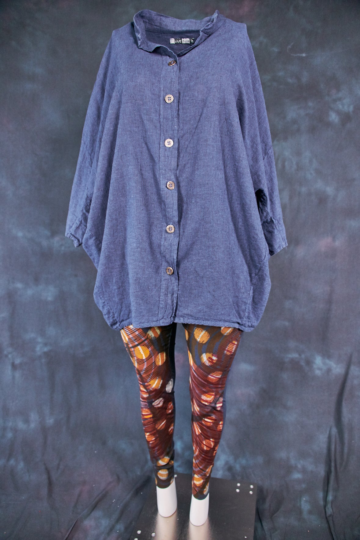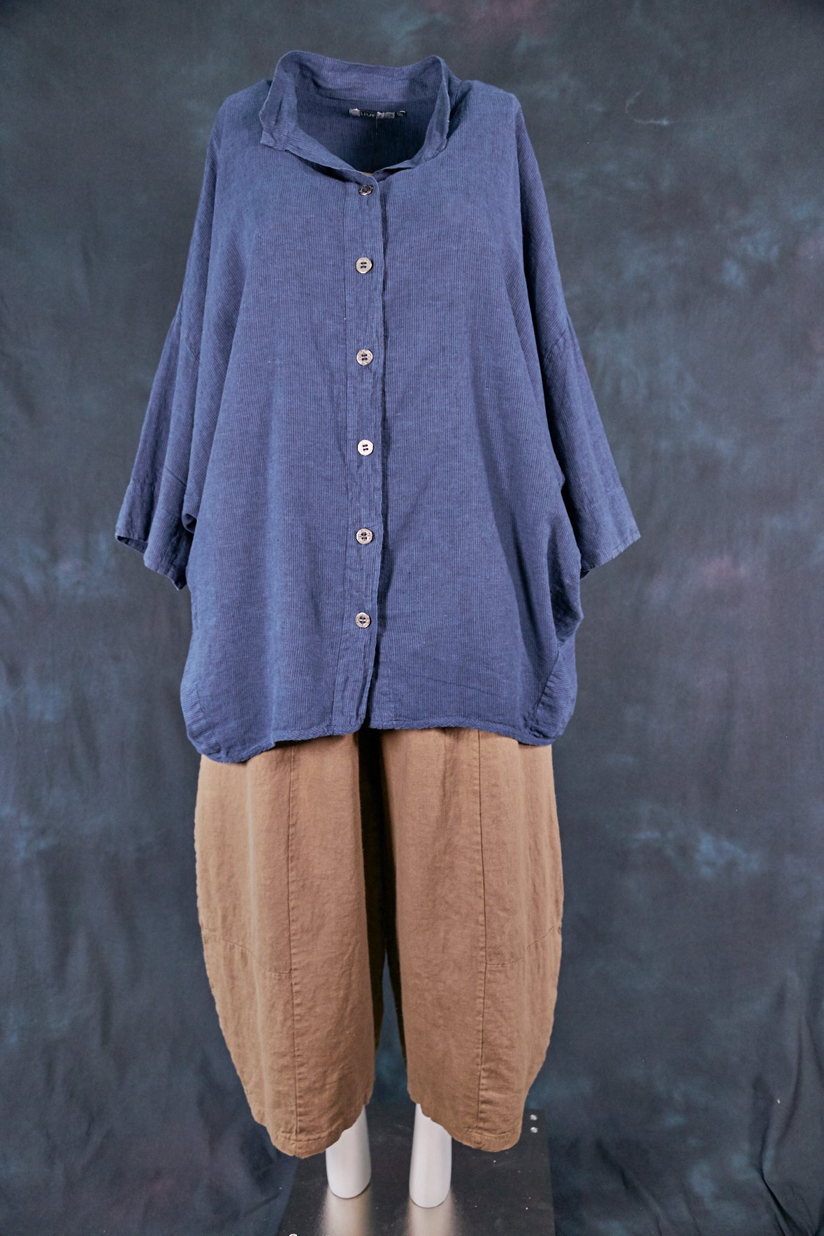 A boxy style that is wide then narrows a bit at the hem. ( see measurements)