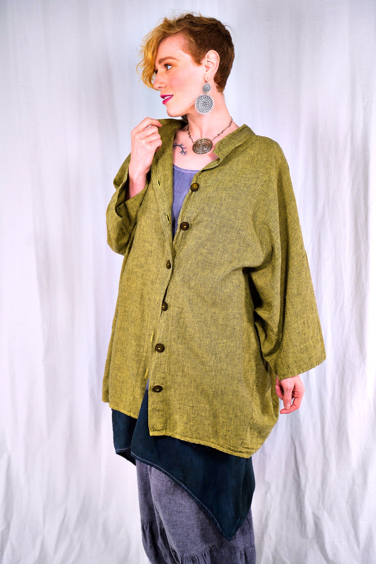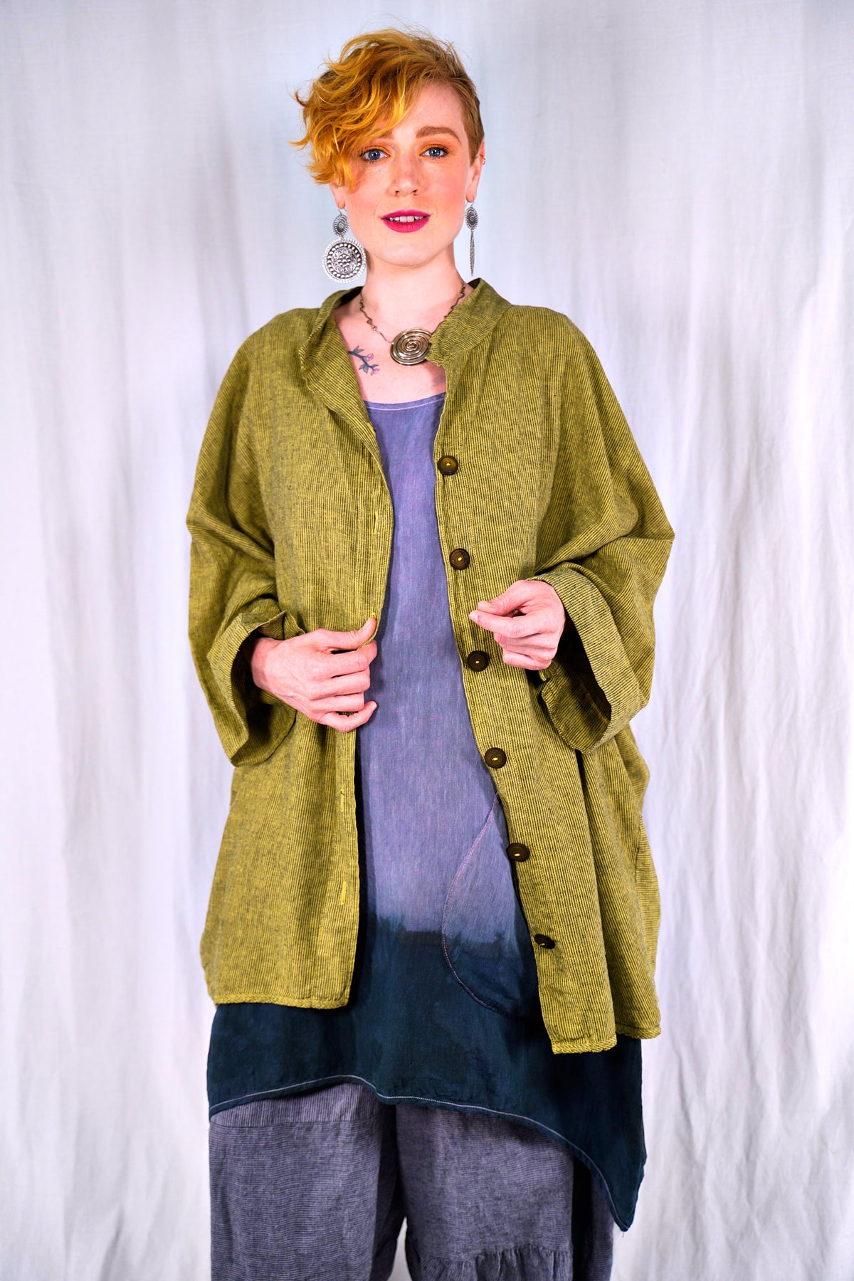 Kimono style cardigan with design seam lines for shaping and Mandarin collar to go everywhere with you this summer. Don't miss this limited edition classic