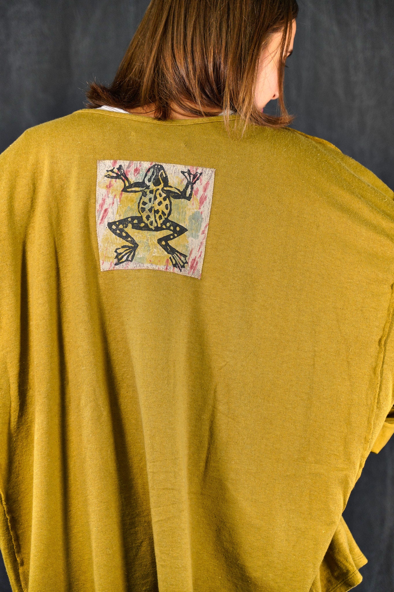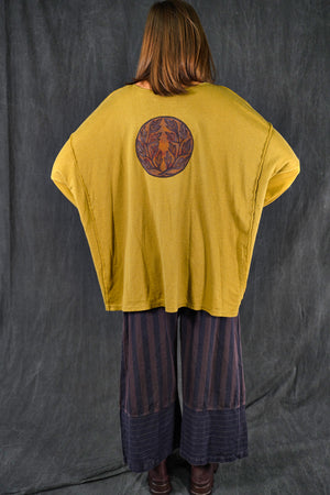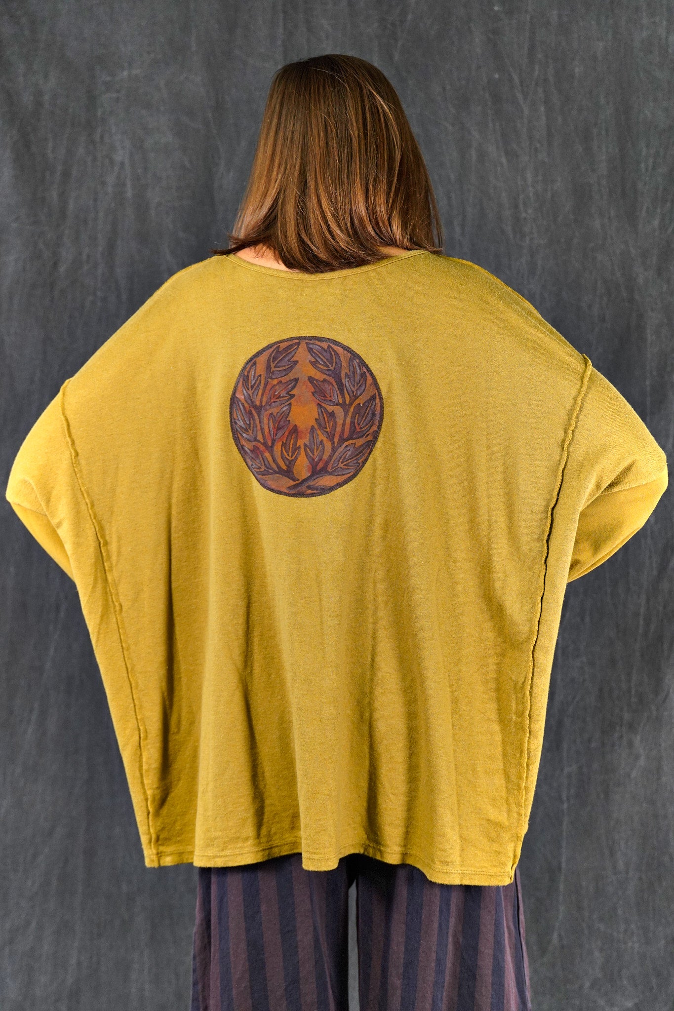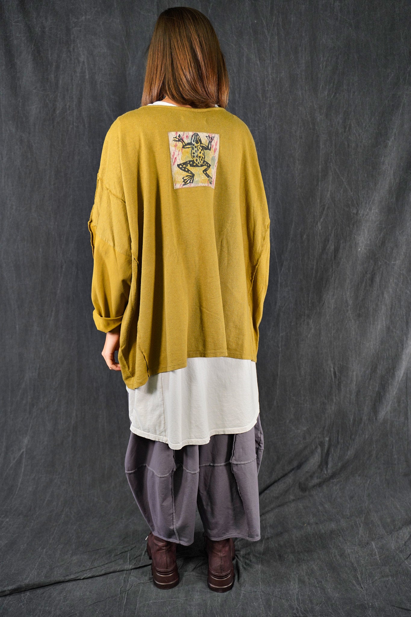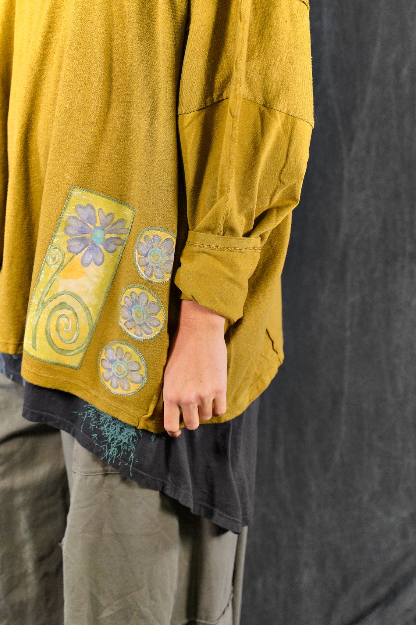Organic cotton/hemp mariposa. The sleeves are cotton jersey with outside seam panels in the body to give form to this new twist mariposa- fabric meets art from our studio to create a piece you'll reach for again & again!