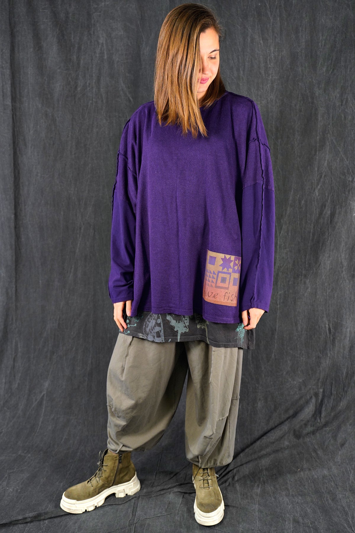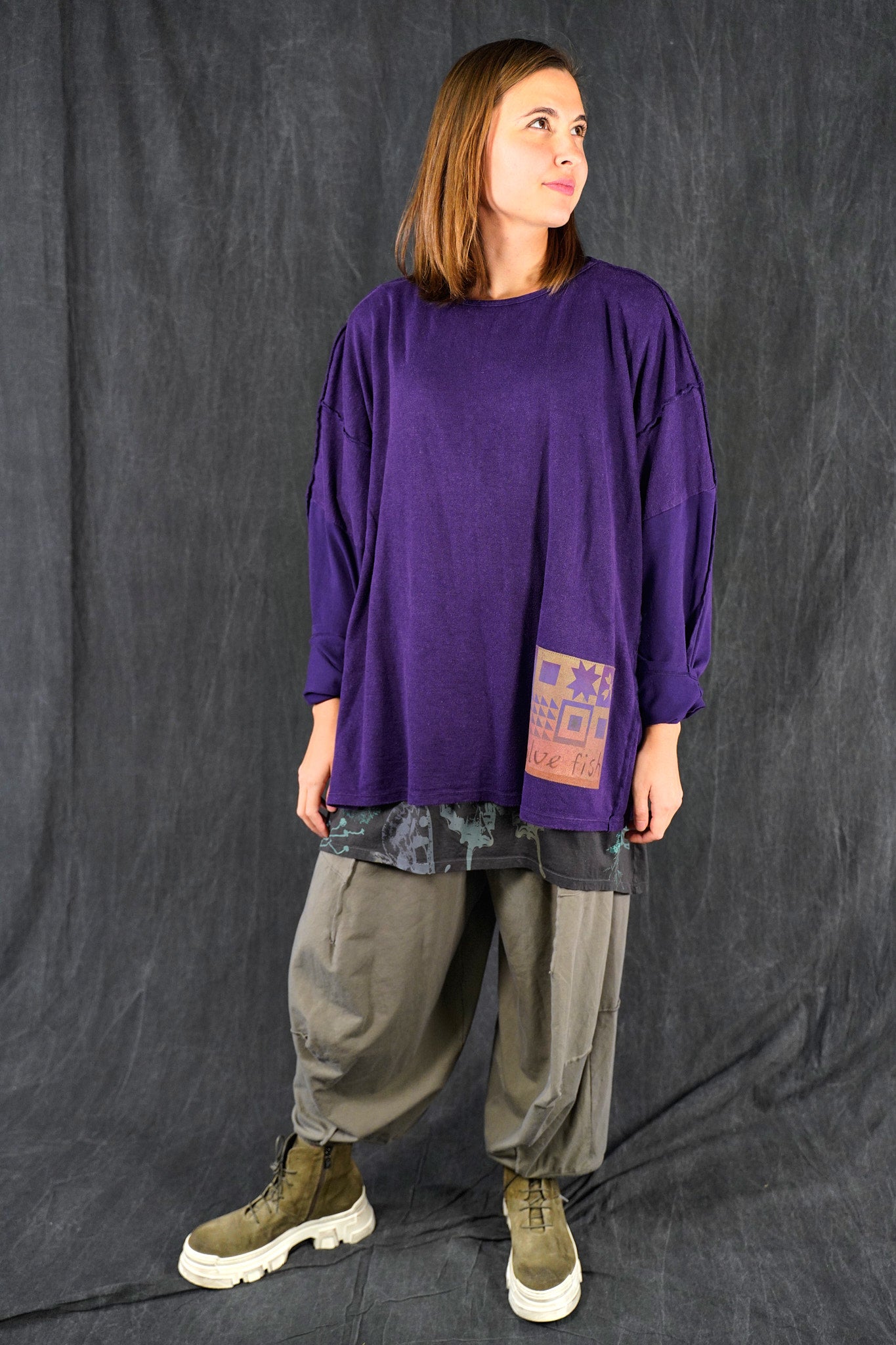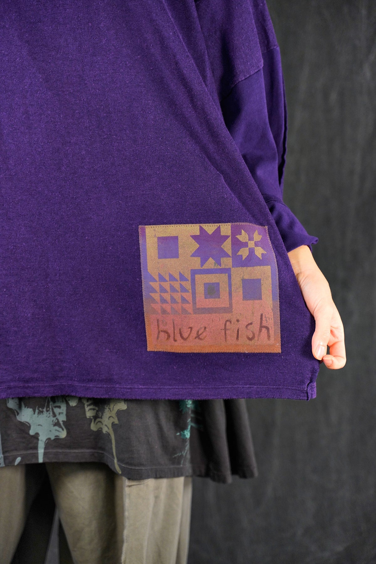 A new style to love ! Organic cotton/hemp mariposa. The sleeves are cotton jersey with outside seam panels in the body to give form to this new twist mariposa- fabric meets art from our studio to create a piece you'll reach for again & again!