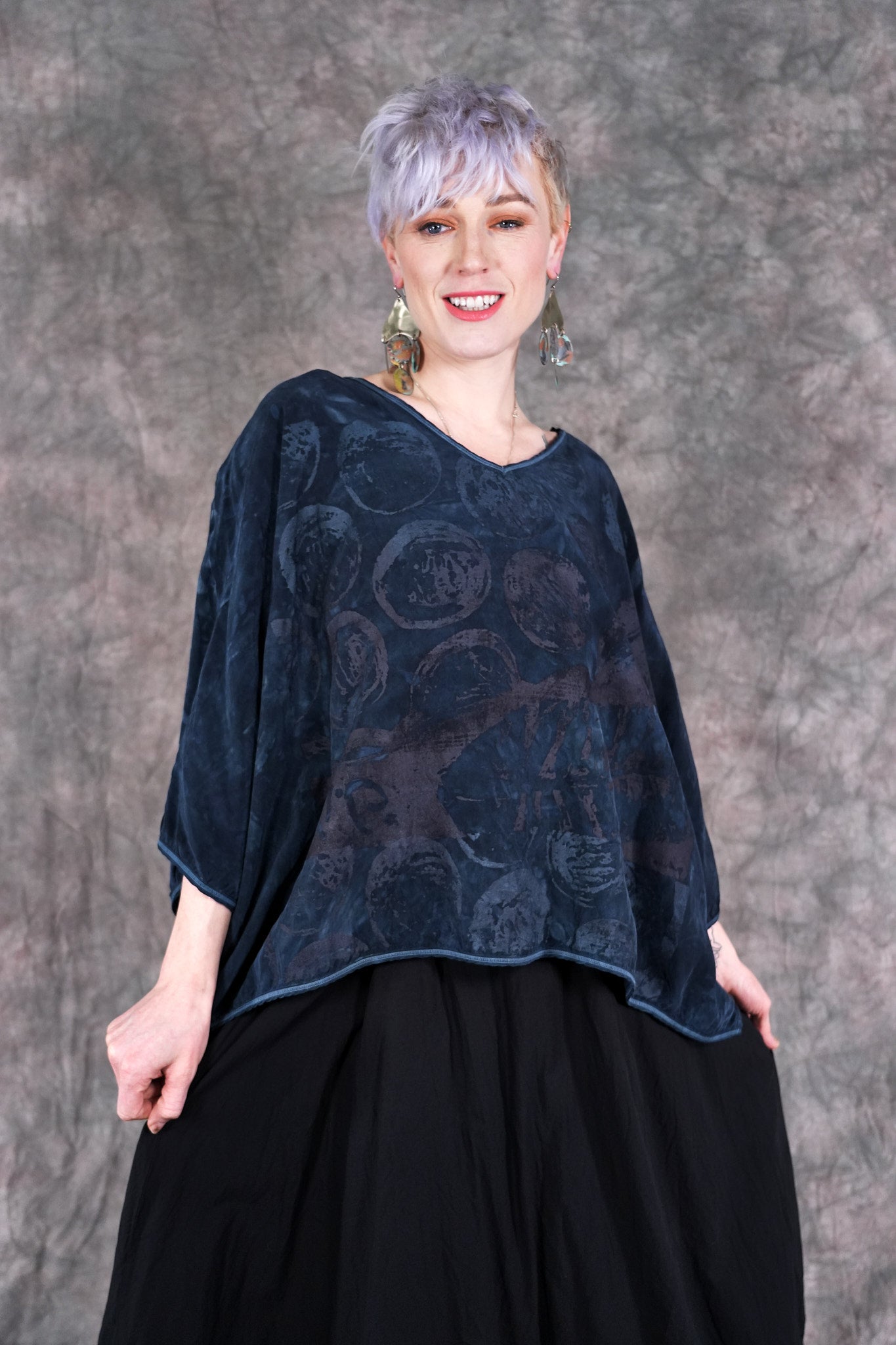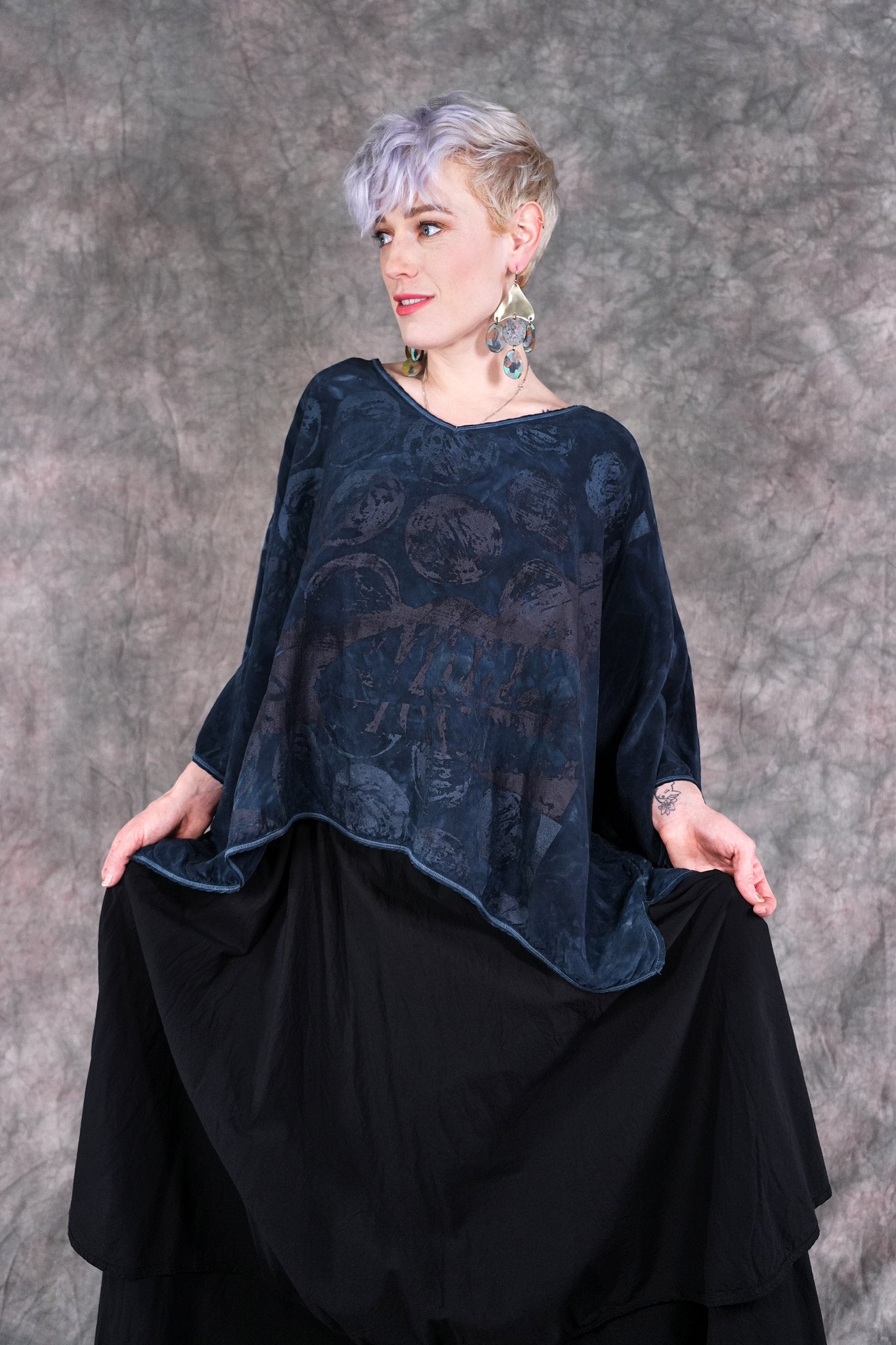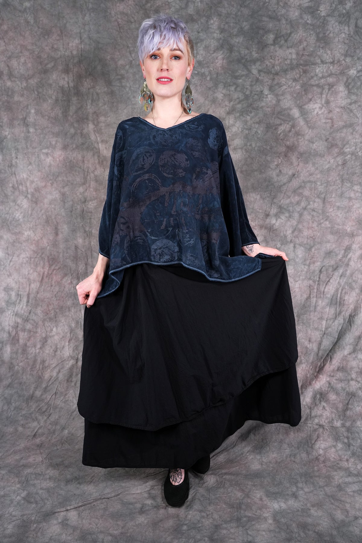 'Eventide Top' can be worn in so many ways in all seasons- layered over or worn alone, worn with leggings, wide legged pants or a skirt- we know you have your favorite Blue Fish black pieces that will look fab layered with this piece-it is shown here layered over our #1190 mesh long sleeved top, a sheer sleeve looks nice layered beneath.