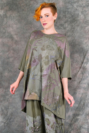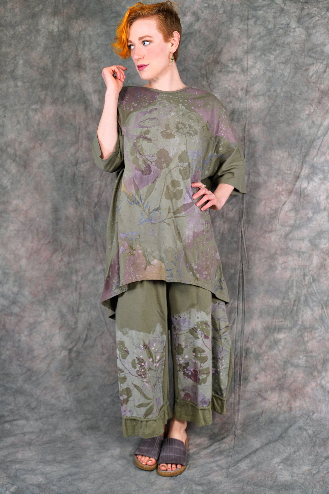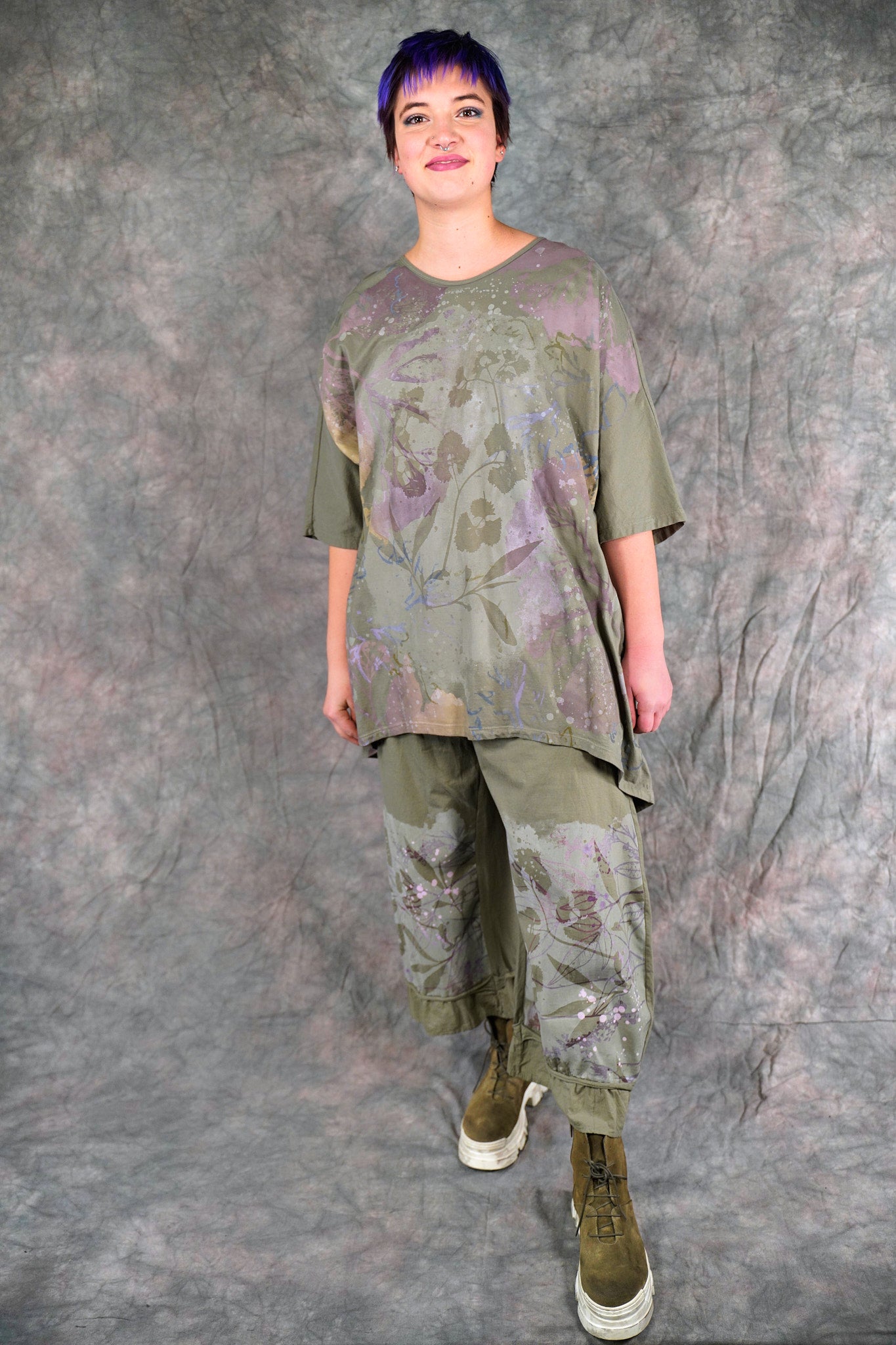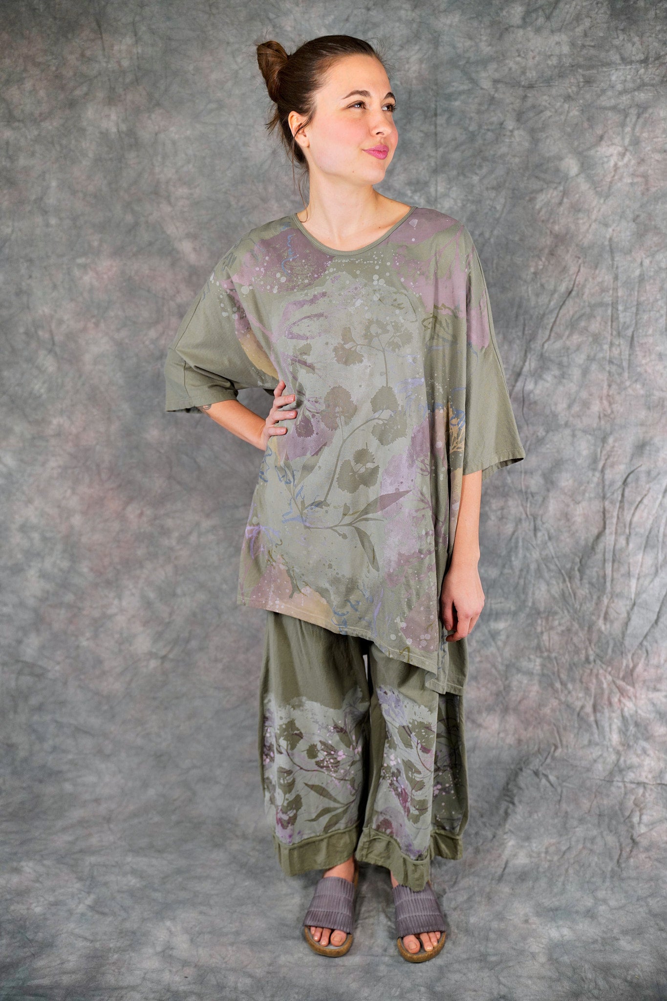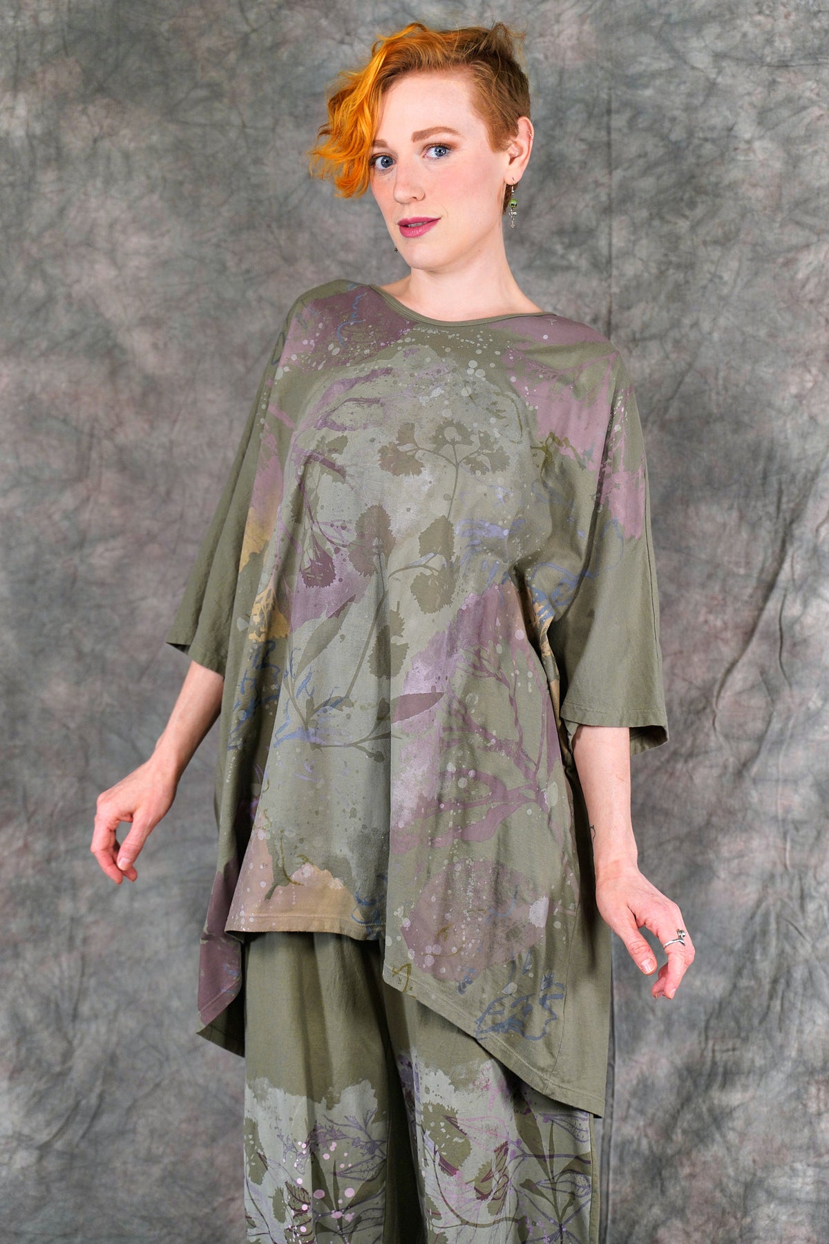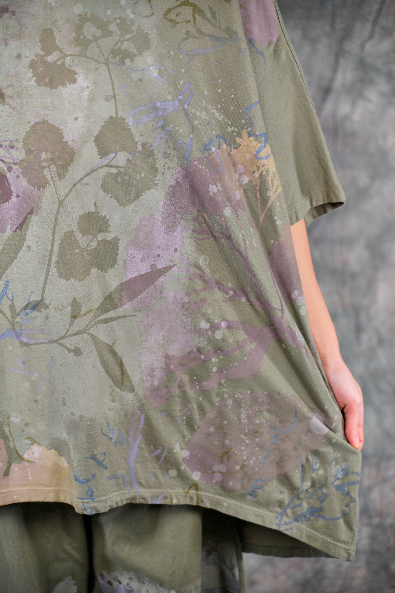 Slightly less wide than our Art Tee, but still generously sized. We think this will become a favorite for many of you! Higher in front, slightly longer in the back. Beautiful, multi layered botanical printing all over the front. This everyday tee is sewn in the USA from our 100% organically grown cotton and it will last and last for years through countless washings!