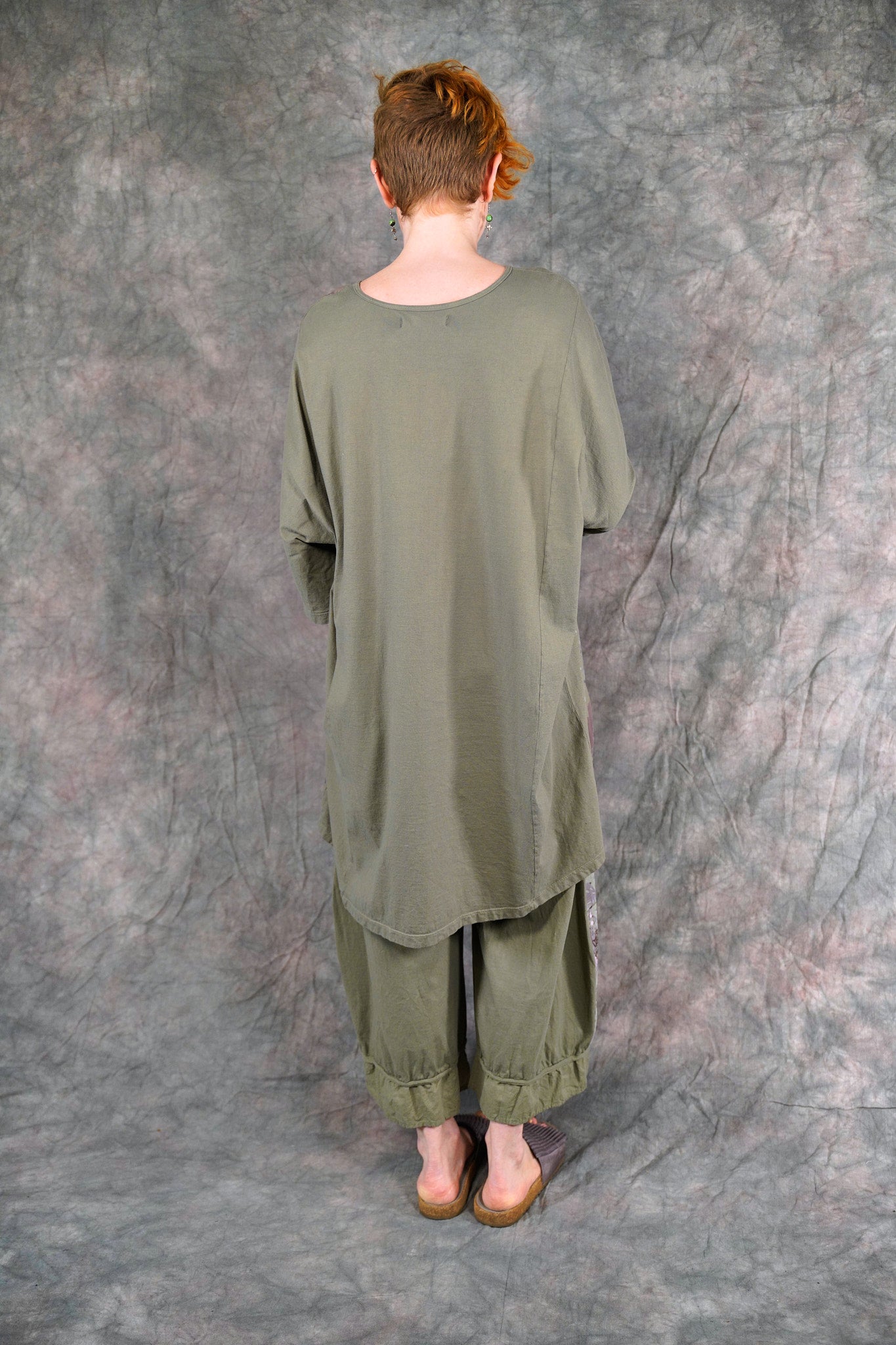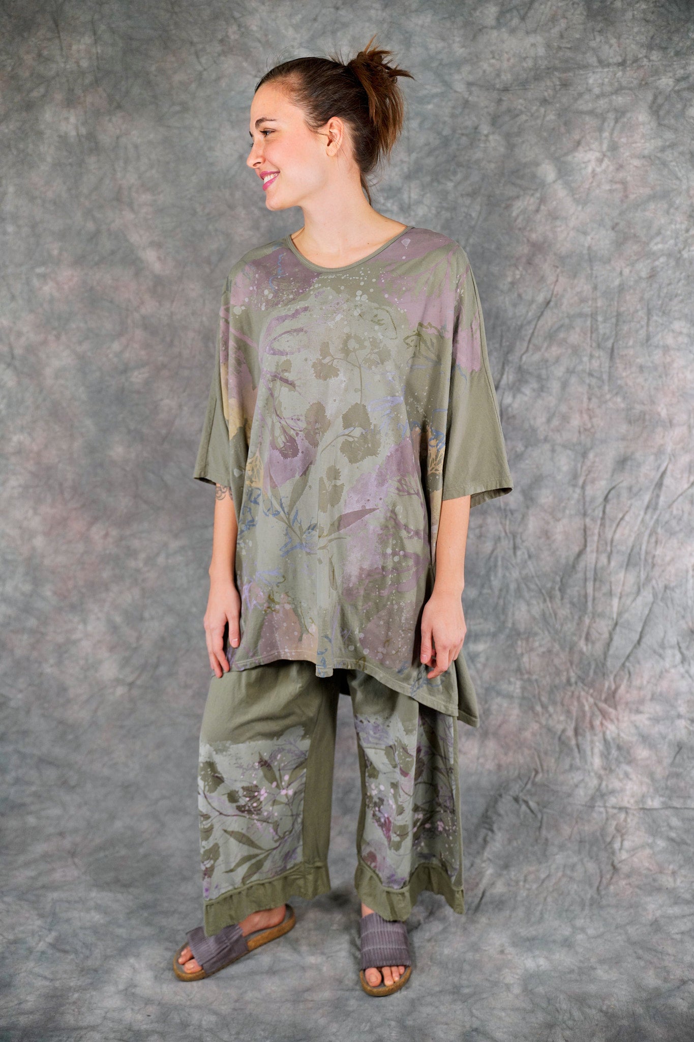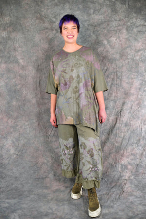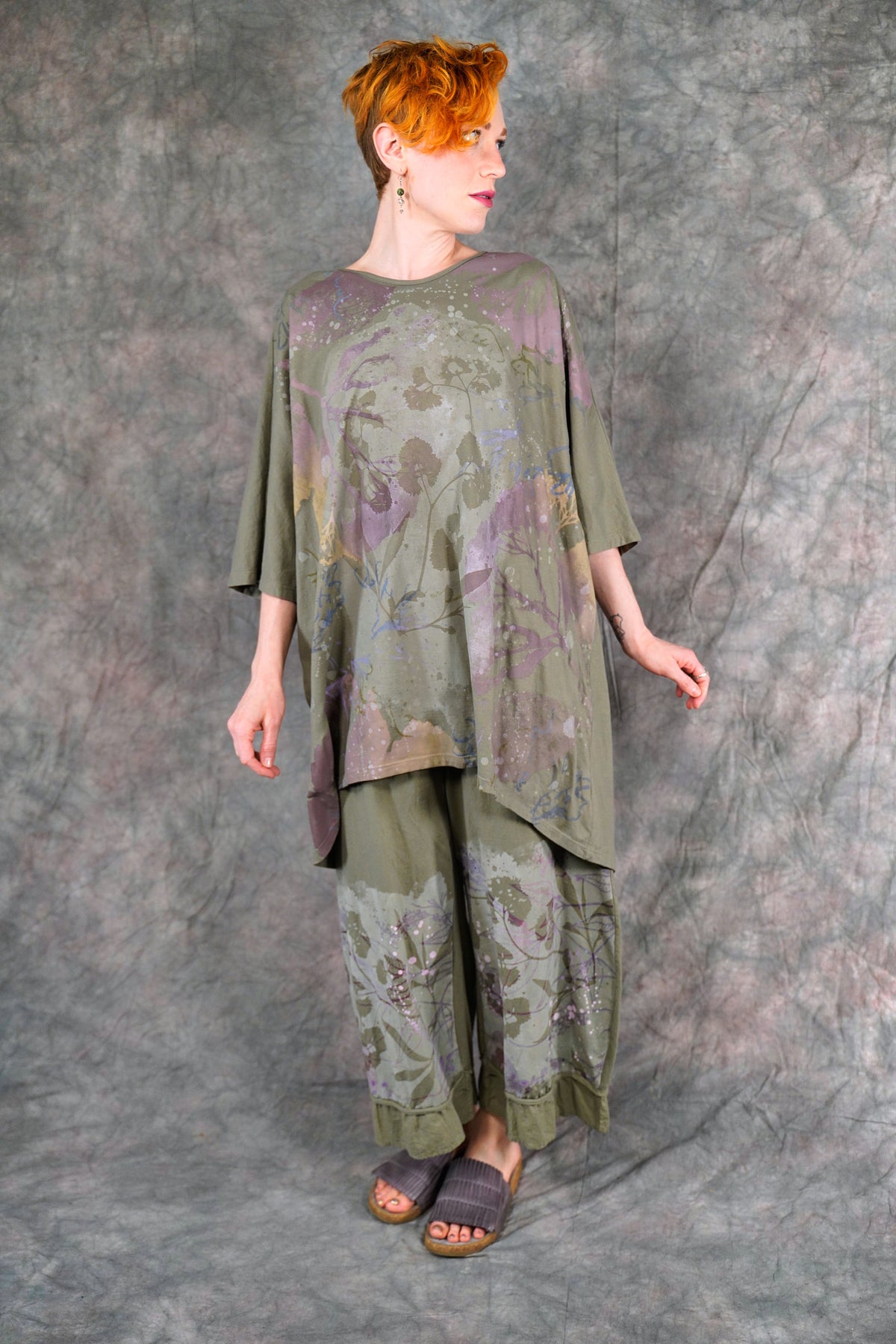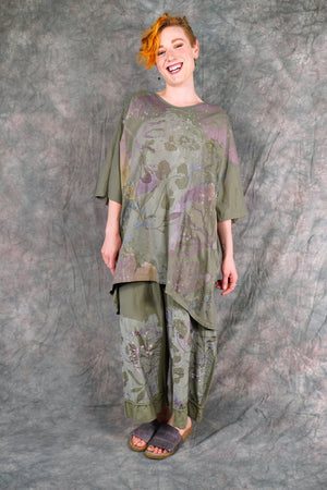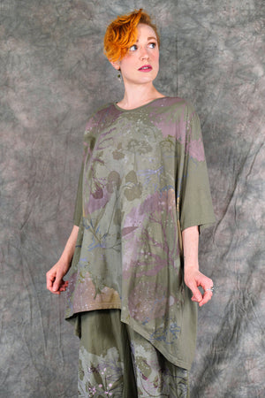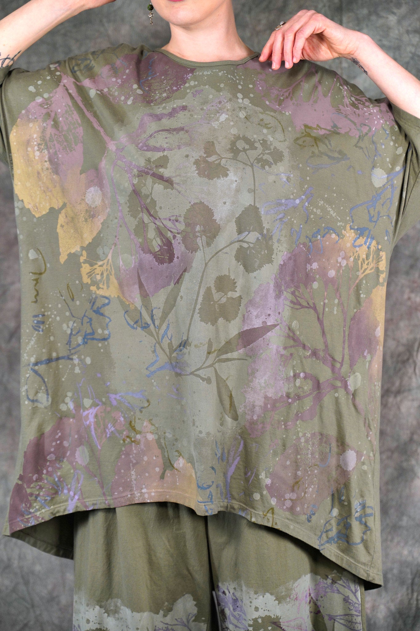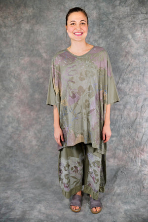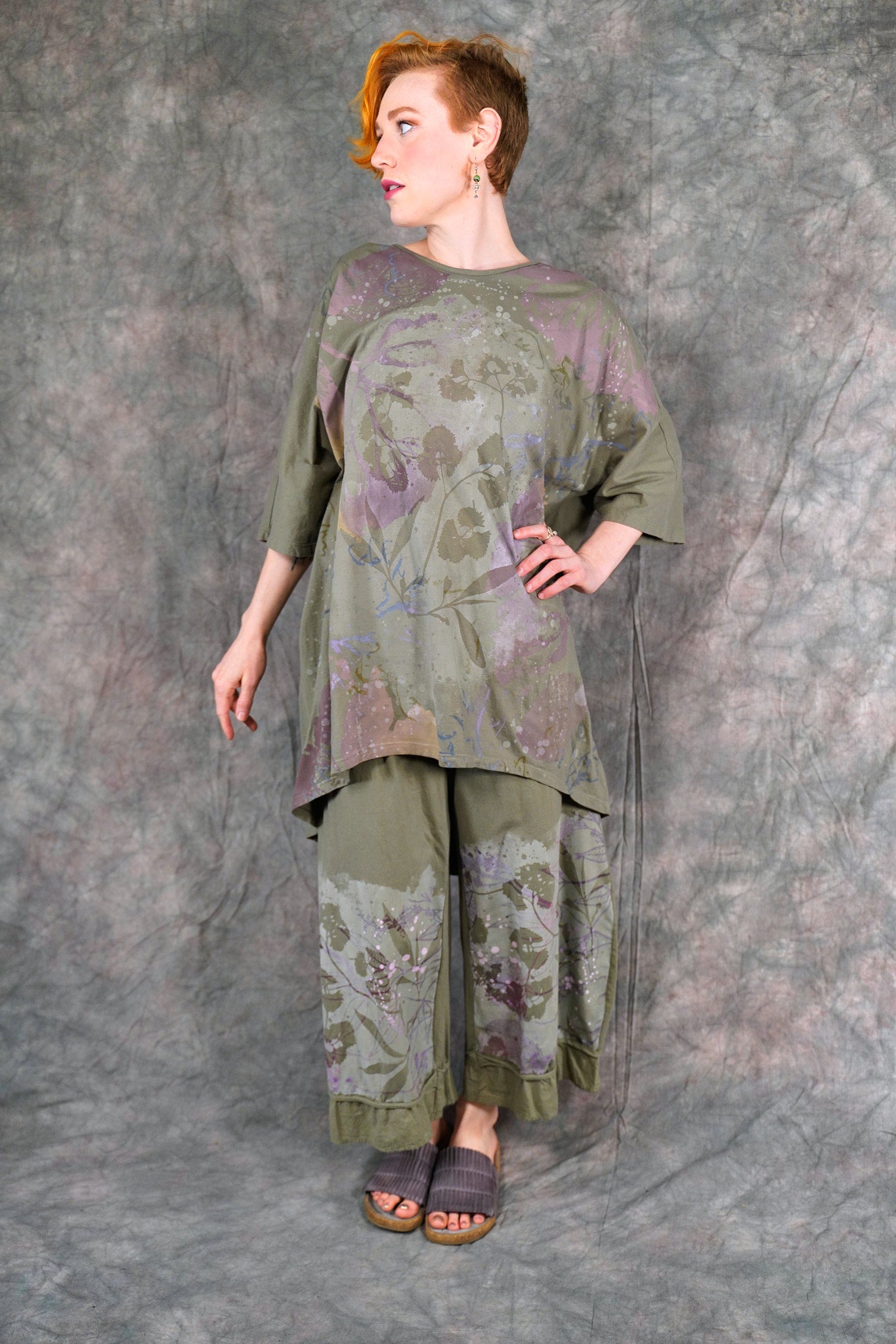 Slightly less wide than our Art Tee, but still generously sized. We think this will become a favorite for many of you! Higher in front, slightly longer in the back. Beautiful, multi layered botanical printing all over the front. This everyday tee is sewn in the USA from our 100% organically grown cotton and it will last and last for years through countless washings!